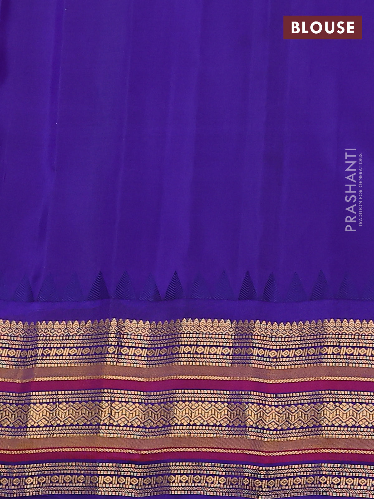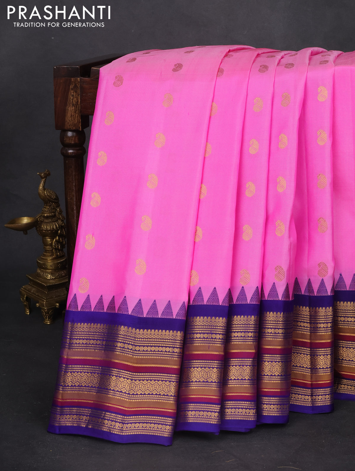 Pure gadwal silk saree light pink and blue with zari woven paisley buttas and temple design zari woven border