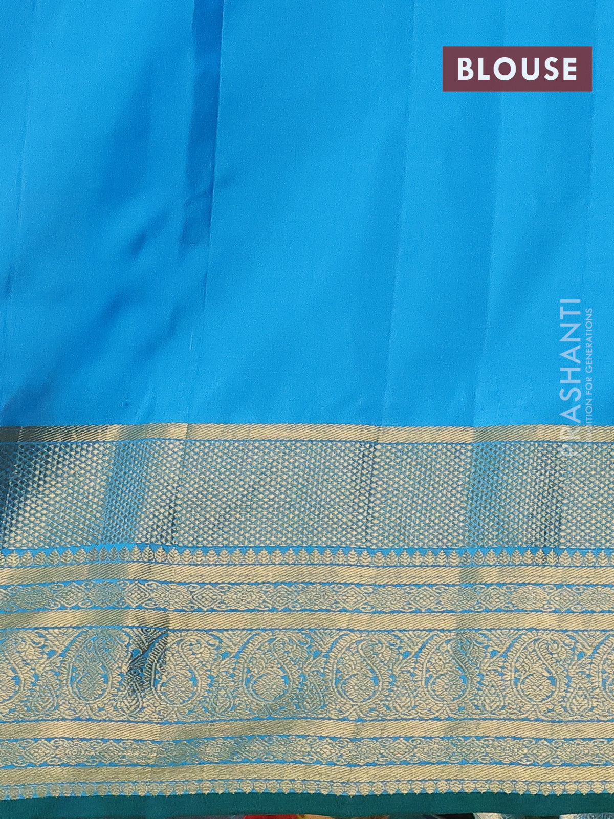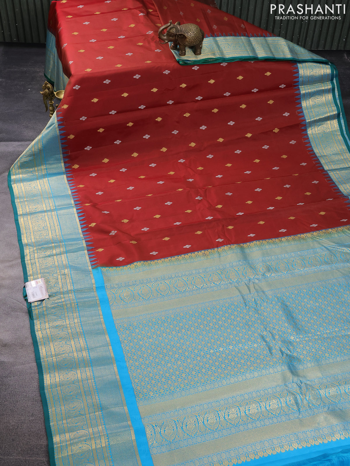 Pure gadwal silk saree maroon and cs blue with zari woven buttas and temple design zari woven border