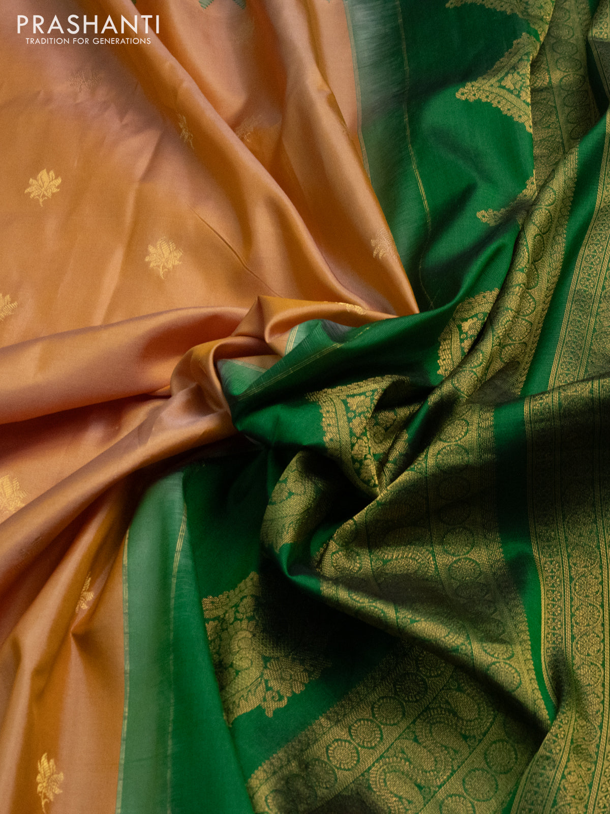 Pure gadwal silk saree mustard yellow and green with zari woven buttas and embroided butta border