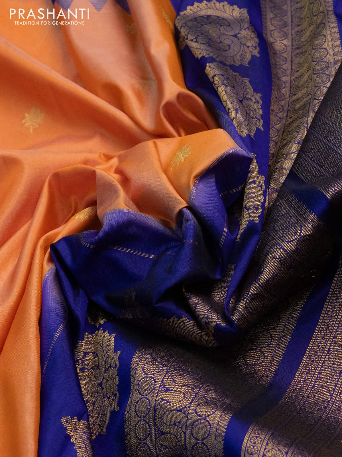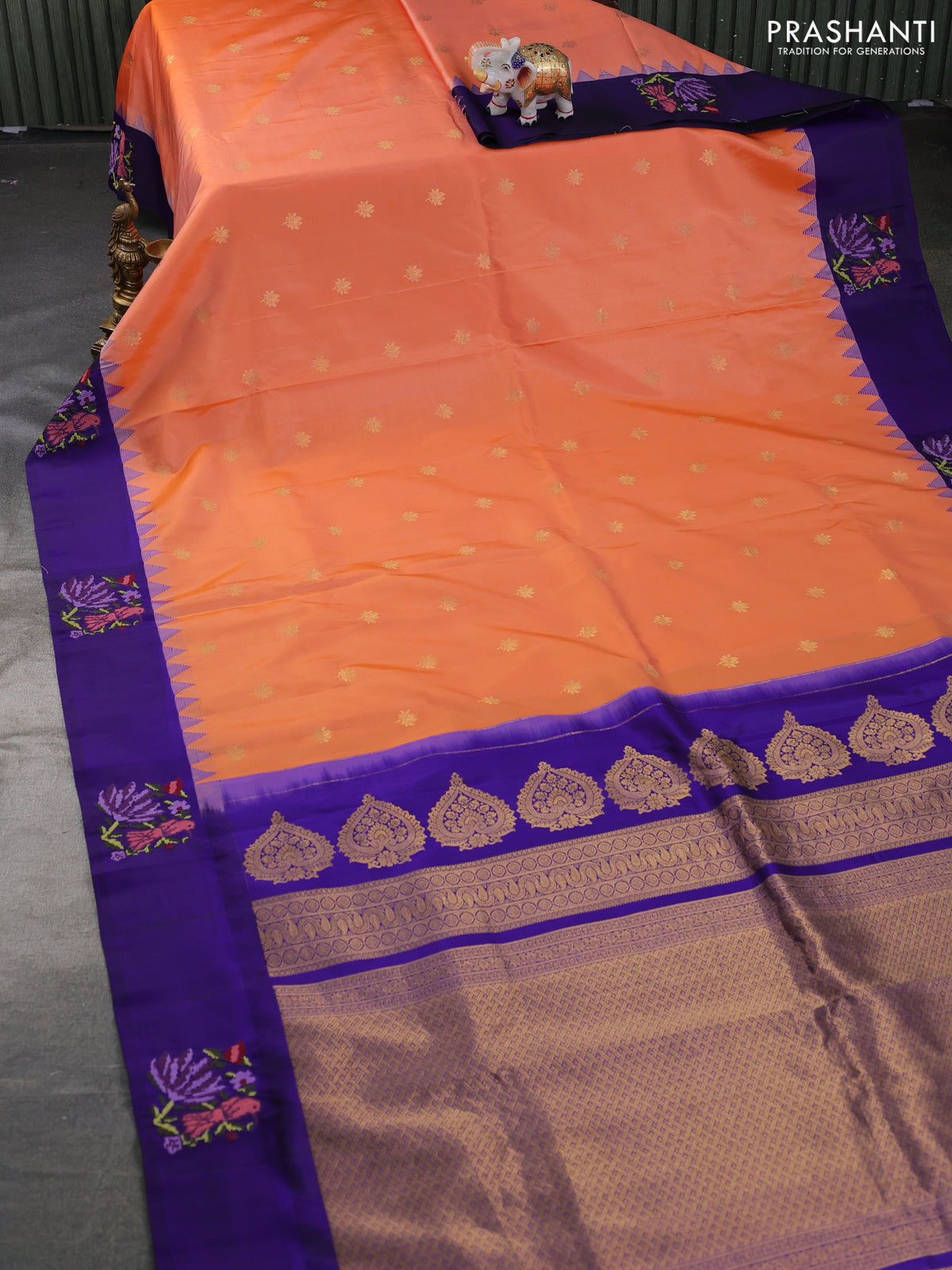 Pure gadwal silk saree orange and blue with zari woven buttas and embroided butta border