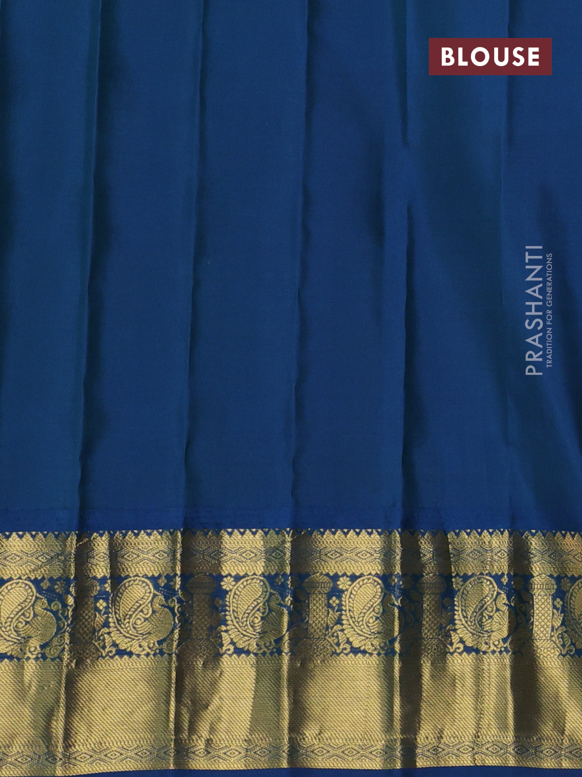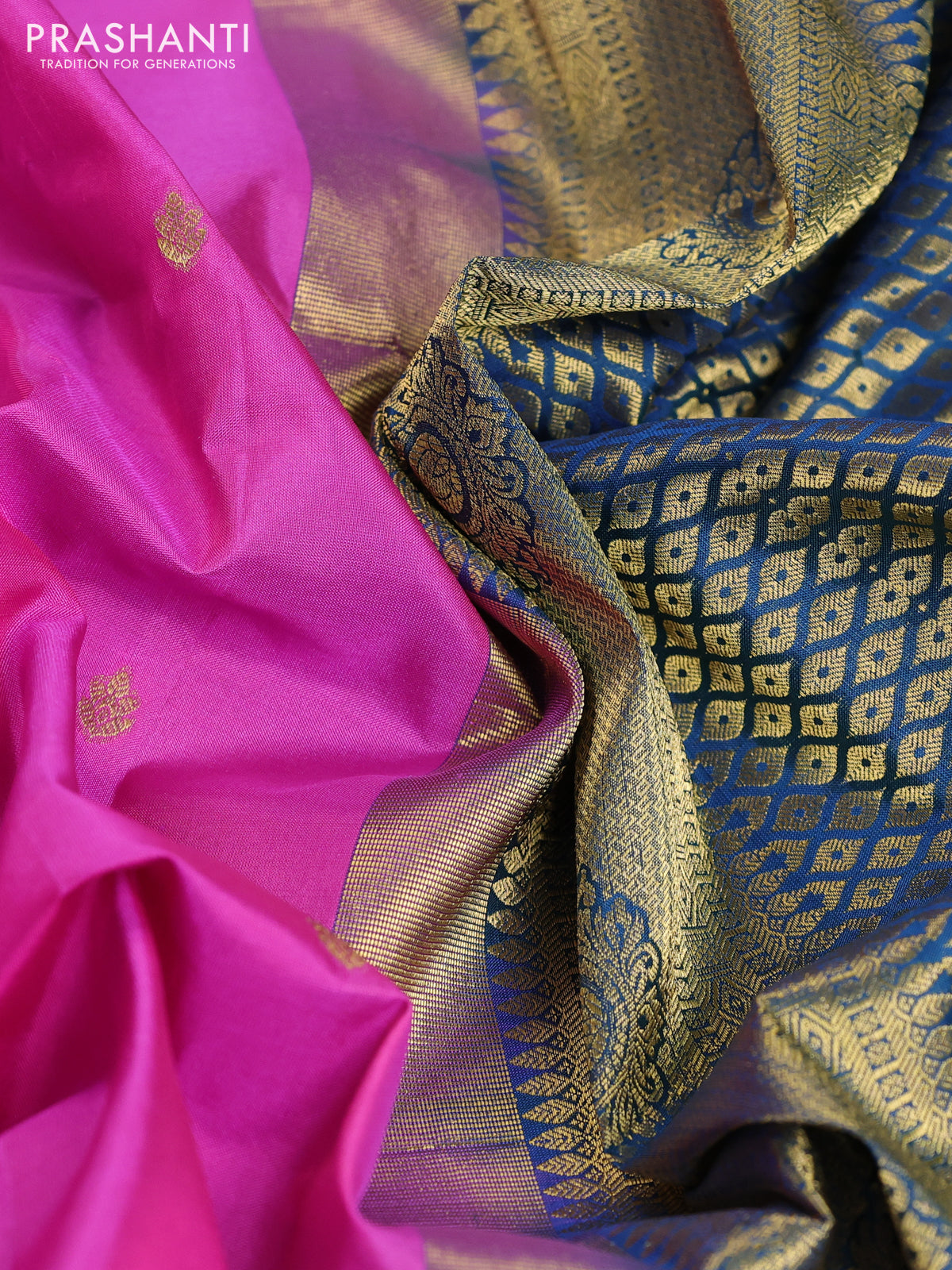 Pure gadwal silk saree pink and peacock blue with zari woven buttas and temple design zari woven border