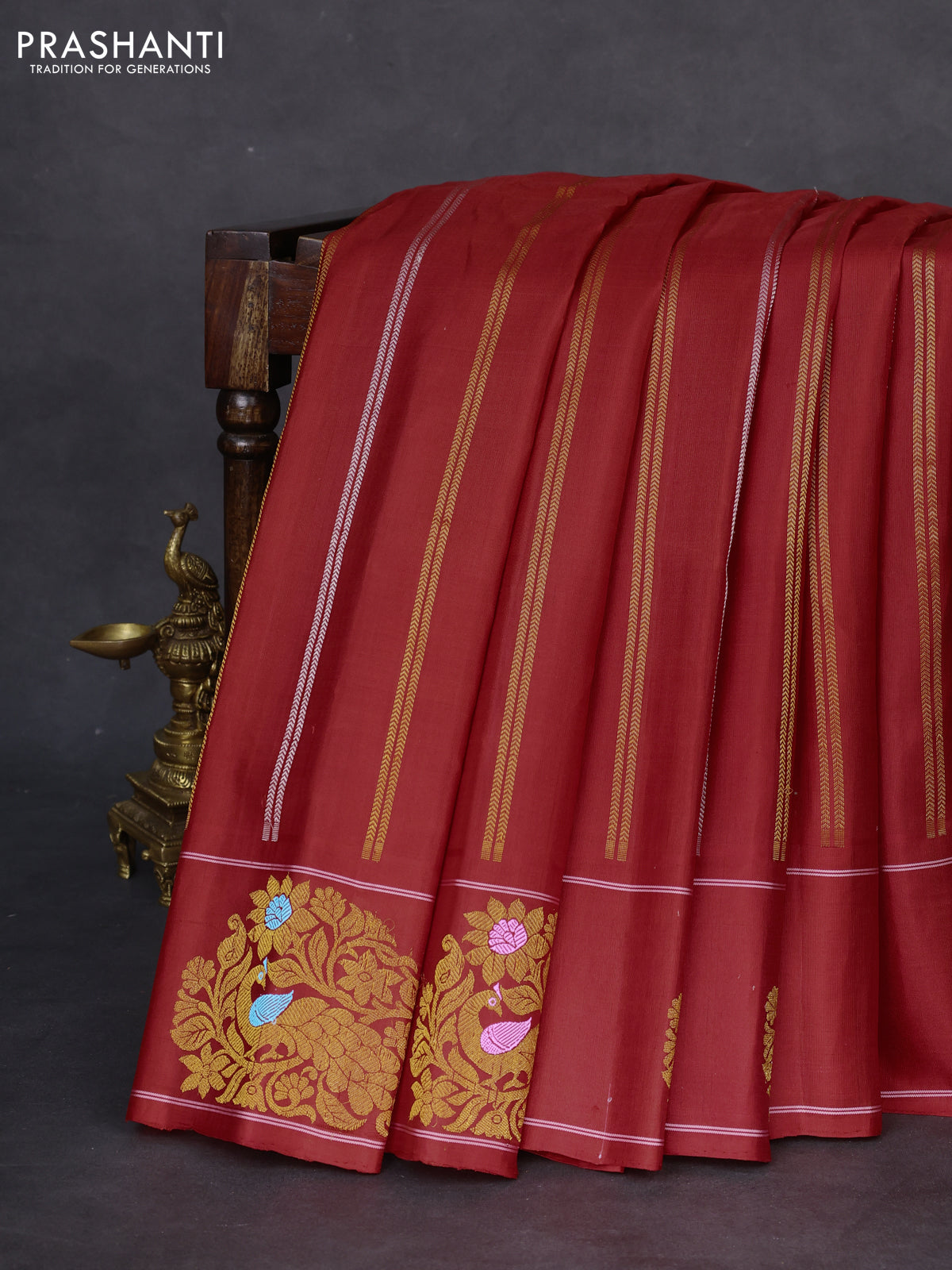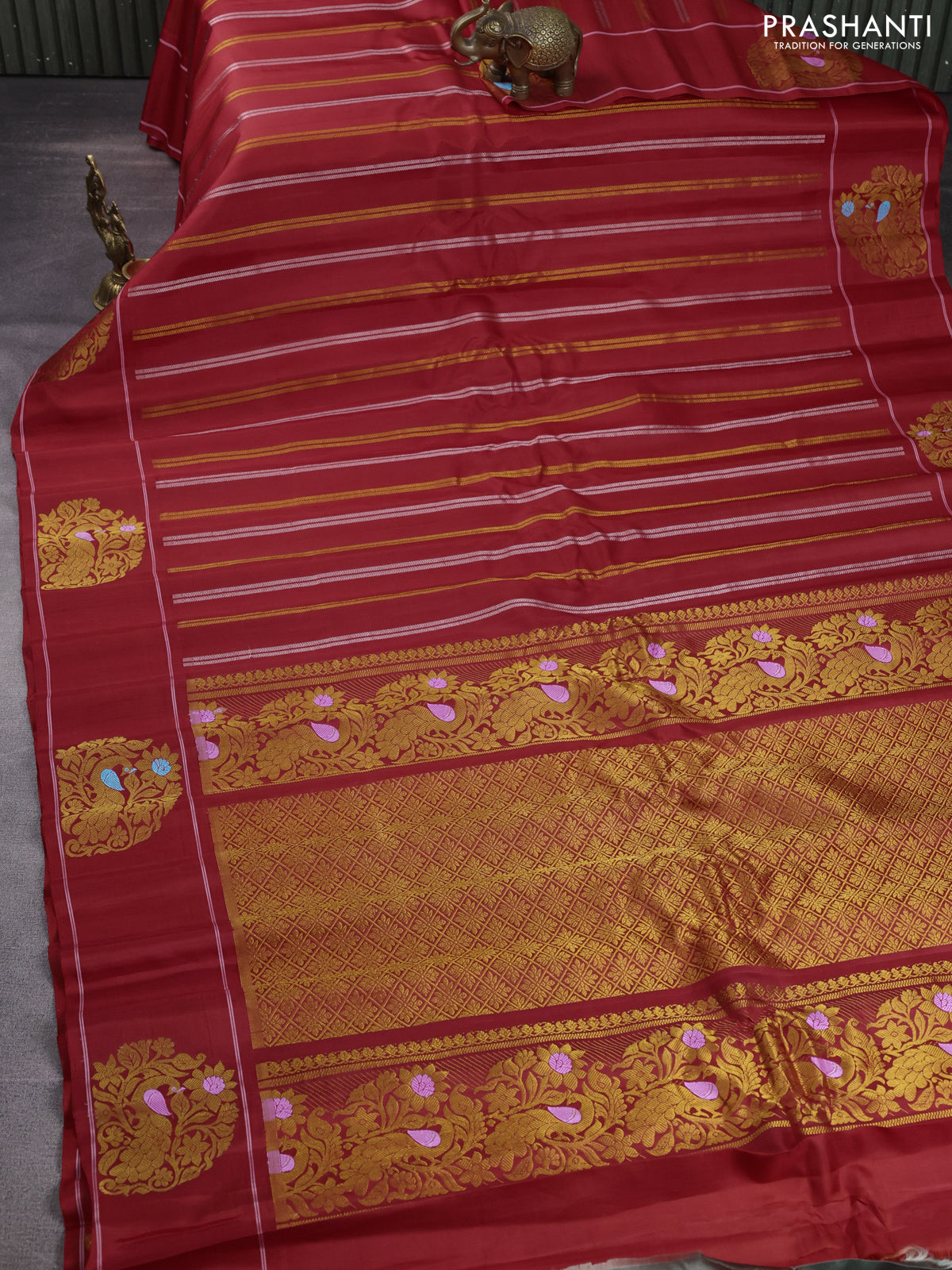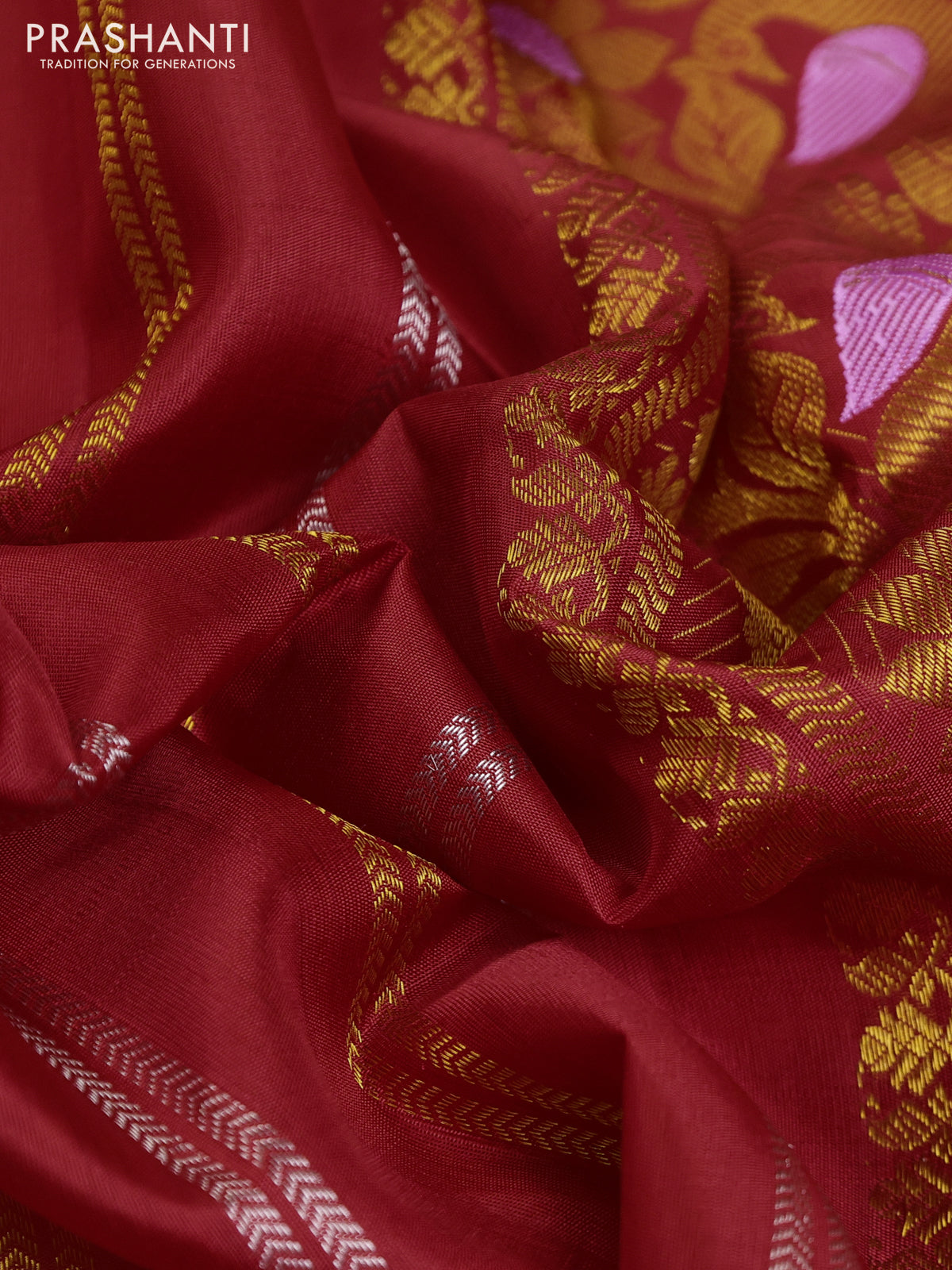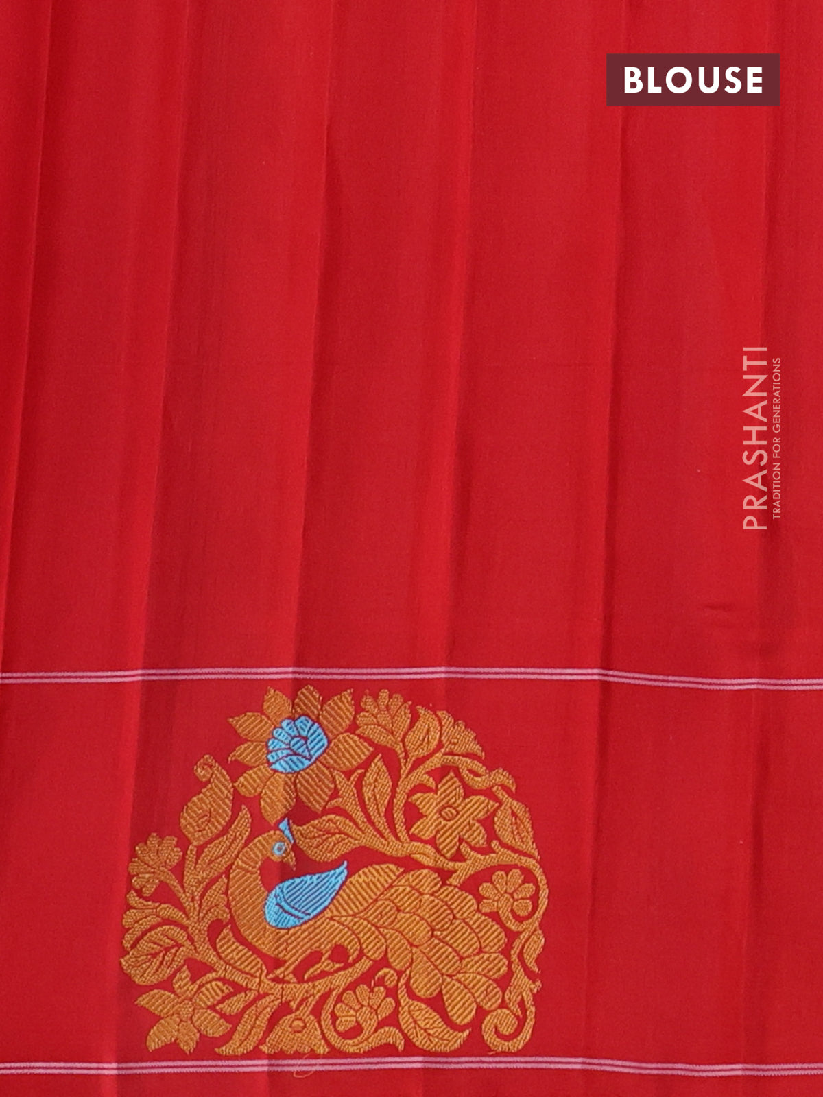 Pure gadwal silk saree red with allover silver & gold zari weaves and peacock design zari woven butta border