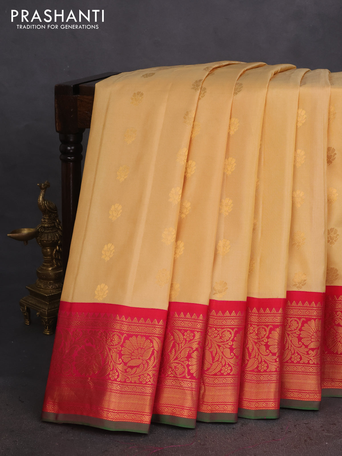Pure gadwal silk saree sandal and pink with zari woven buttas and zari woven border