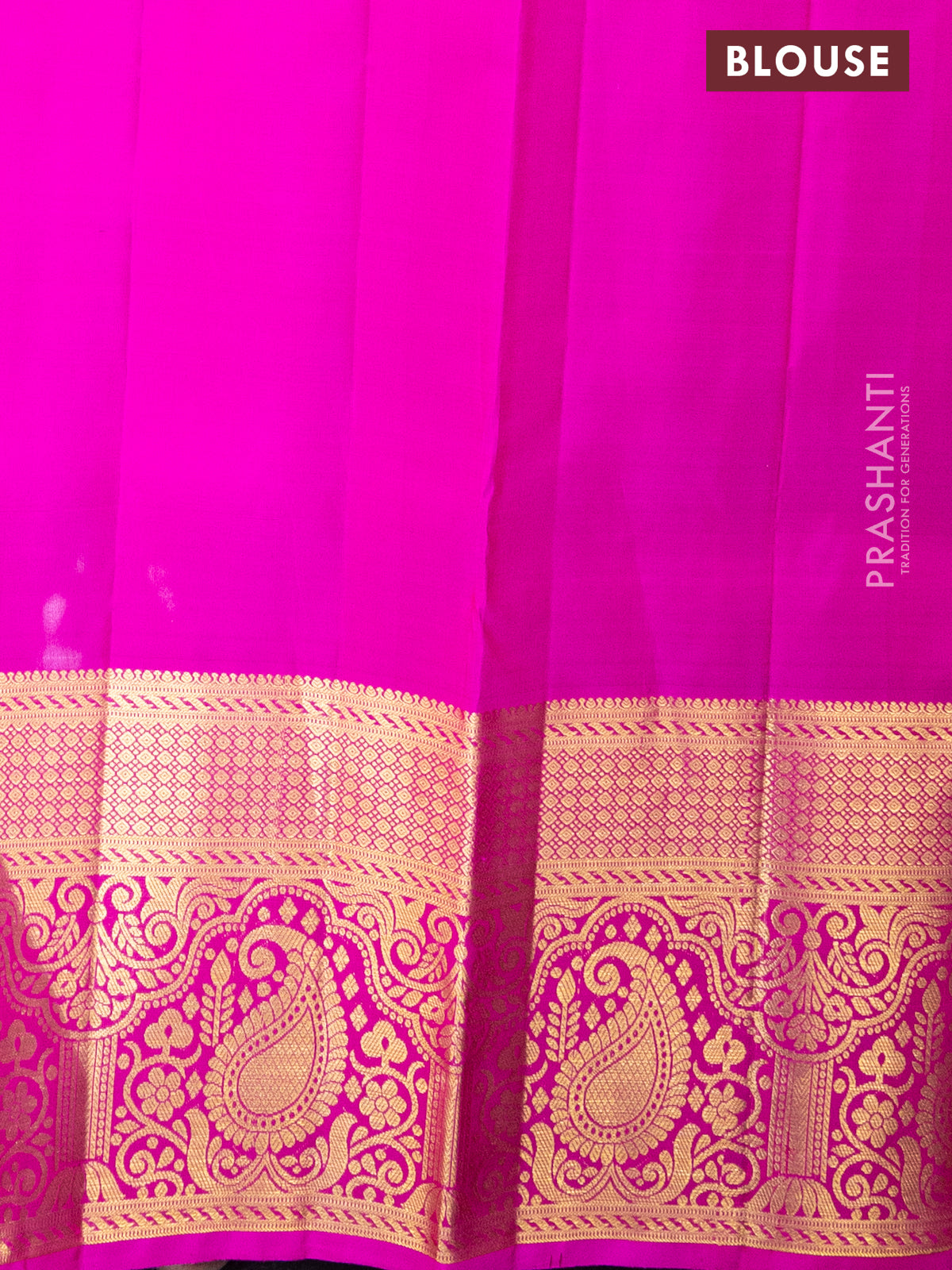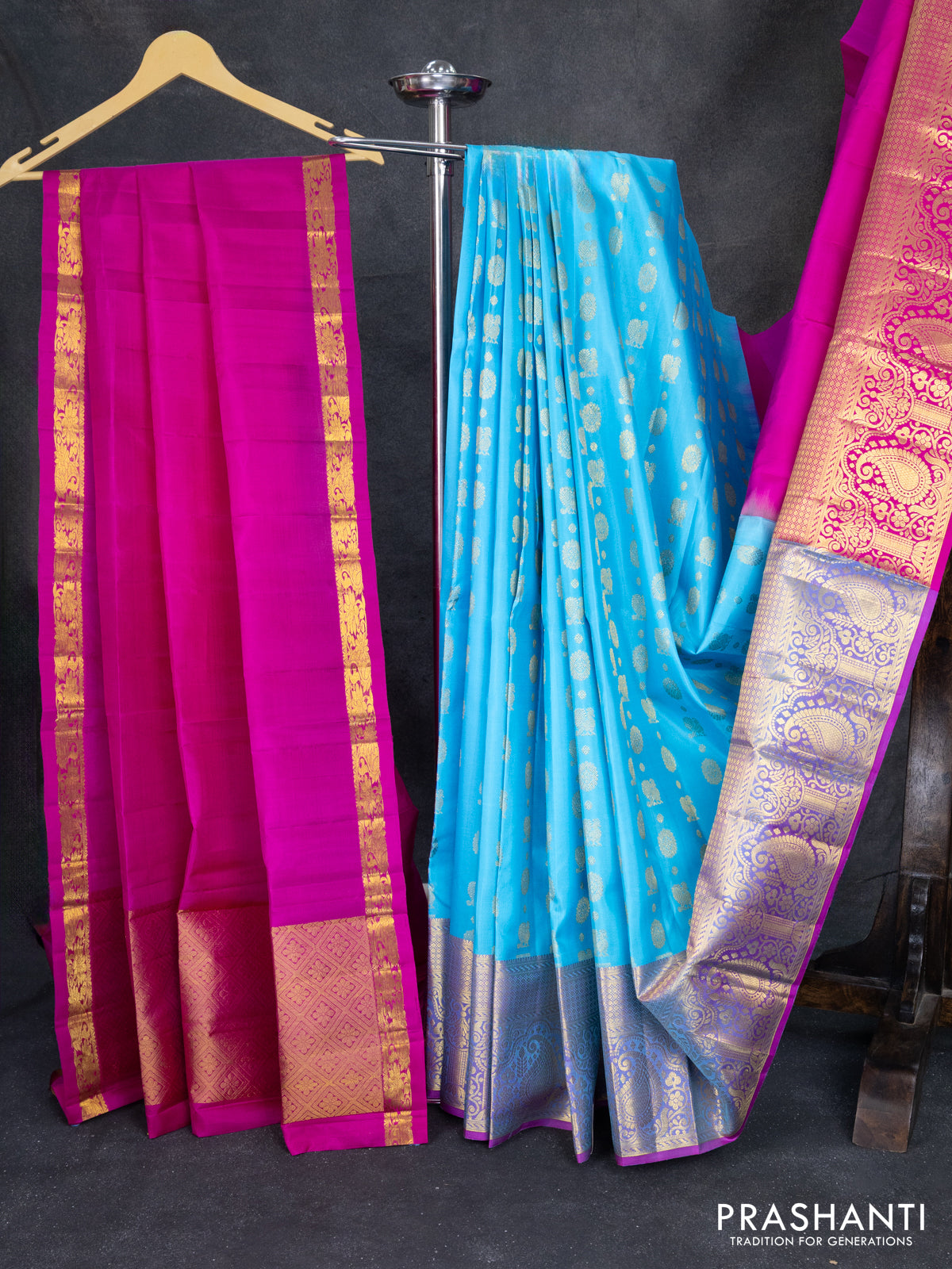 Pure kanchipuram silk lehenga light blue and pink with allover annam & rudhraksha zari woven buttas and long rich zari woven border