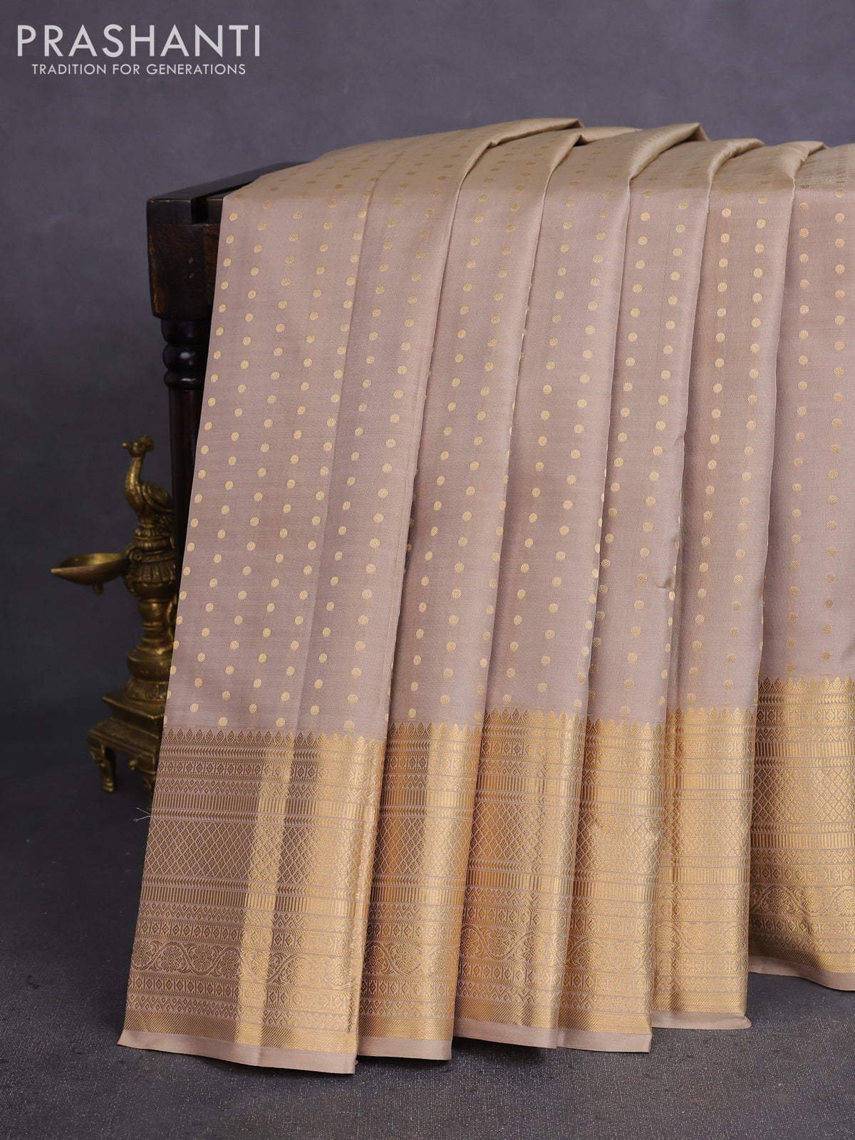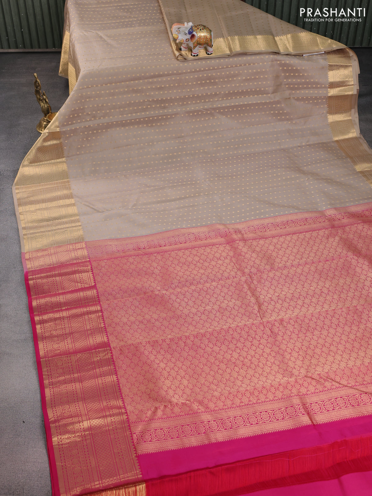 Pure kanchipuram silk saree beige and pink with allover zari woven 1000 buttas and zari woven border