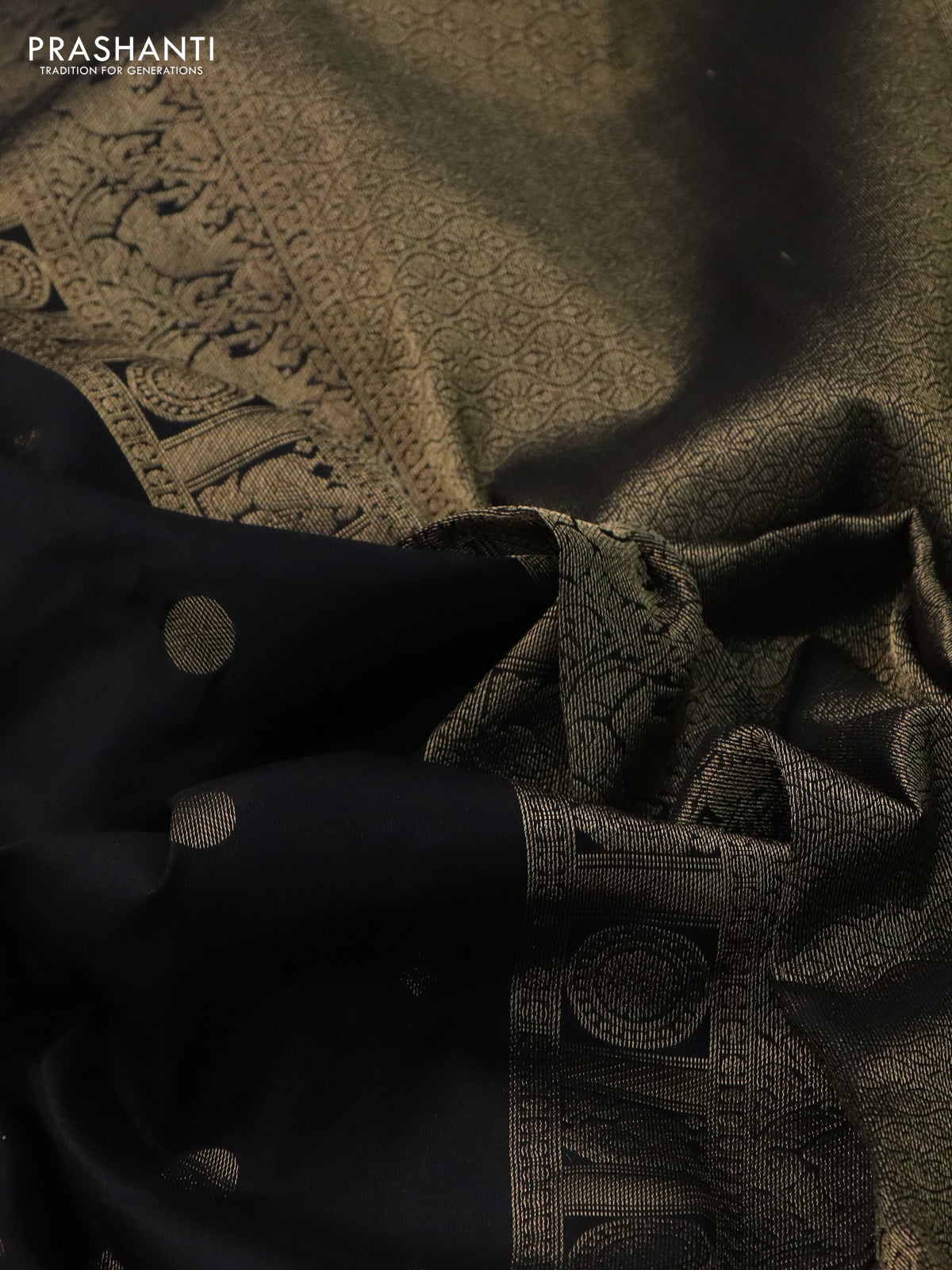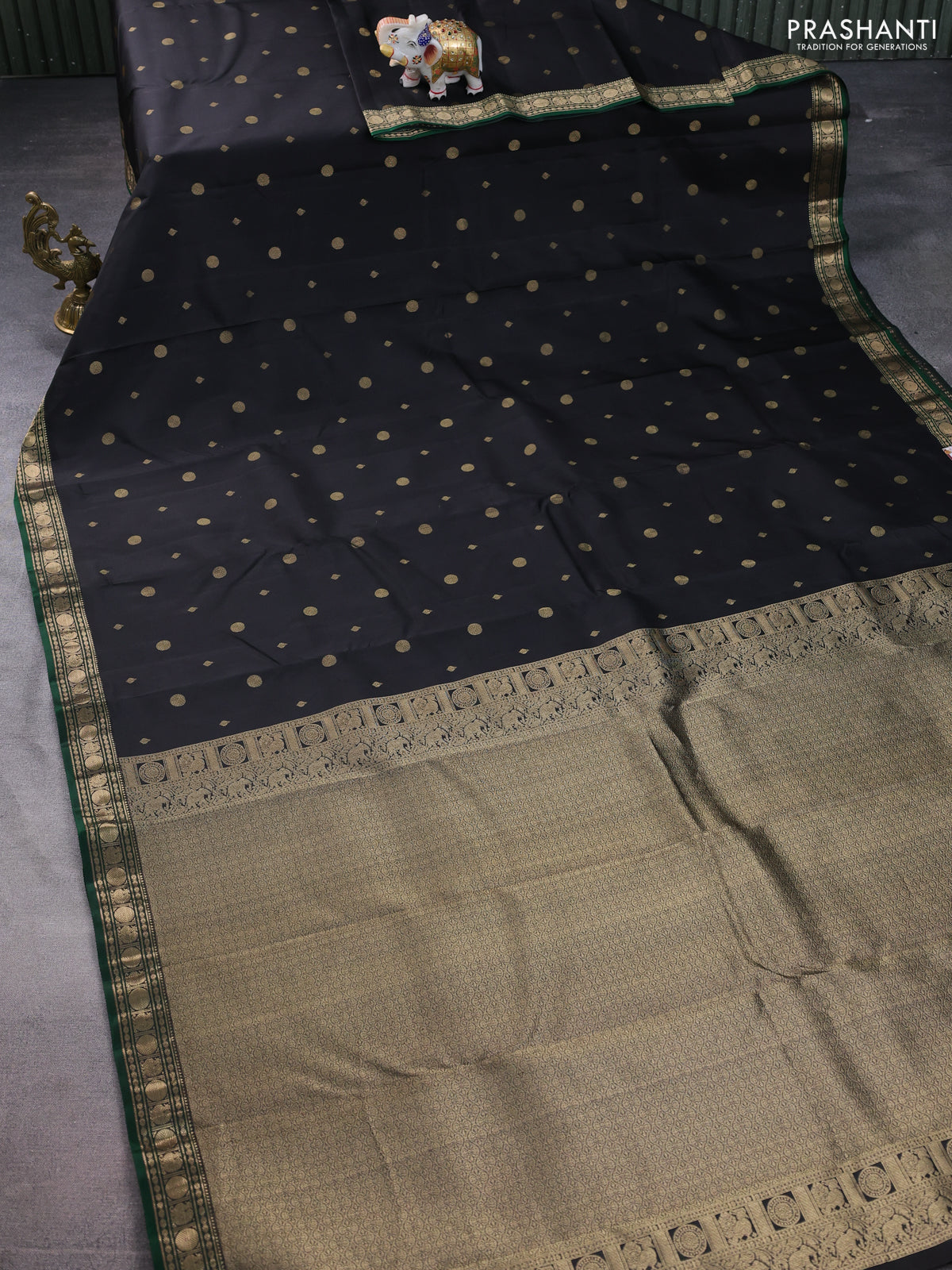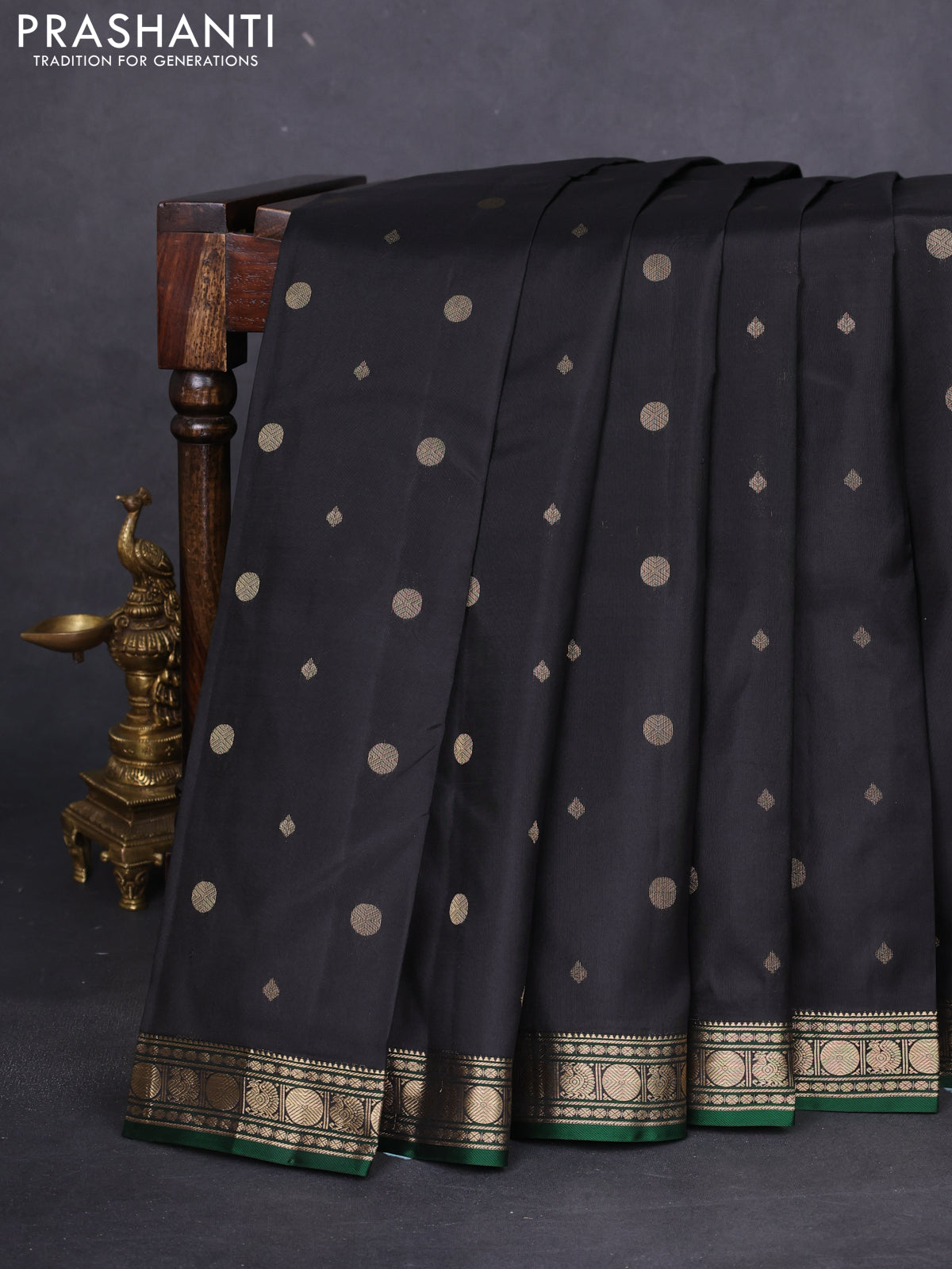 Pure kanchipuram silk saree black and green with zari woven geometric buttas and zari woven border