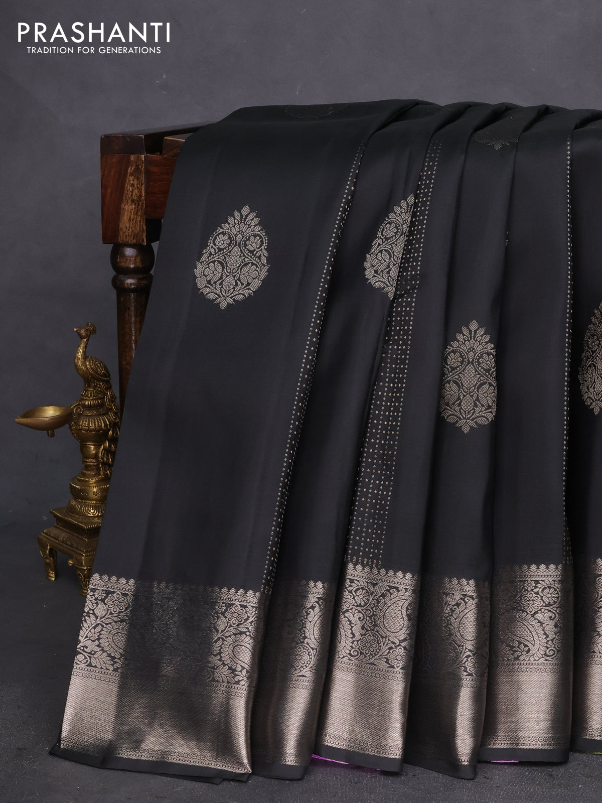 Pure kanchipuram silk saree black and lavender with allover zari weaves & buttas and zari woven border