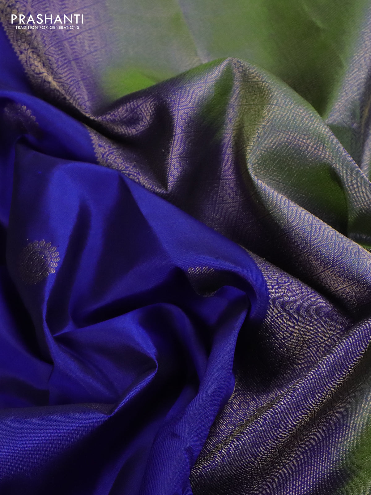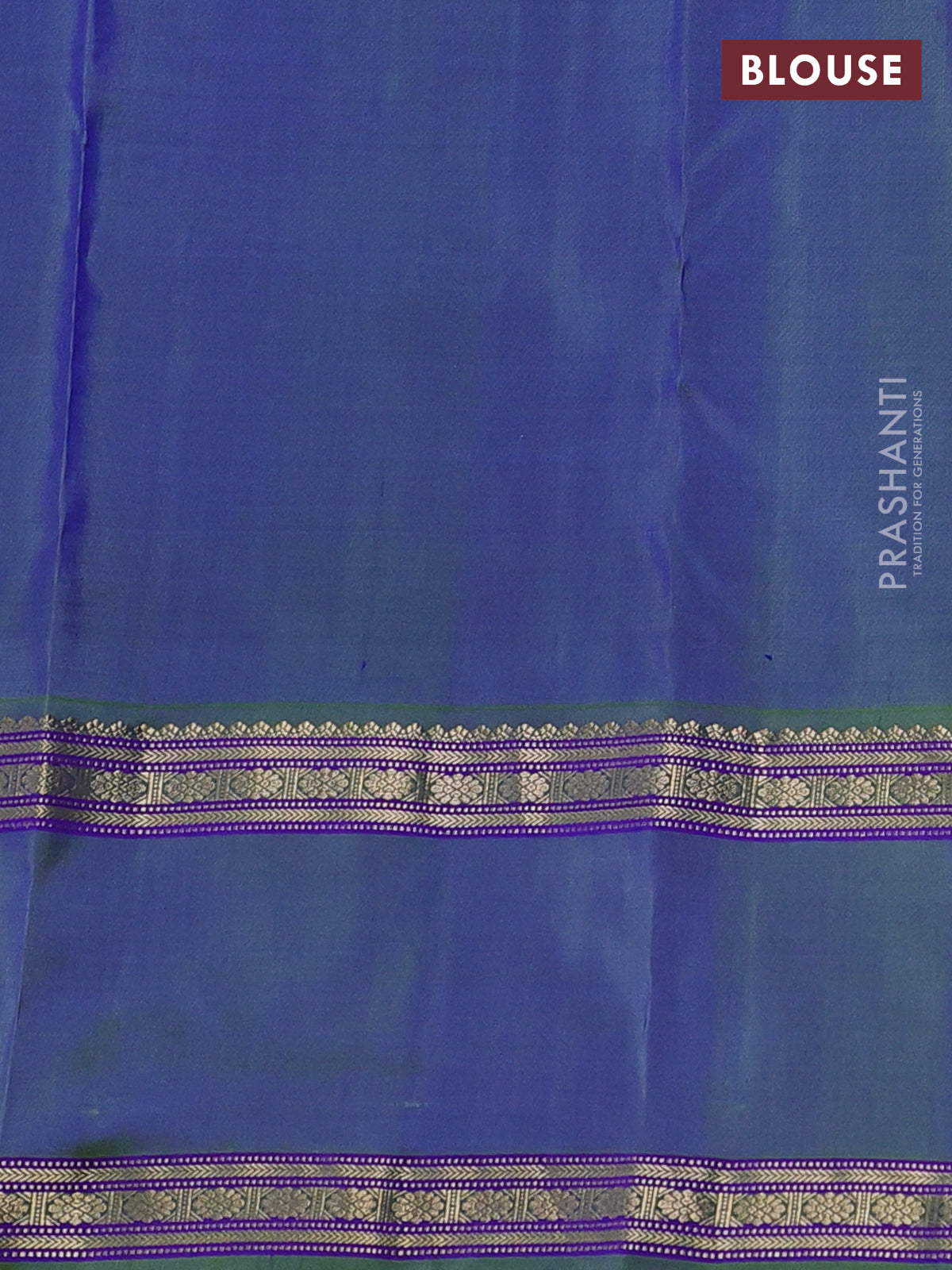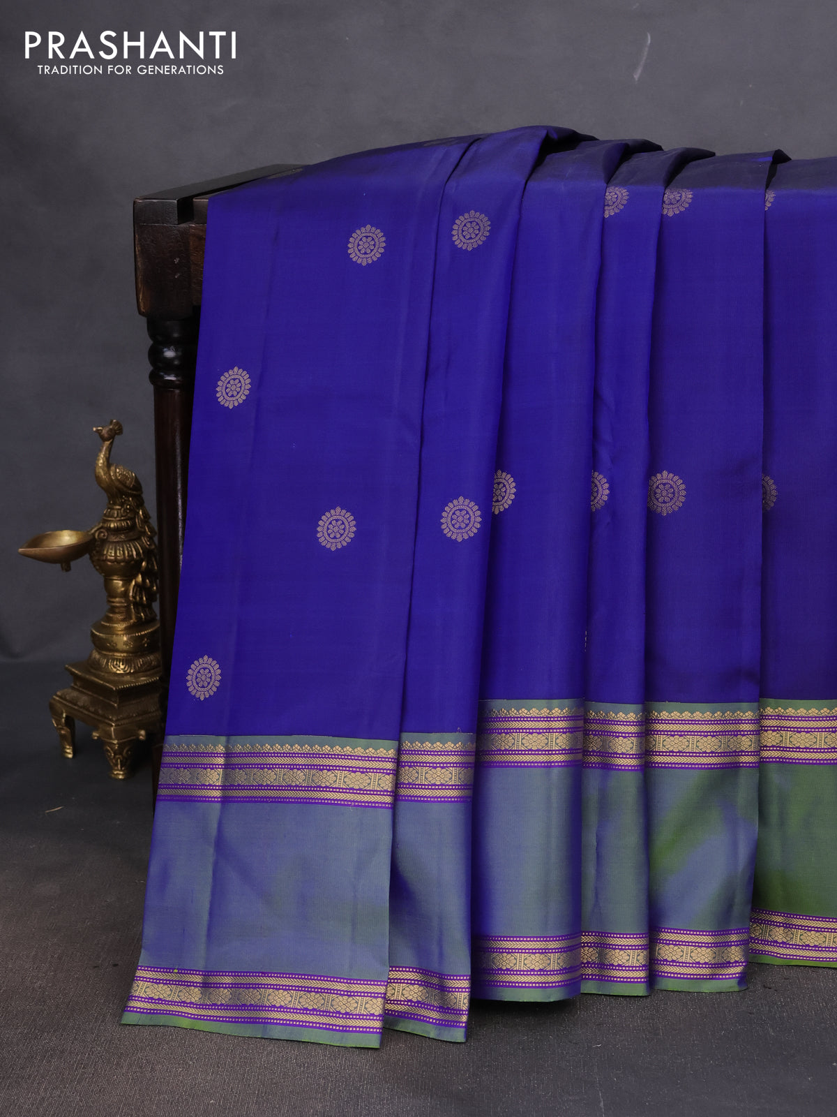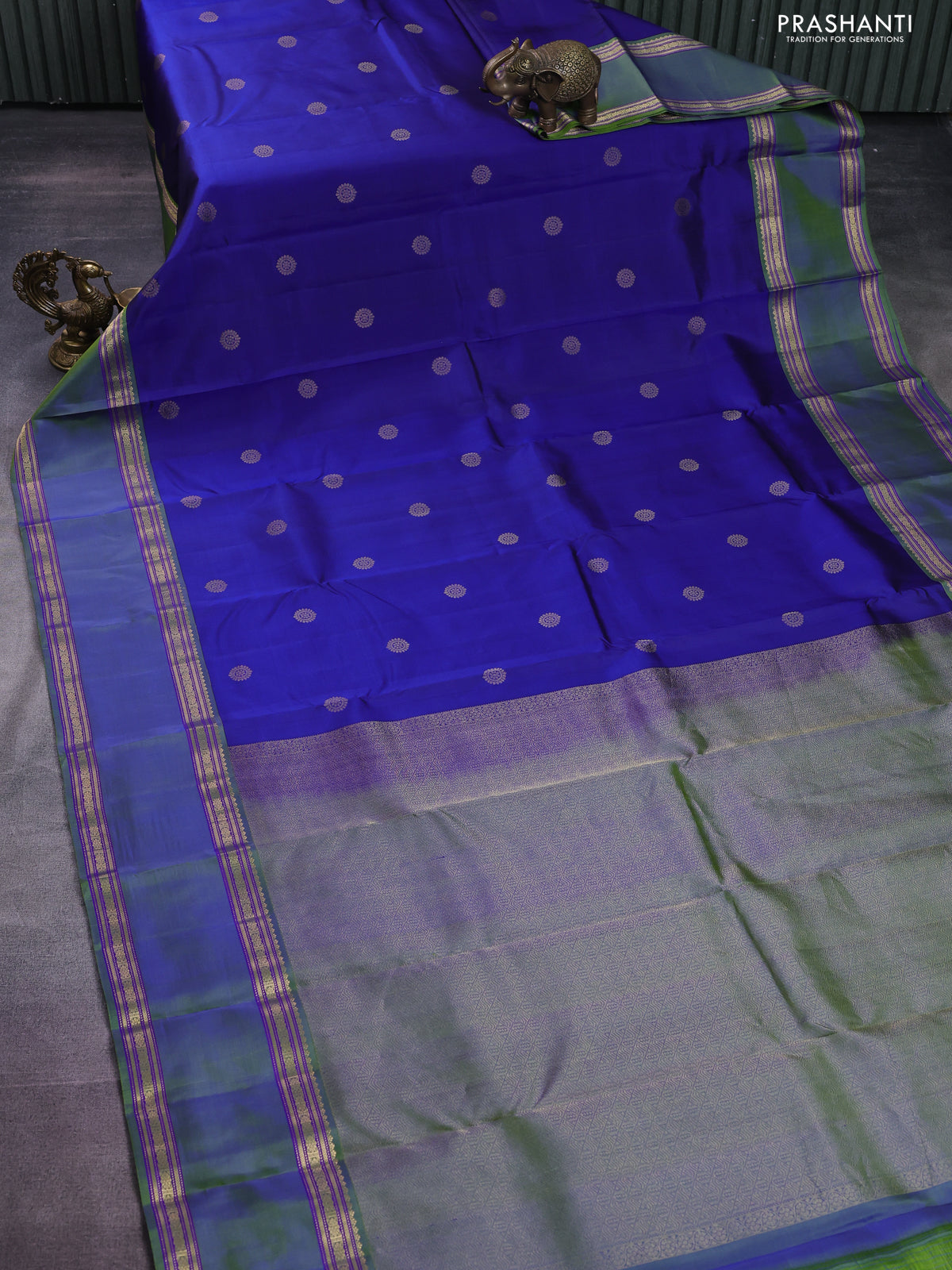 Pure kanchipuram silk saree blue and dual shade of green with zari woven buttas and rettapet zari woven border