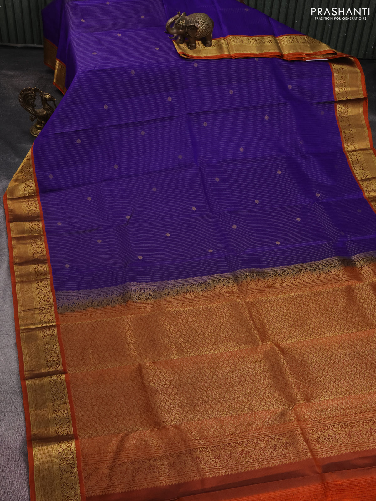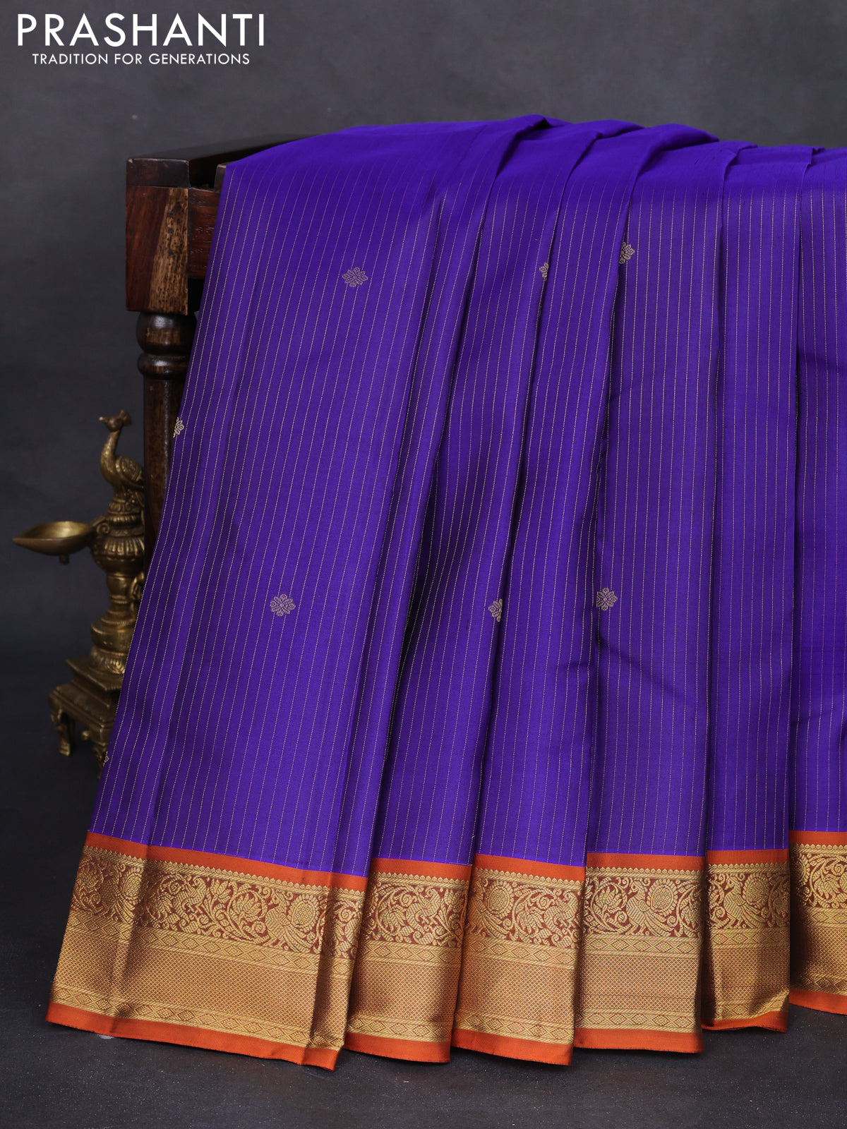 Pure kanchipuram silk saree blue and orange with allover zari weaves & buttas and zari woven border