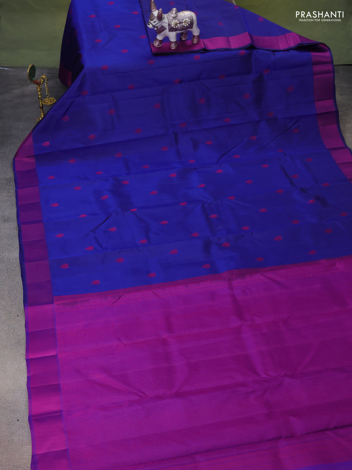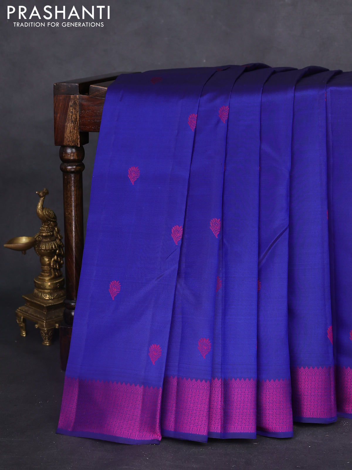 Pure kanchipuram silk saree blue and purple with thread woven buttas and thread woven border