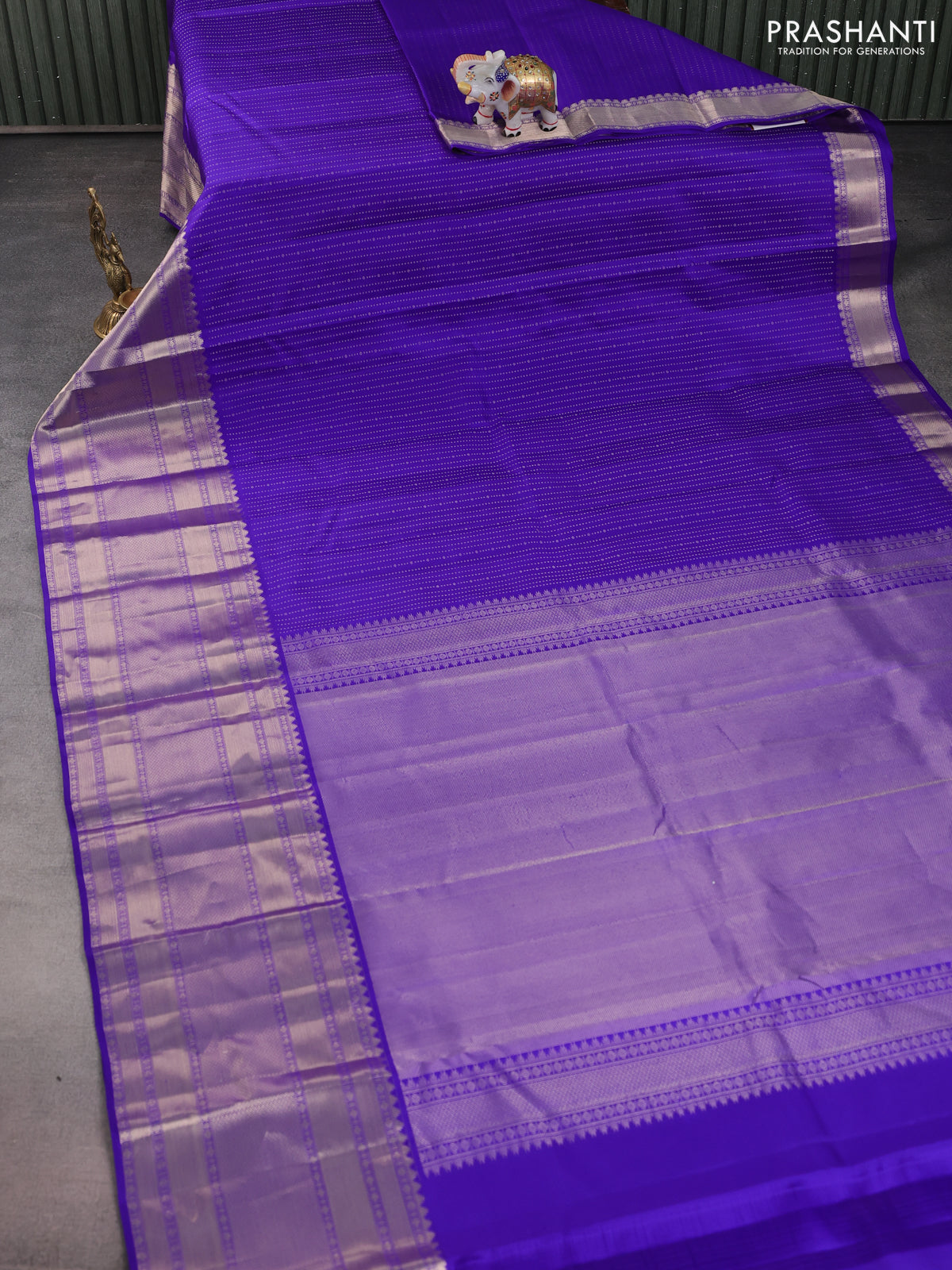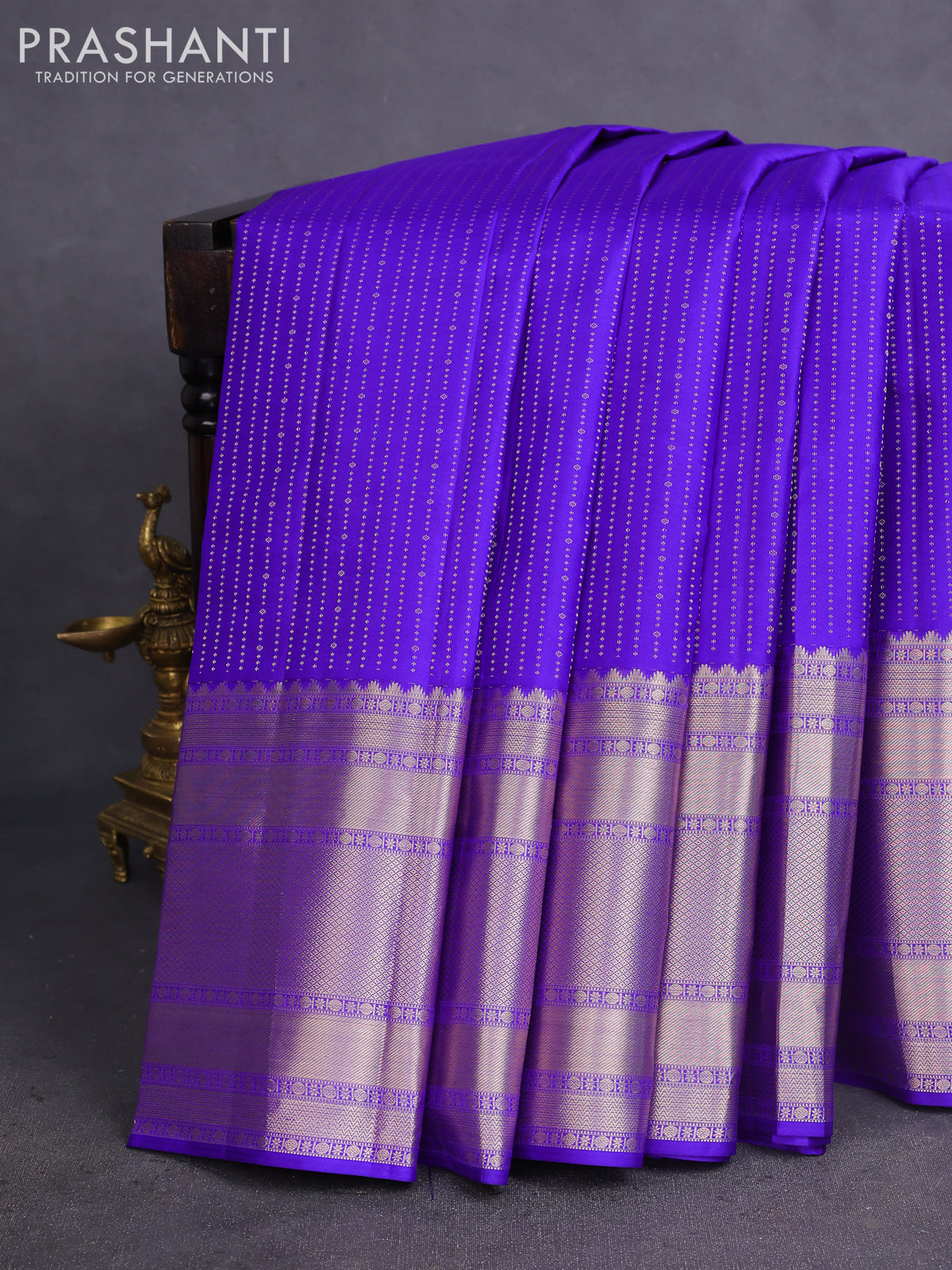 Pure kanchipuram silk saree blue with allover silver zari woven butta weaves and long rich zari woven border