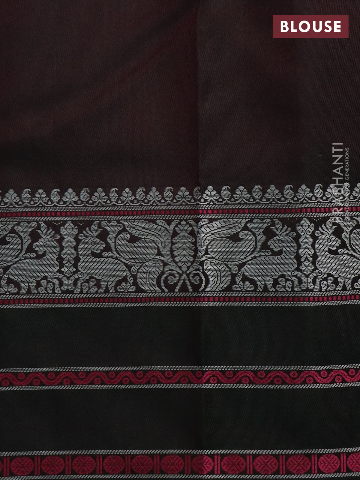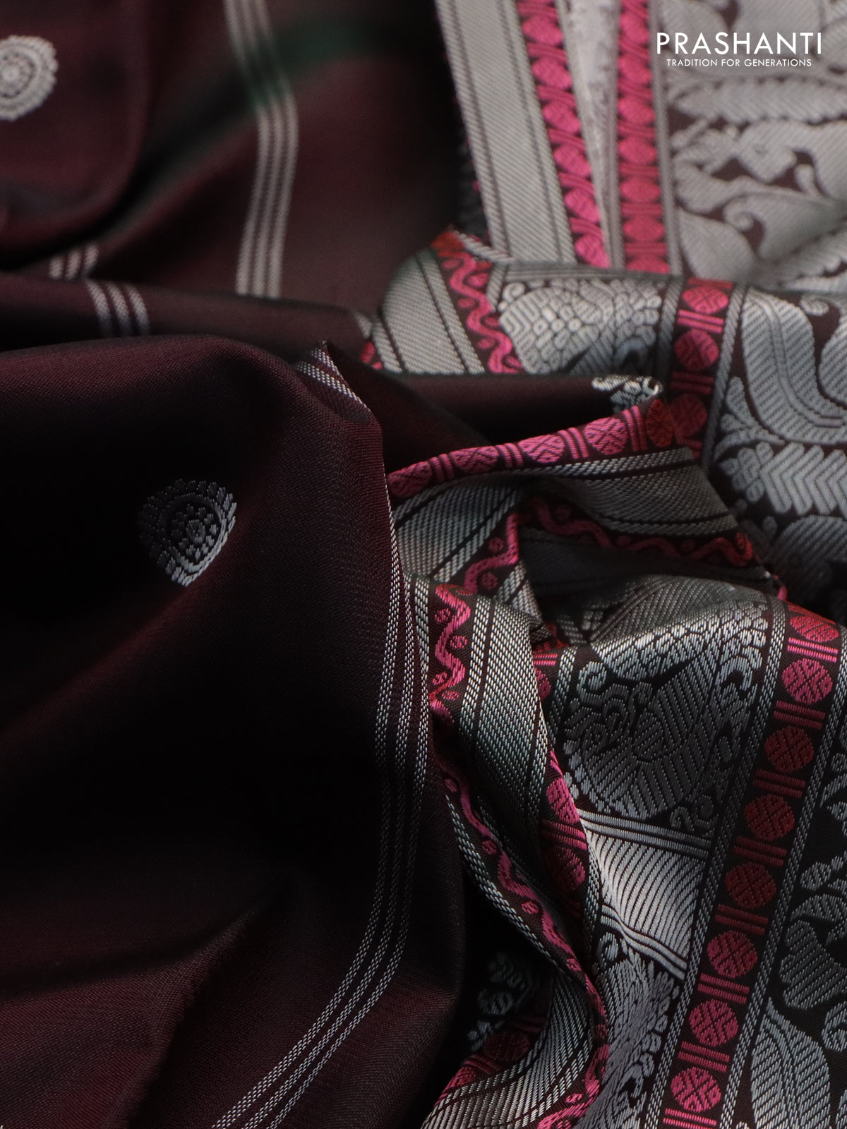 Pure kanchipuram silk saree brown and dark green with thread woven mayil chakkaram buttas and thread woven border