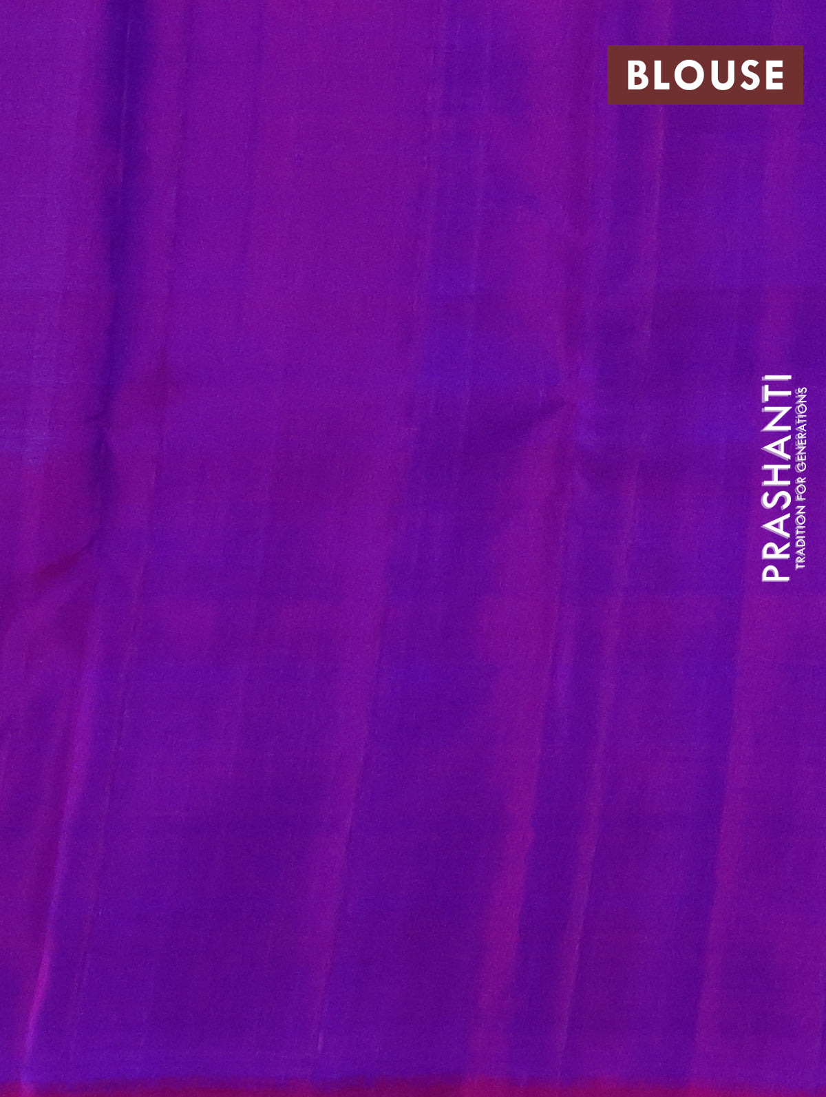 Pure kanchipuram silk saree cs blue and purple with allover zari weaves and zari woven box type butta border