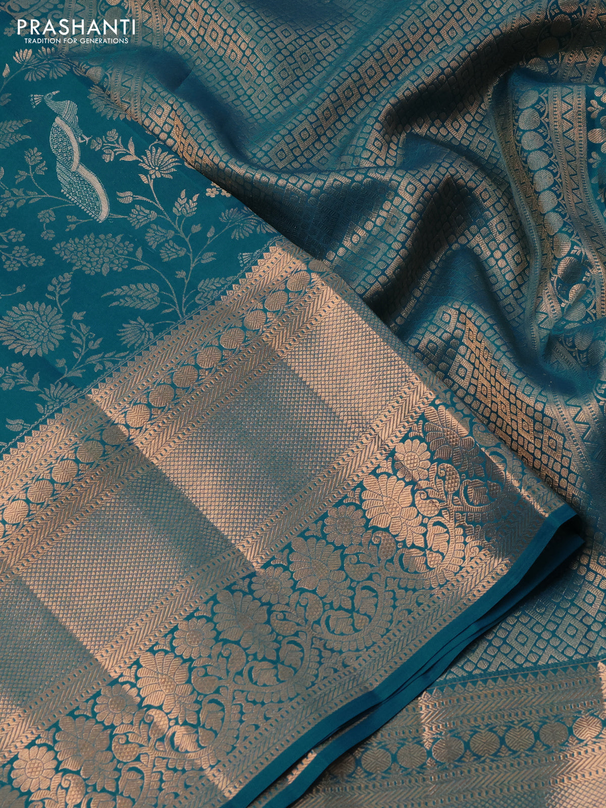 Pure kanchipuram silk saree cs blue with allover zari woven brocade weaves and long rich zari woven border