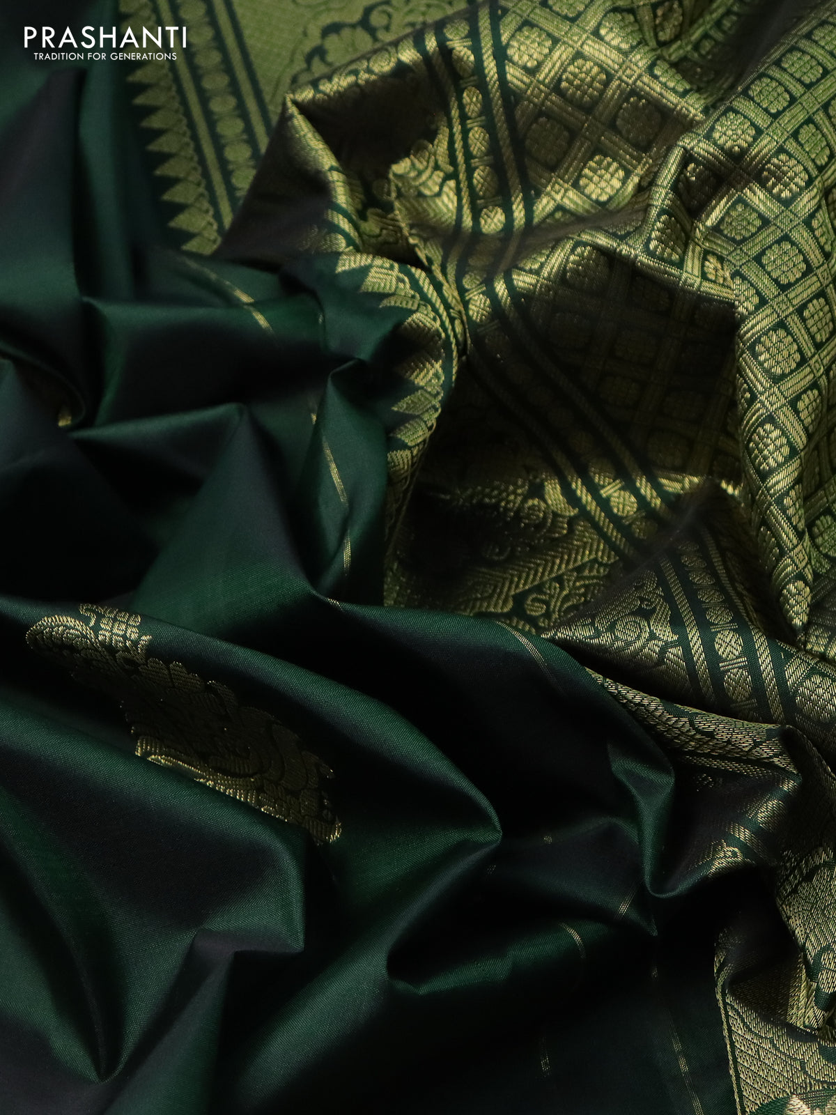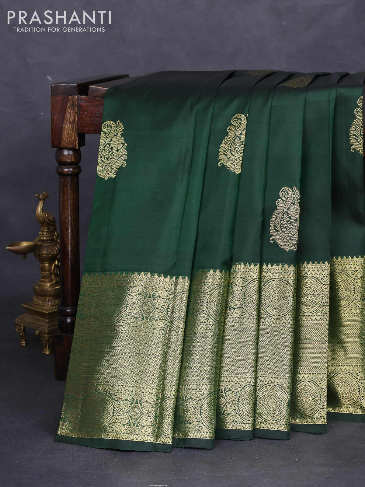 Pure kanchipuram silk saree dark green with zari woven buttas and zari woven border
