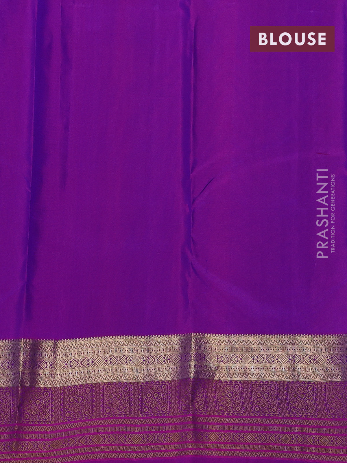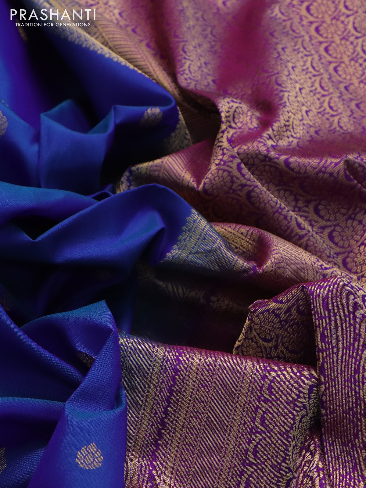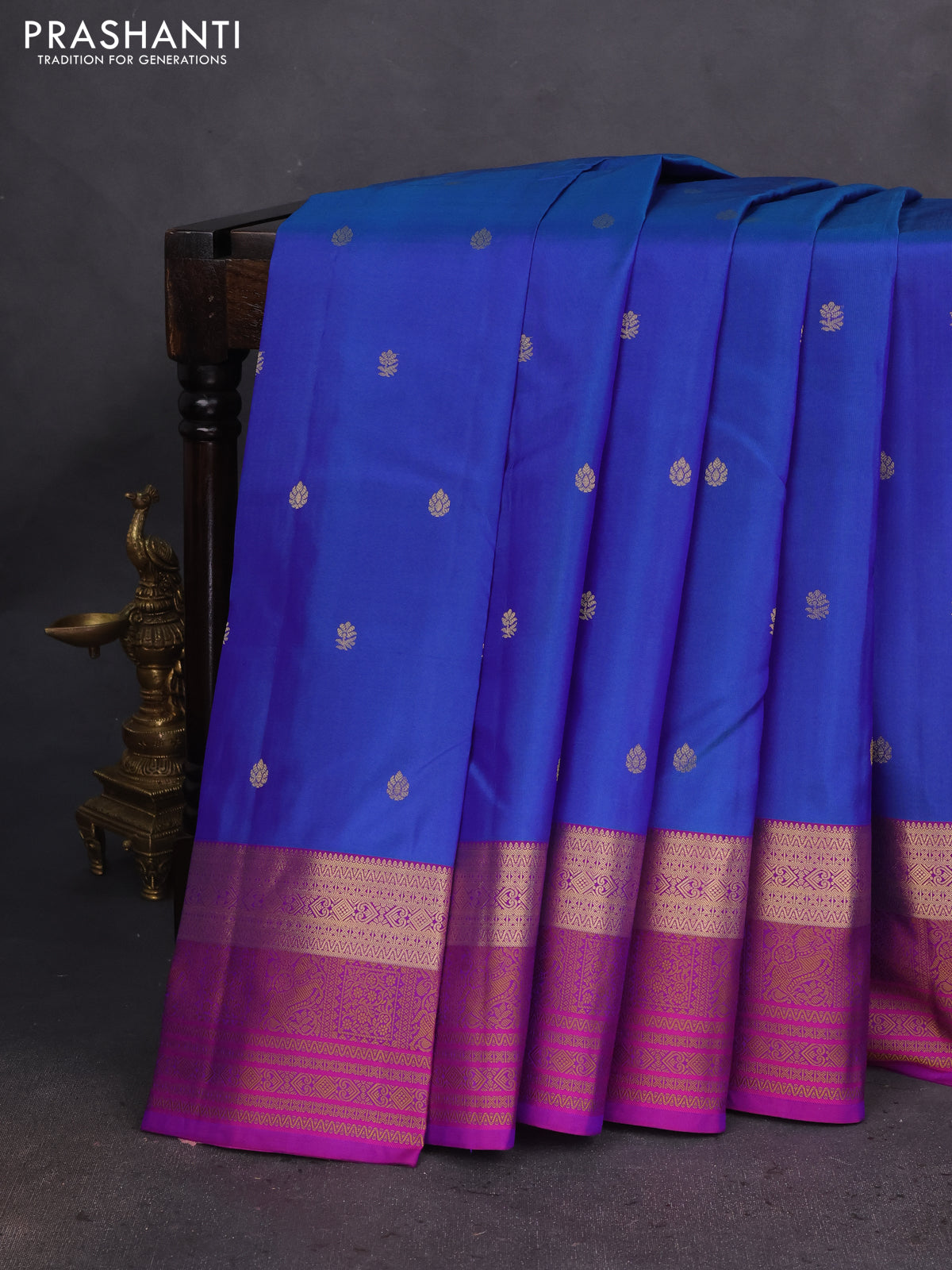Pure kanchipuram silk saree dual shade of blue and purple with zari woven buttas and rich zari woven border