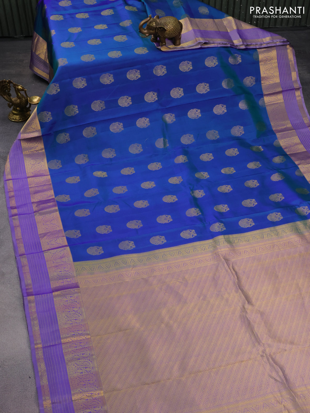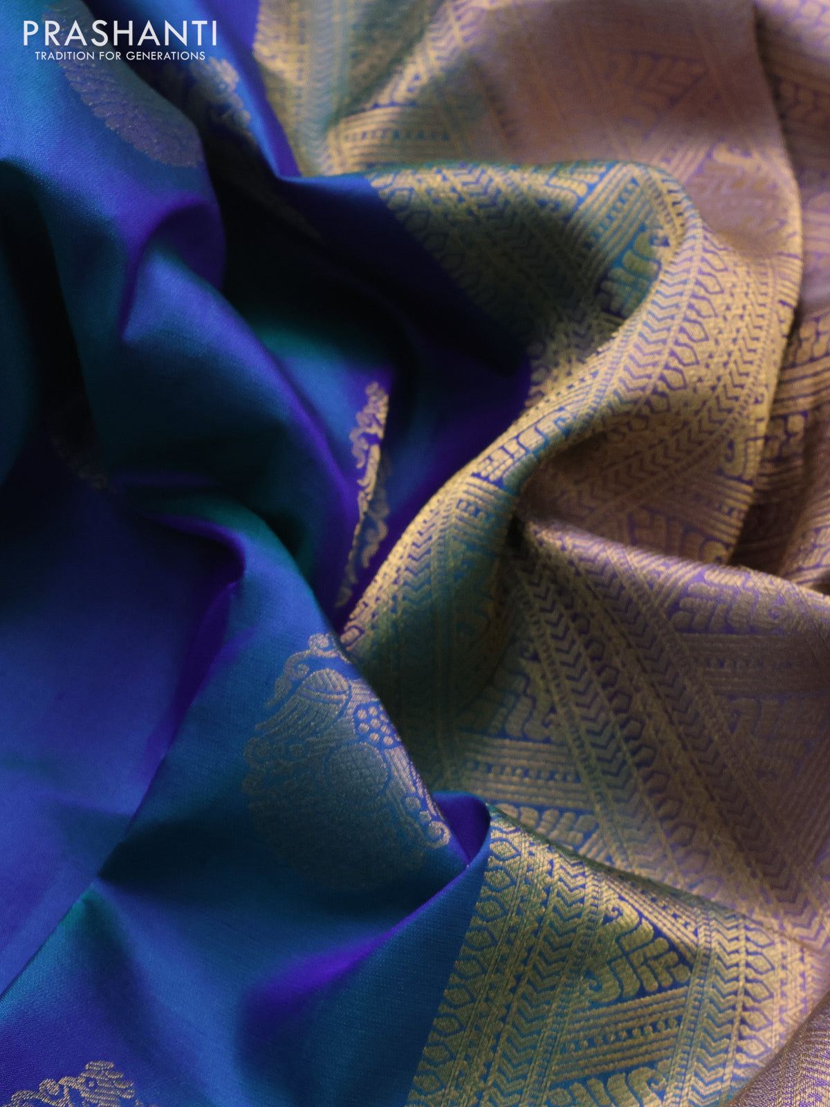 Pure kanchipuram silk saree dual shade of bluish green and lavender with annam zari woven buttas and zari woven border