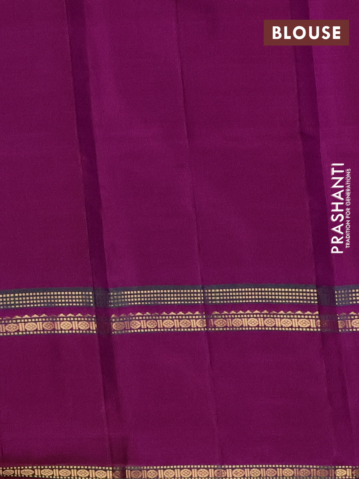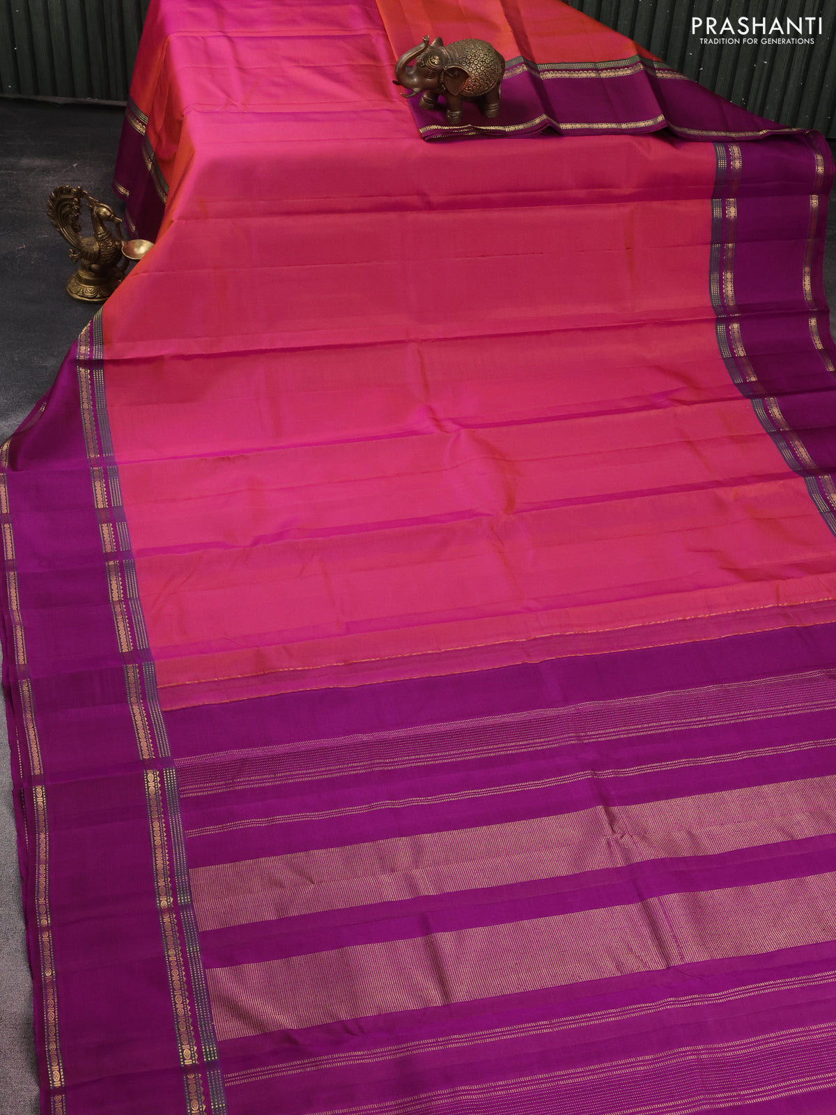 Pure kanchipuram silk saree dual shade of pinkish orange and purple with plain body and rettapet zari woven border
