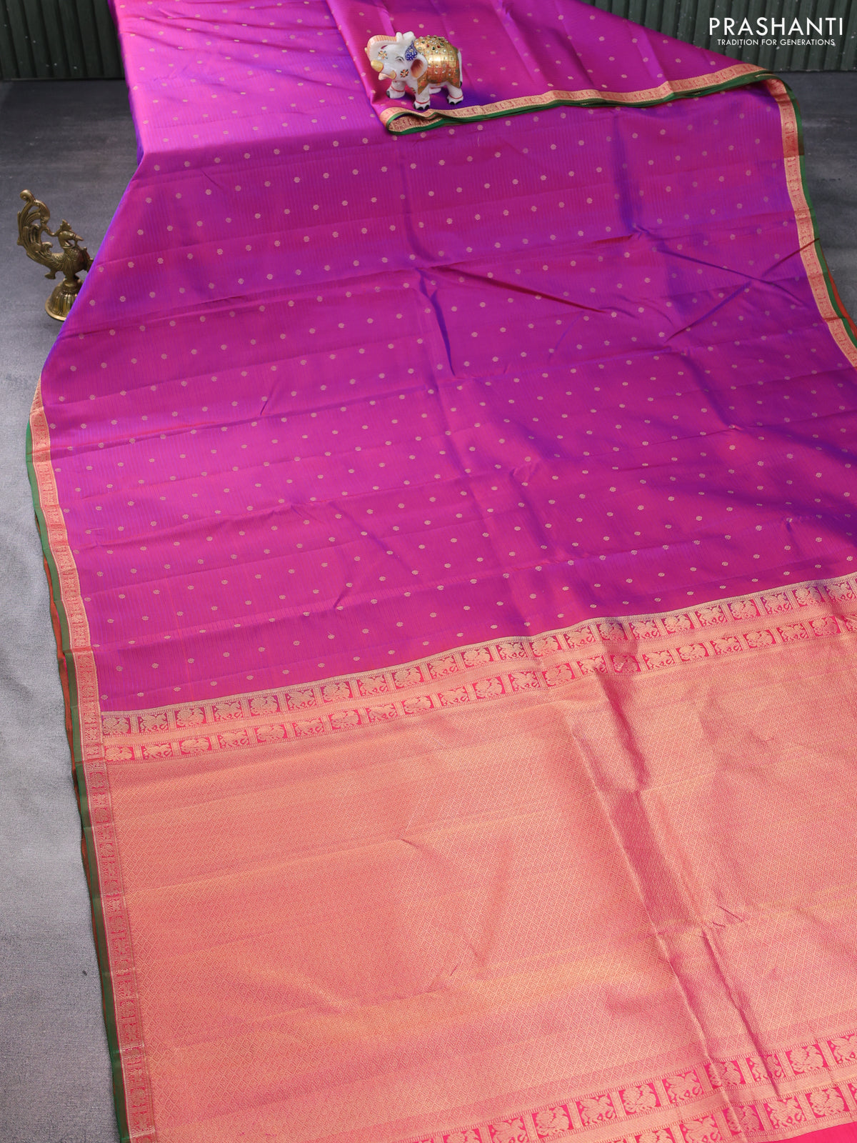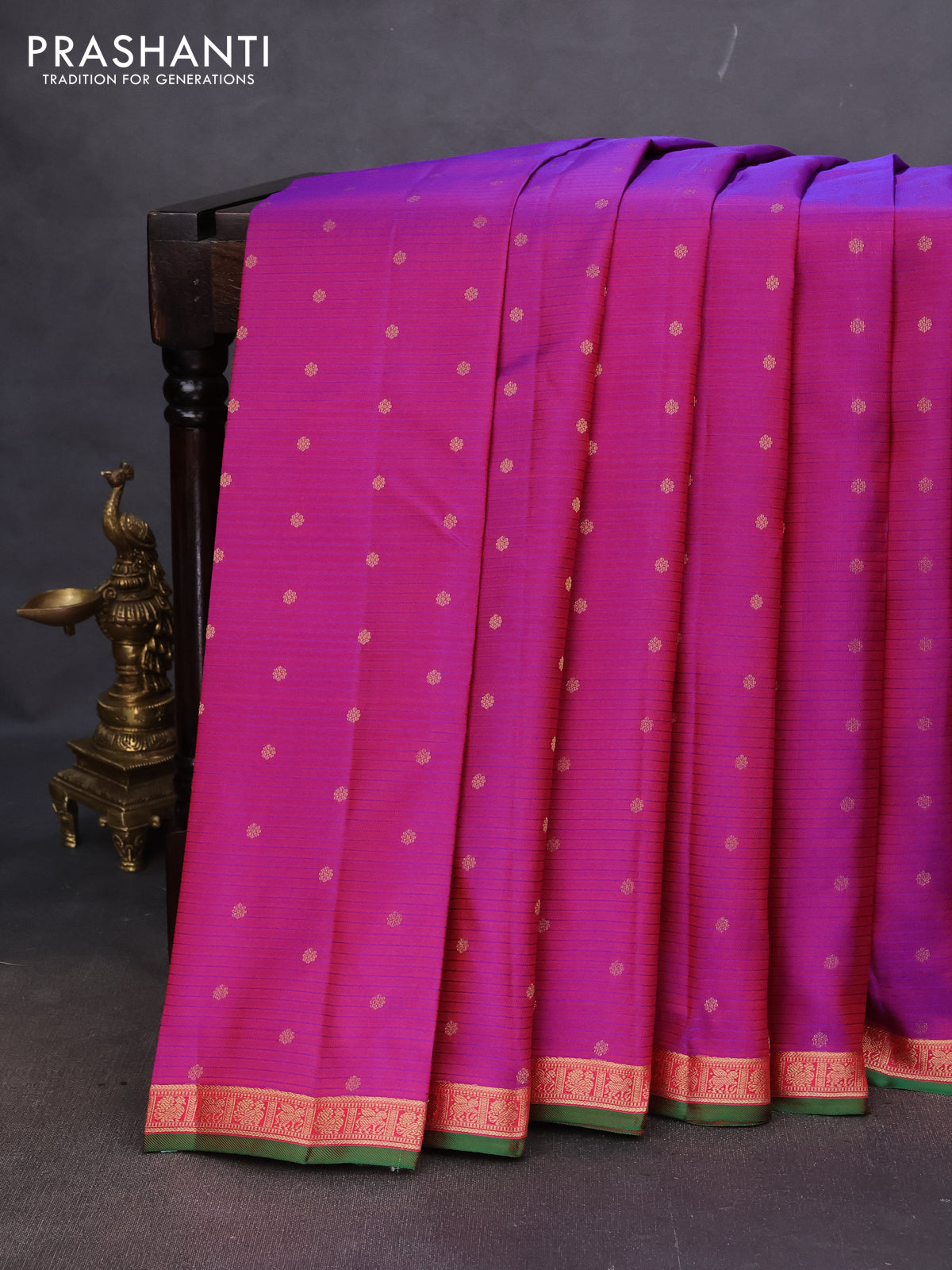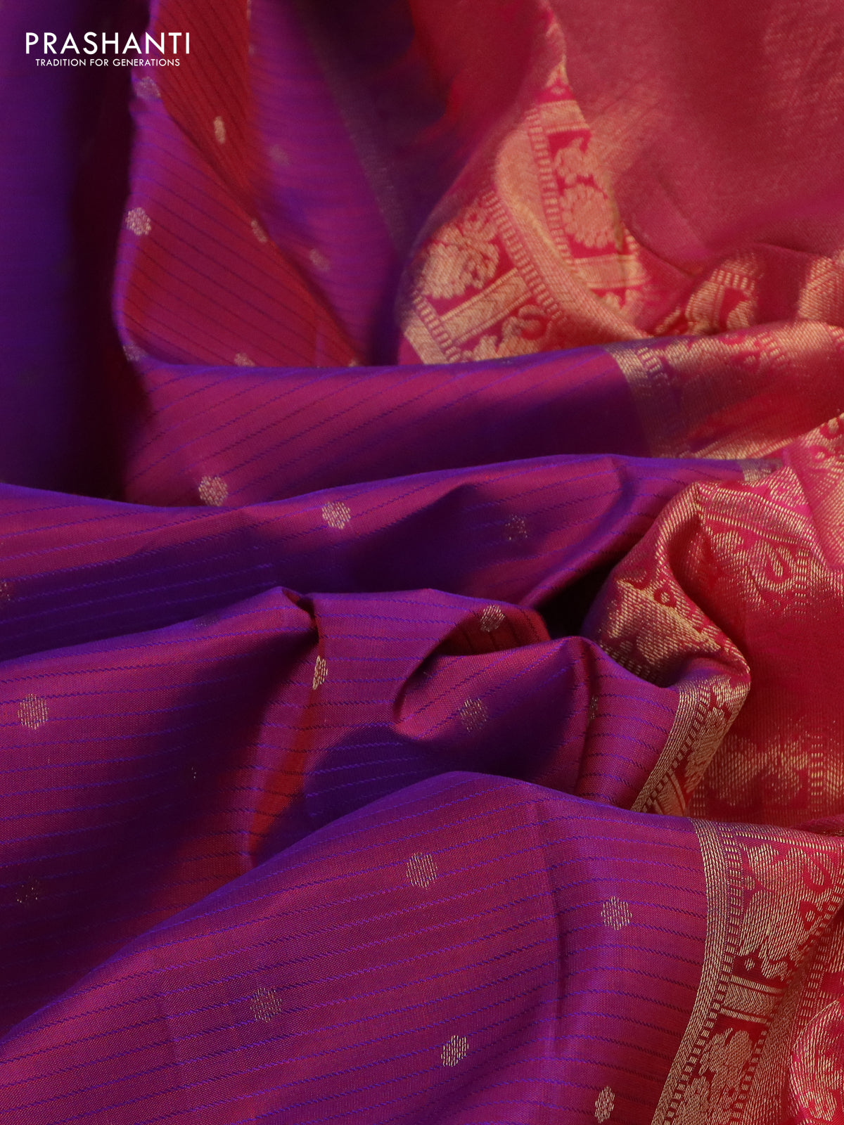 Pure kanchipuram silk saree dual shade of purple and pink with allover stripe pattern & zari woven buttas and small zari woven border