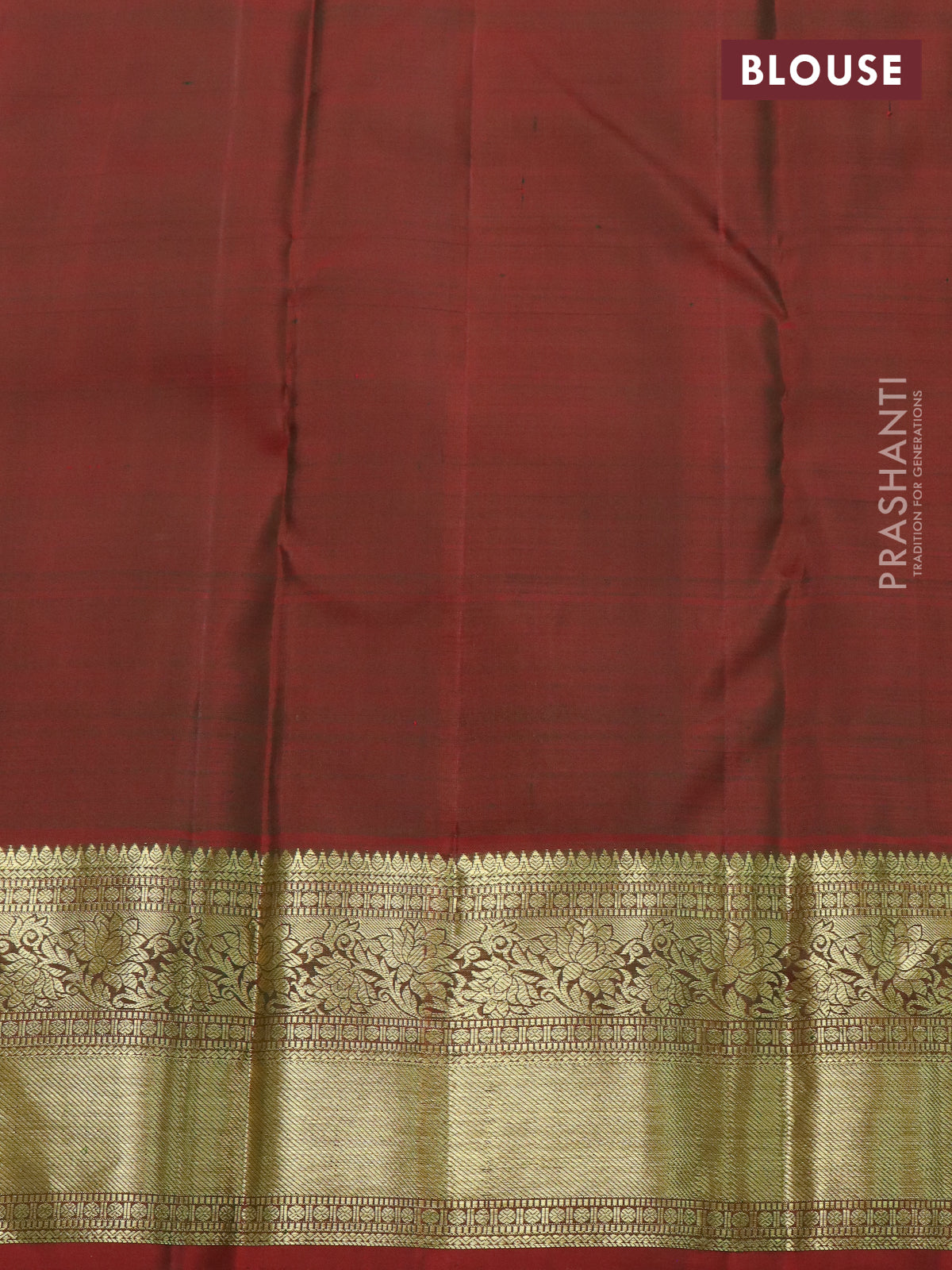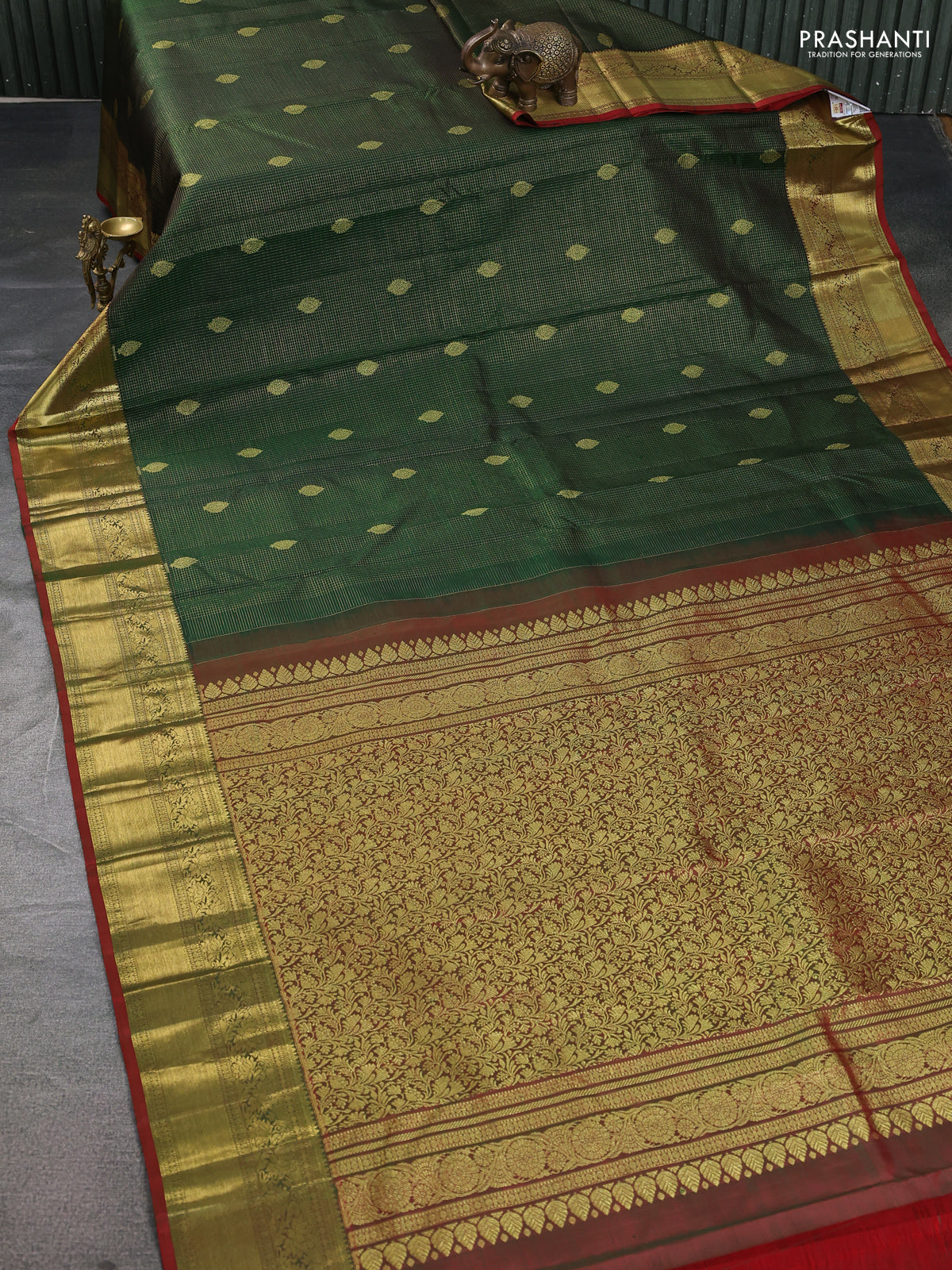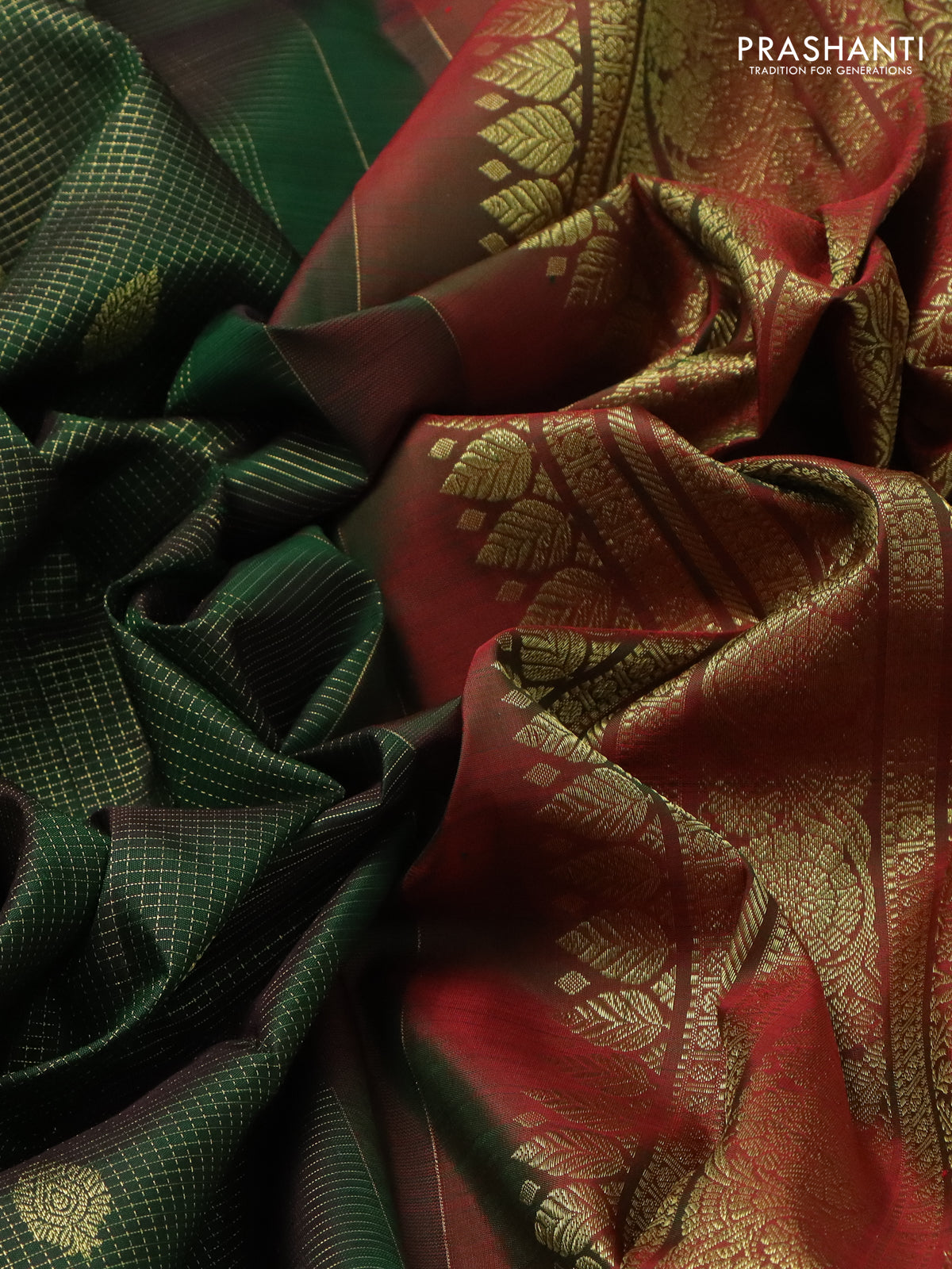 Pure kanchipuram silk saree green and maroon with allover small zari checks & buttas and zari woven border