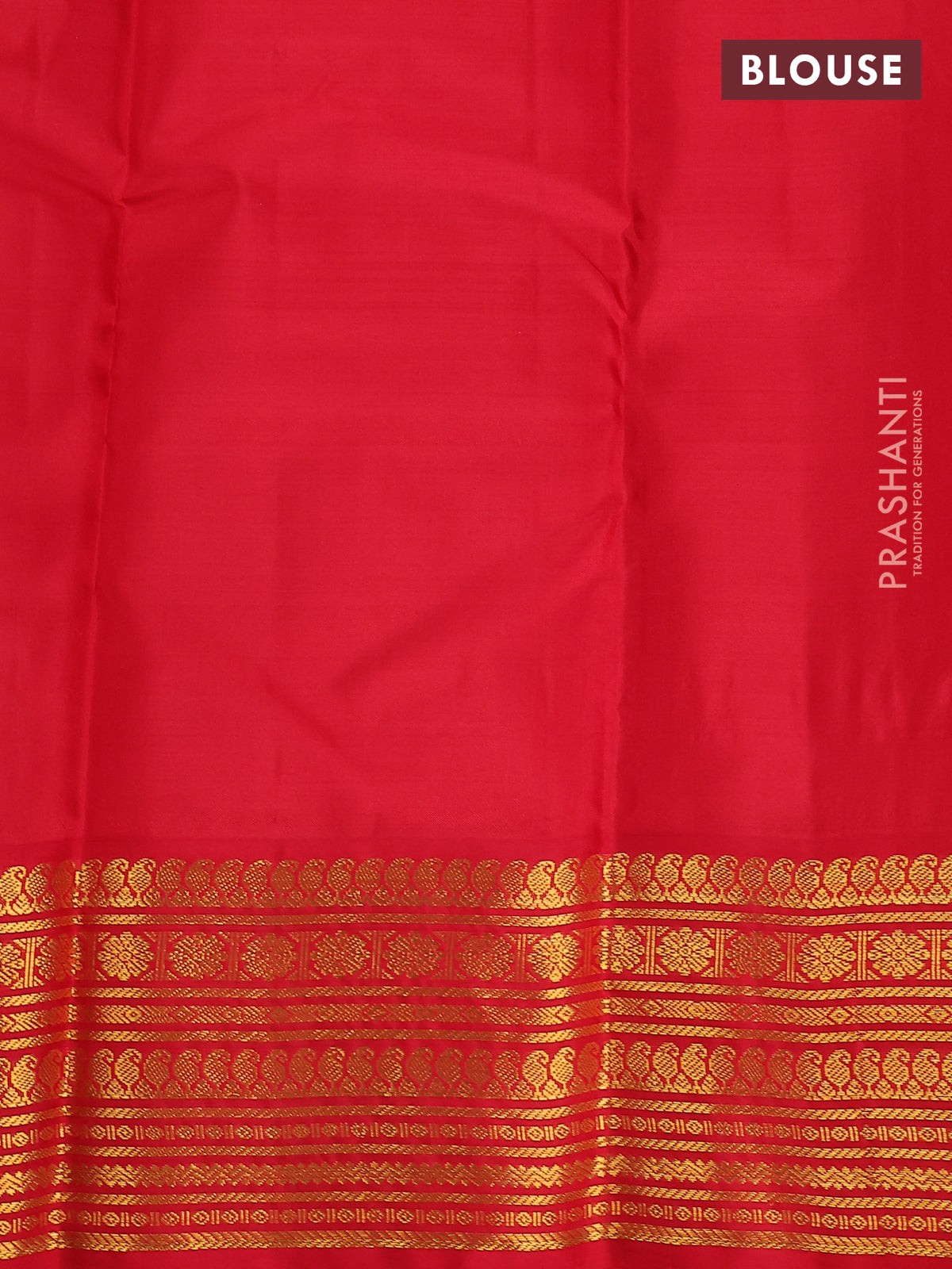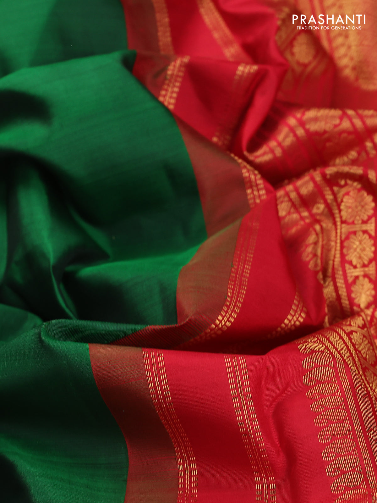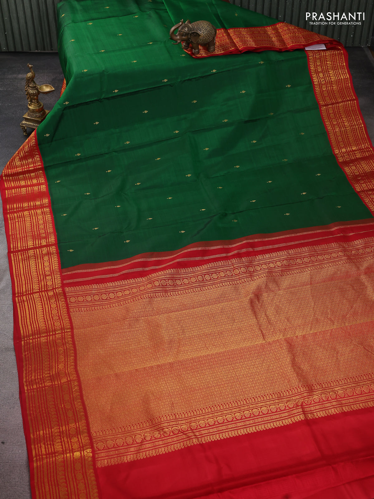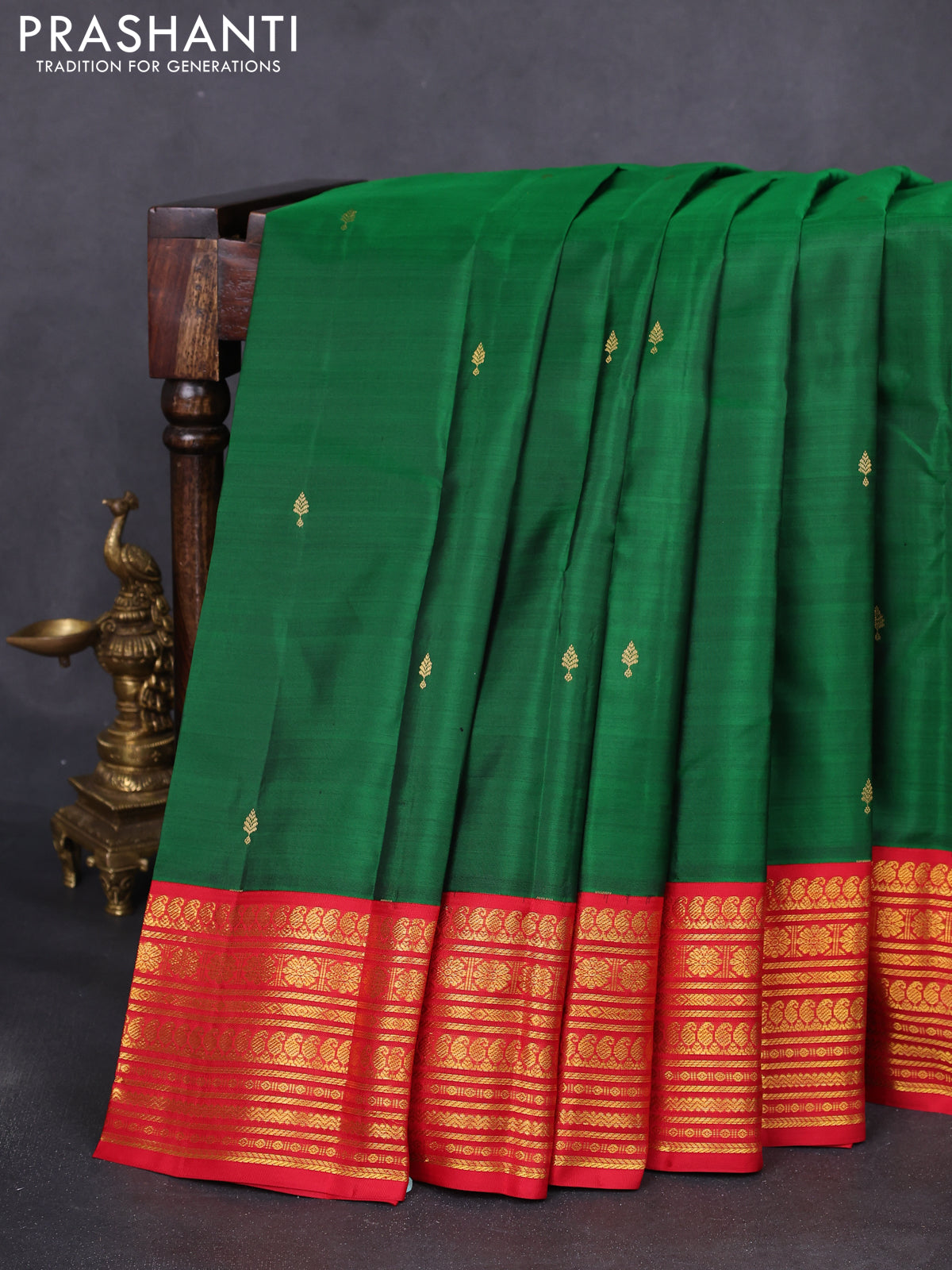 Pure kanchipuram silk saree green and red with zari woven buttas and zari woven korvai border
