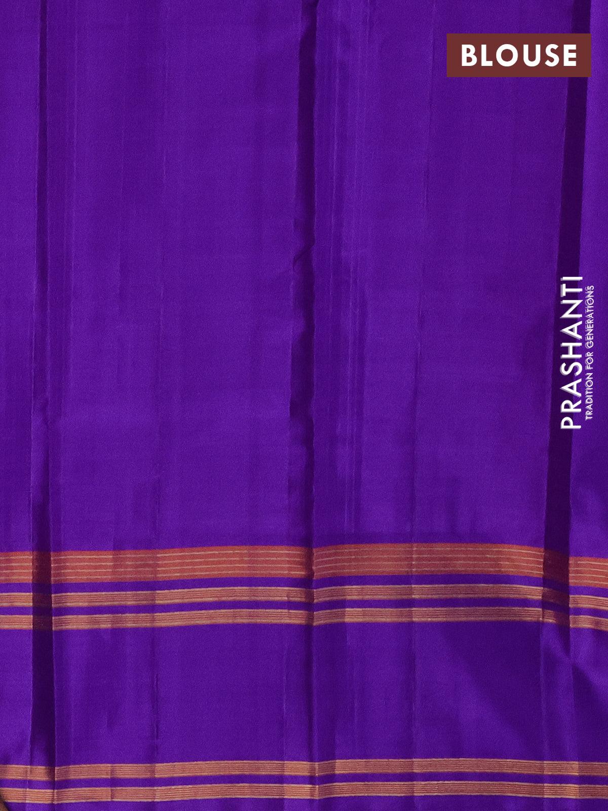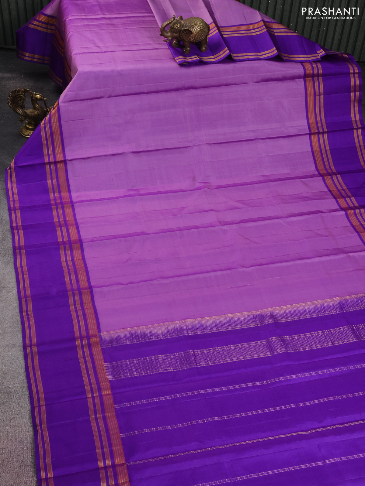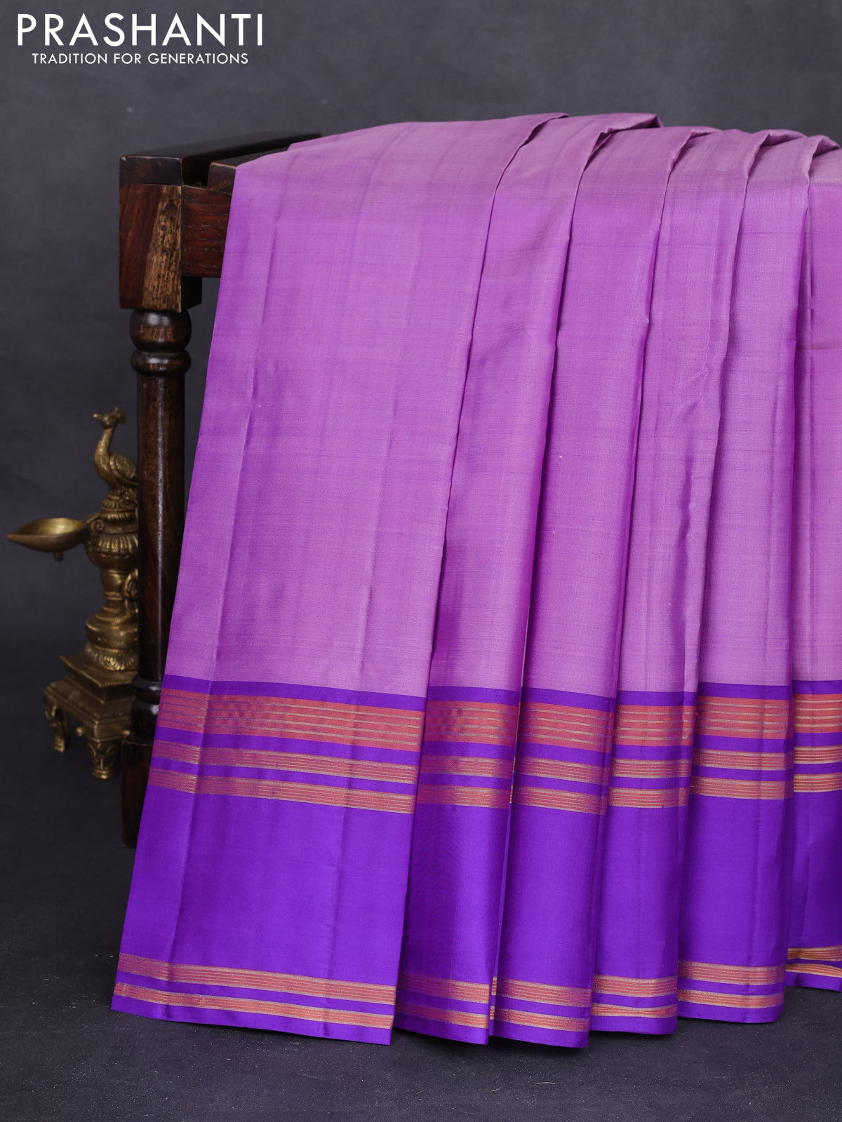 Pure kanchipuram silk saree lavender and blue with plain body and rettapet zari woven border