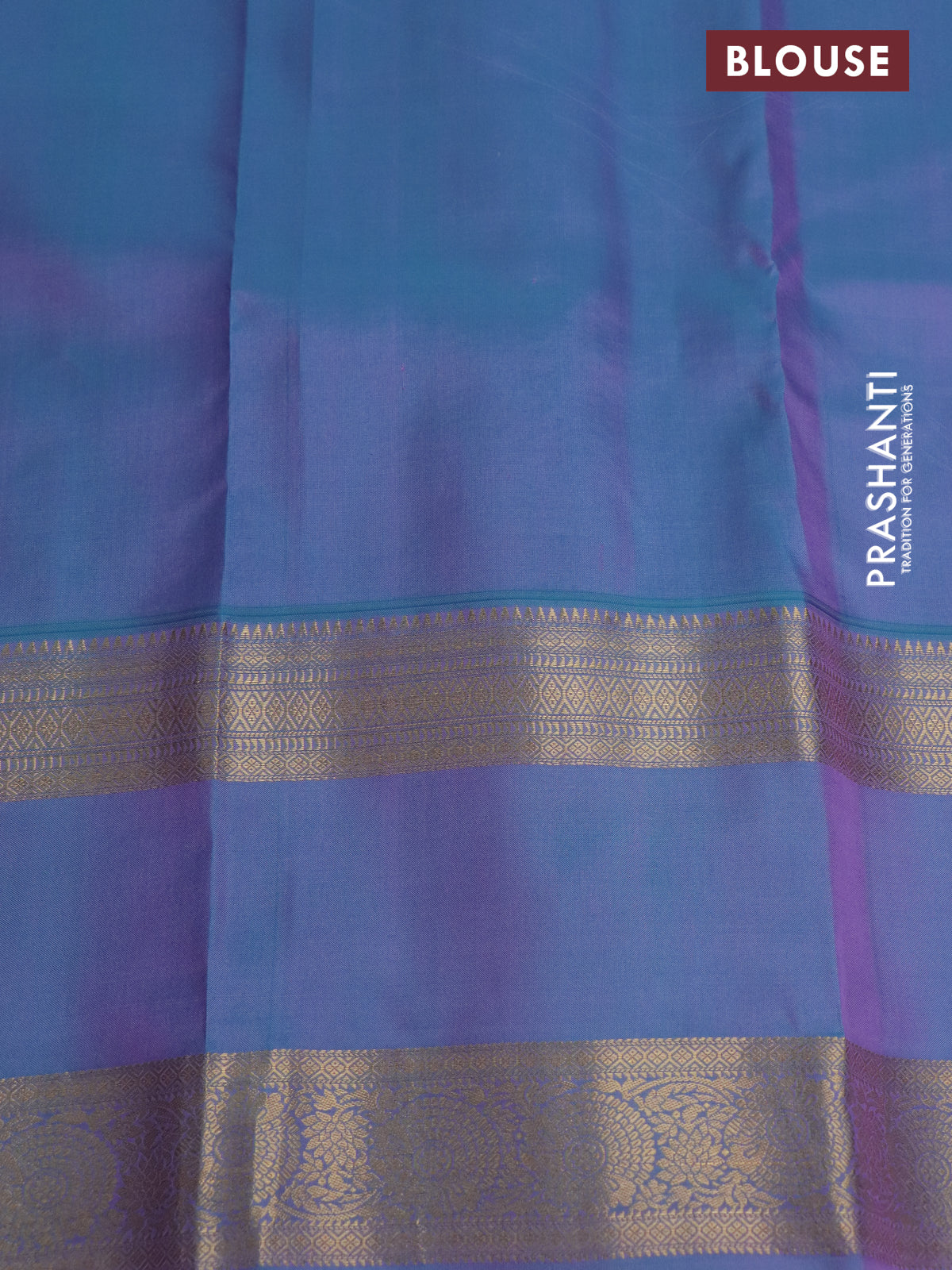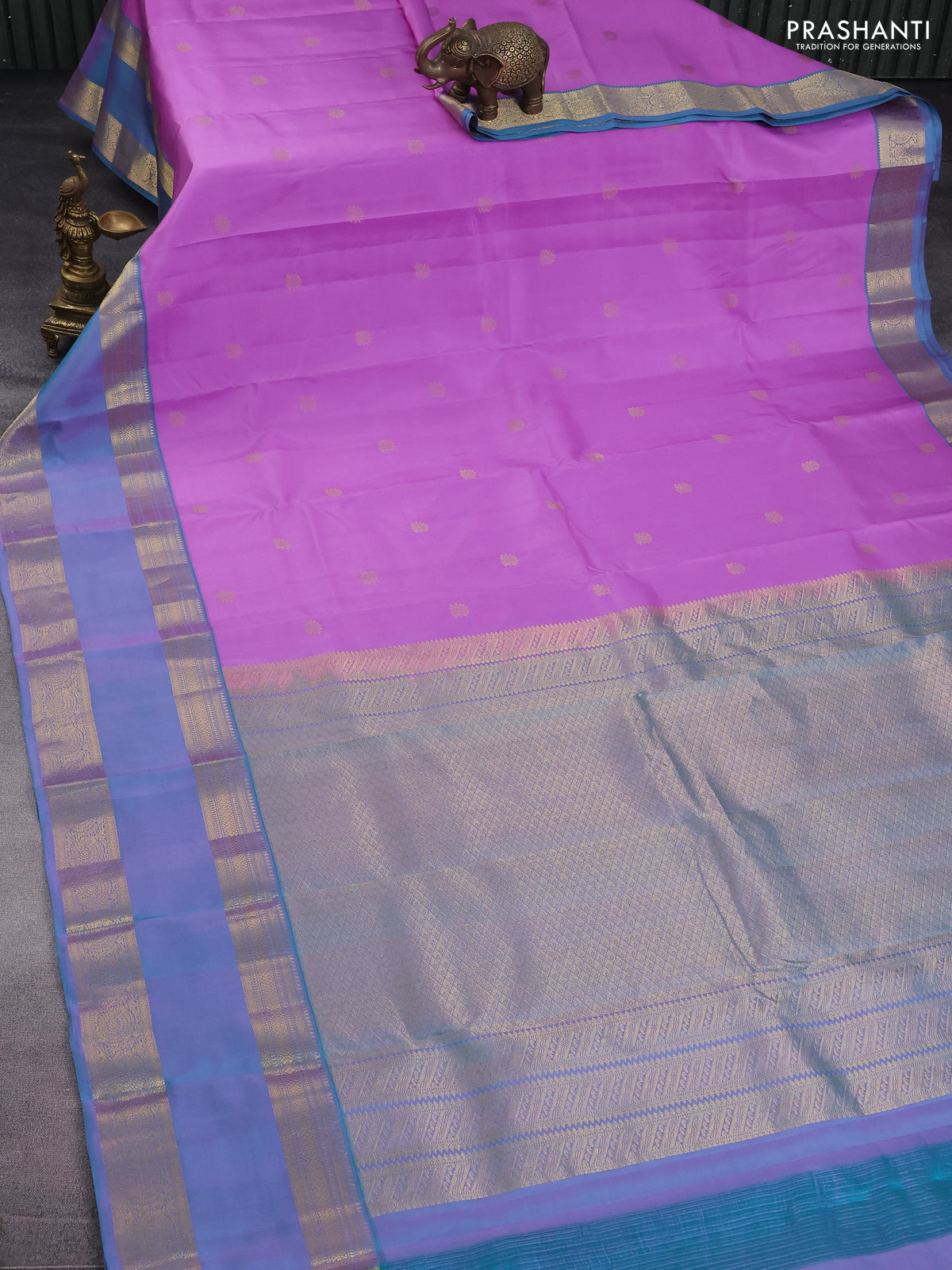 Pure kanchipuram silk saree lavender and dual shade of teal blue with zari woven buttas and long rettapet zari woven border