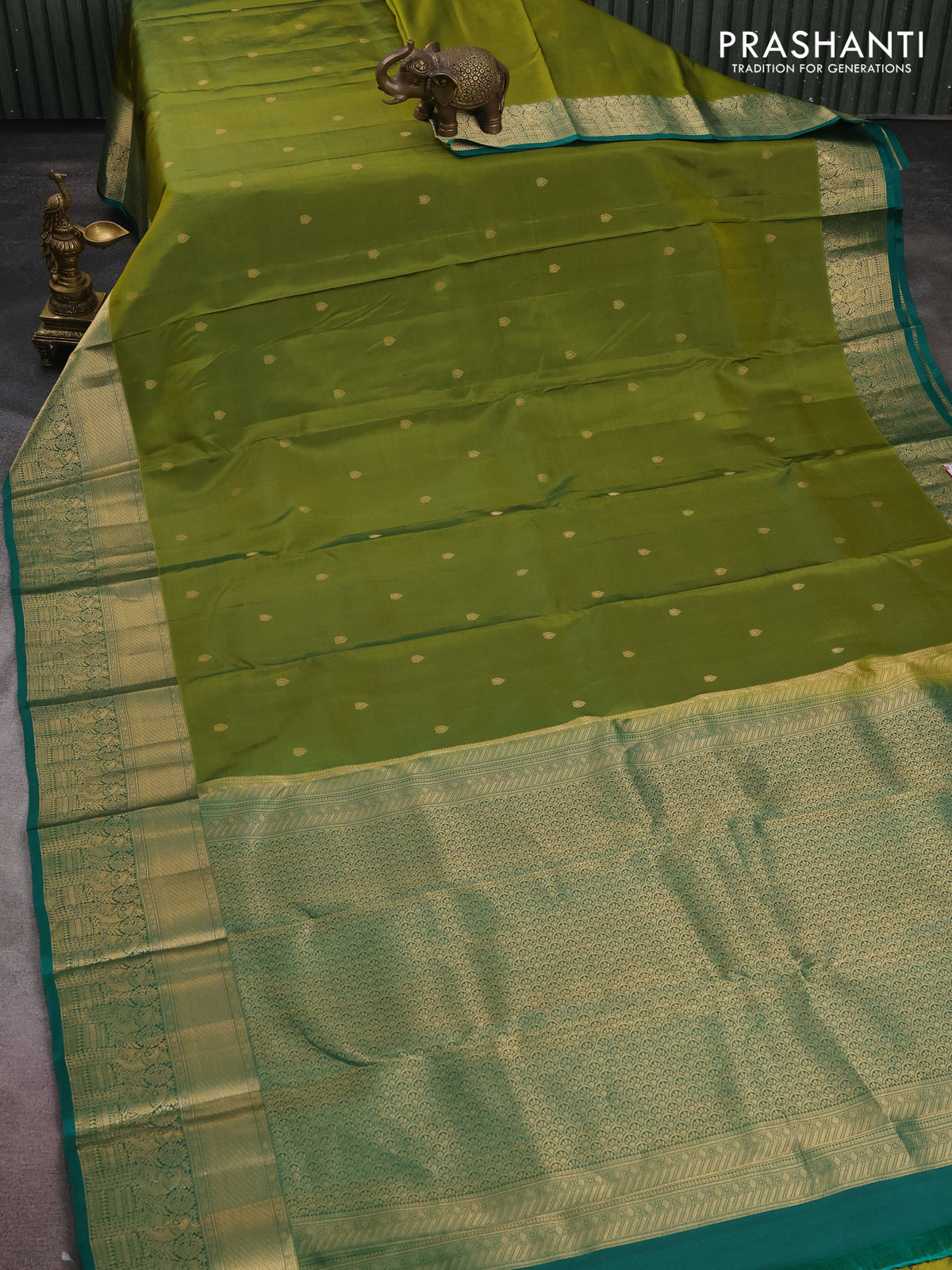 Pure kanchipuram silk saree light green and green with zari woven buttas and rich zari woven border