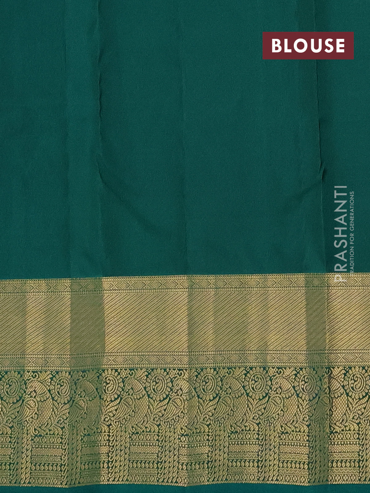 Material : Pure Kanchipuram Silk SILK MARK CERTIFIED Blouse : Attached Length of saree : 6.2 mts (5.5 mts saree... Read more
