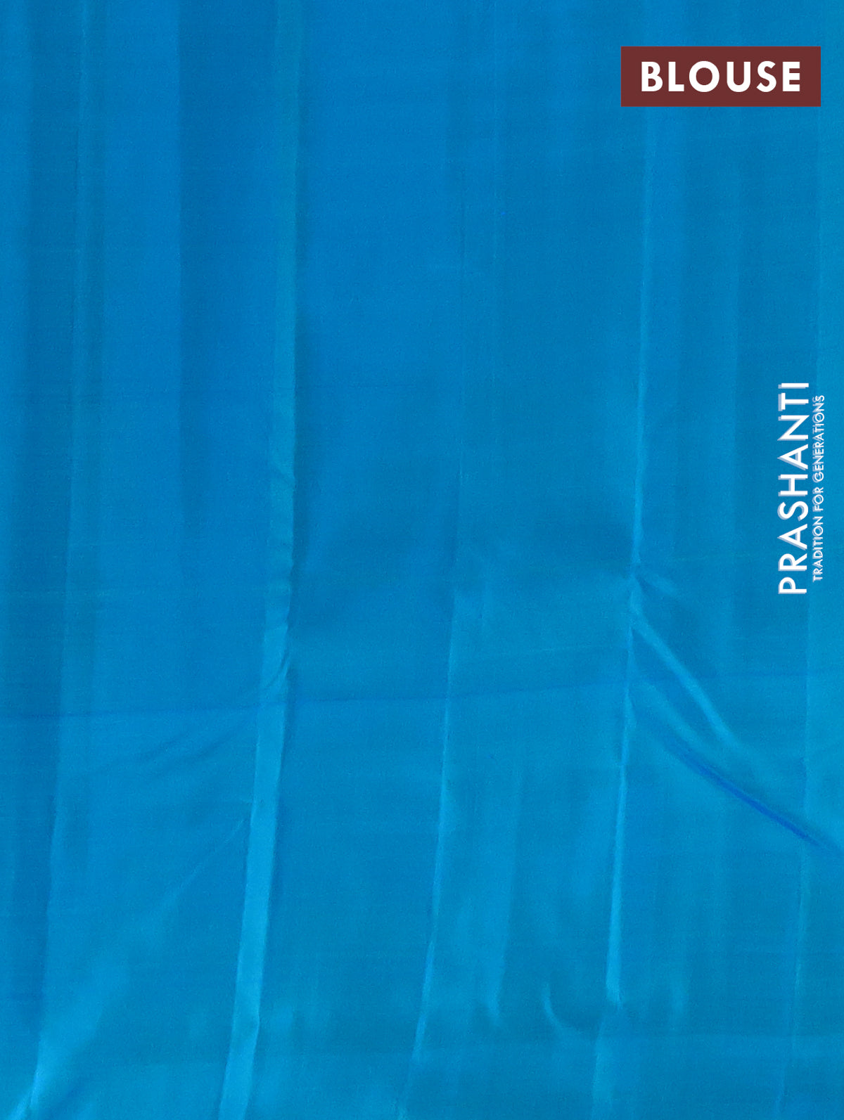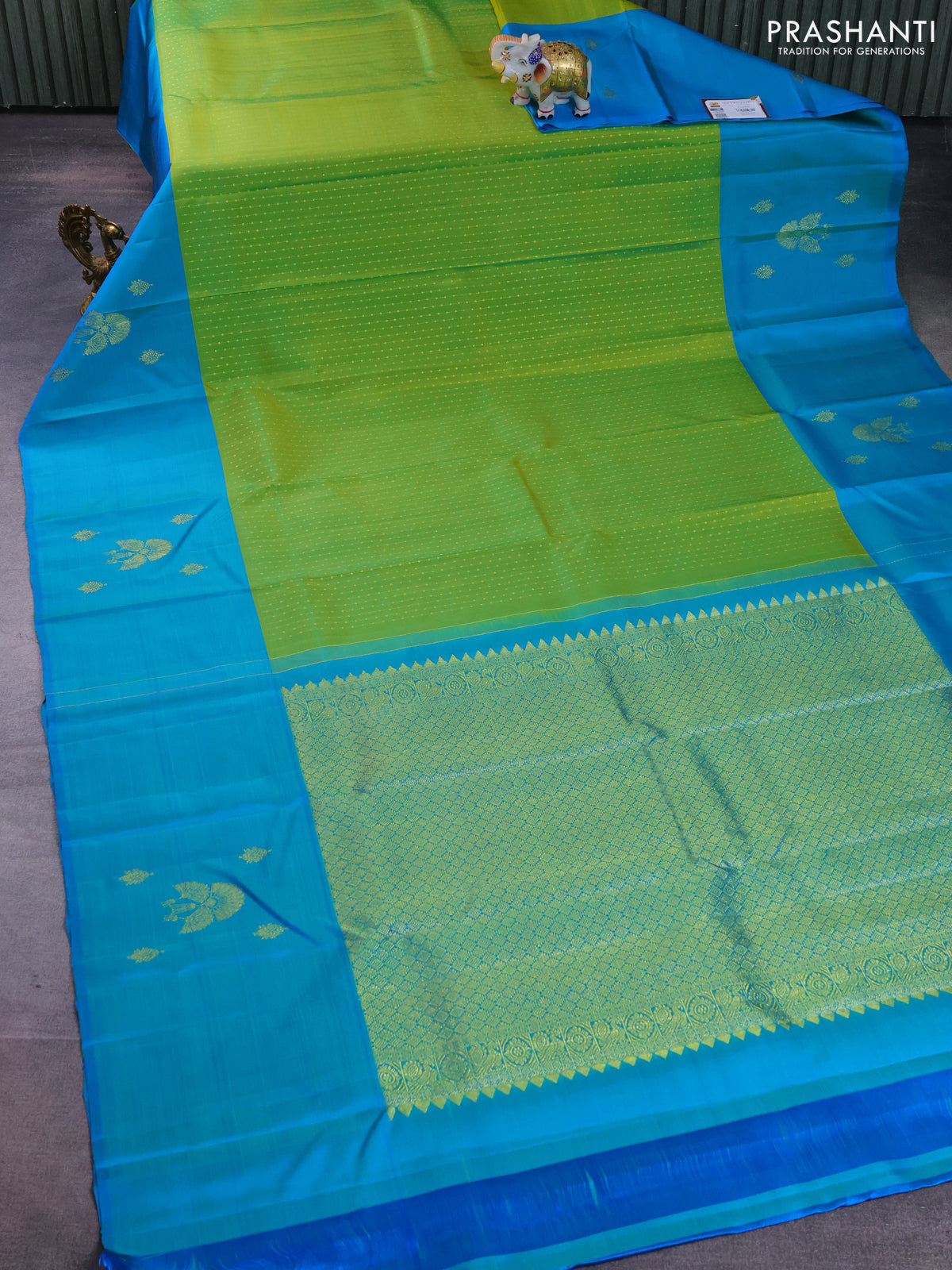 Pure kanchipuram silk saree light green and teal blue with allover zari weaves and zari woven butta border