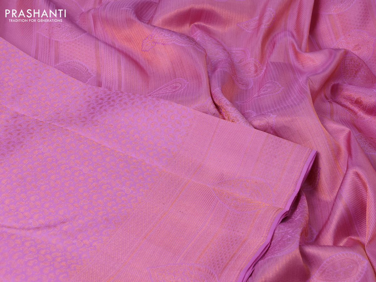 Pure kanchipuram silk saree light pink with allover copper zari woven brocade weaves and copper zari woven border