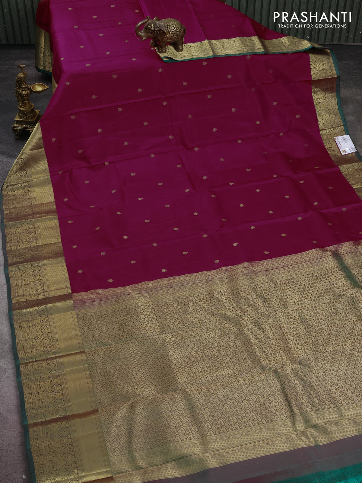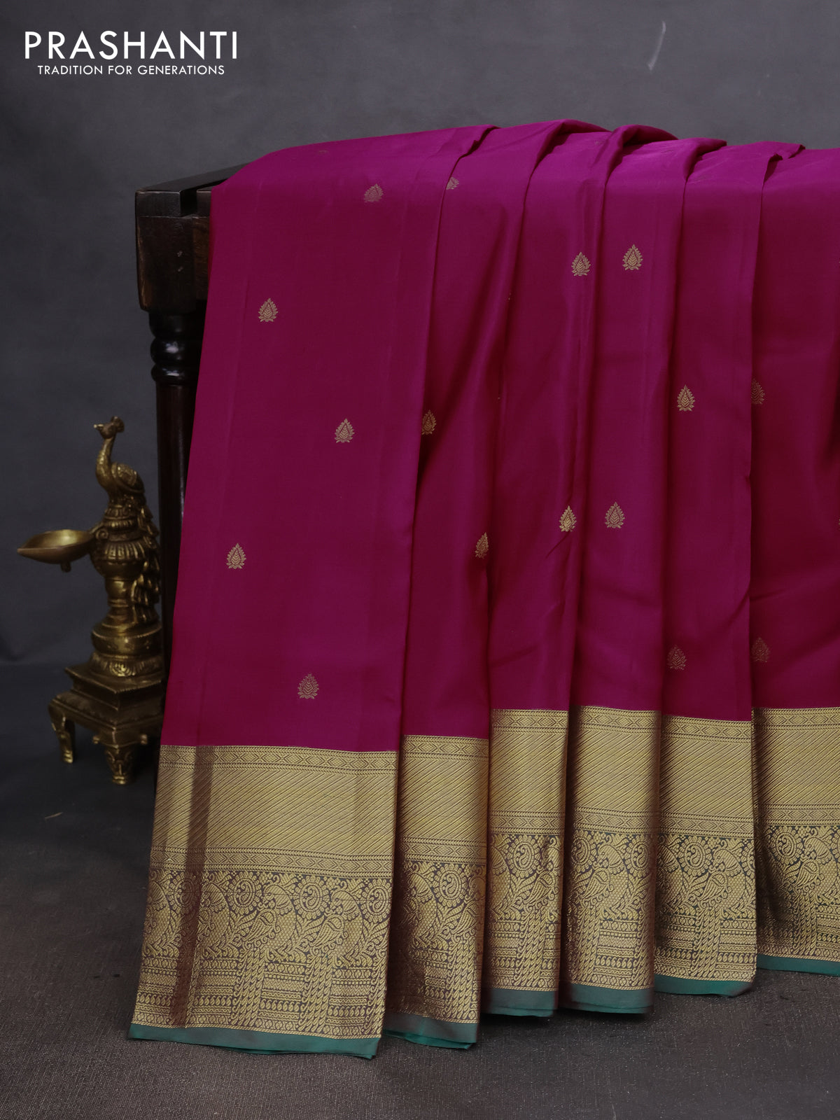 Pure kanchipuram silk saree magenta pink and green with zari woven buttas and rich zari woven border