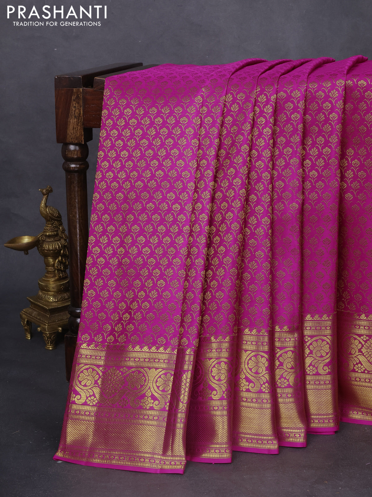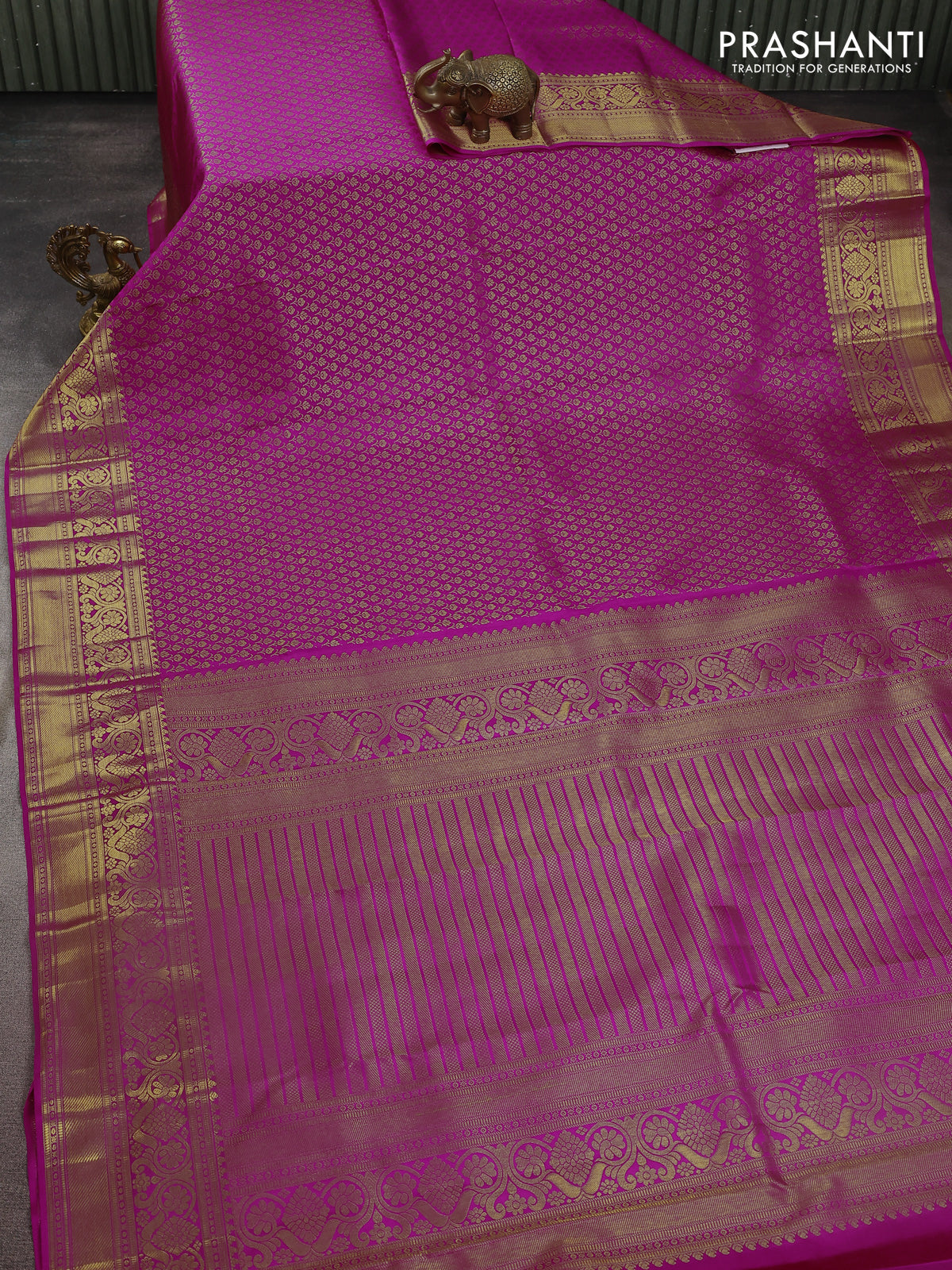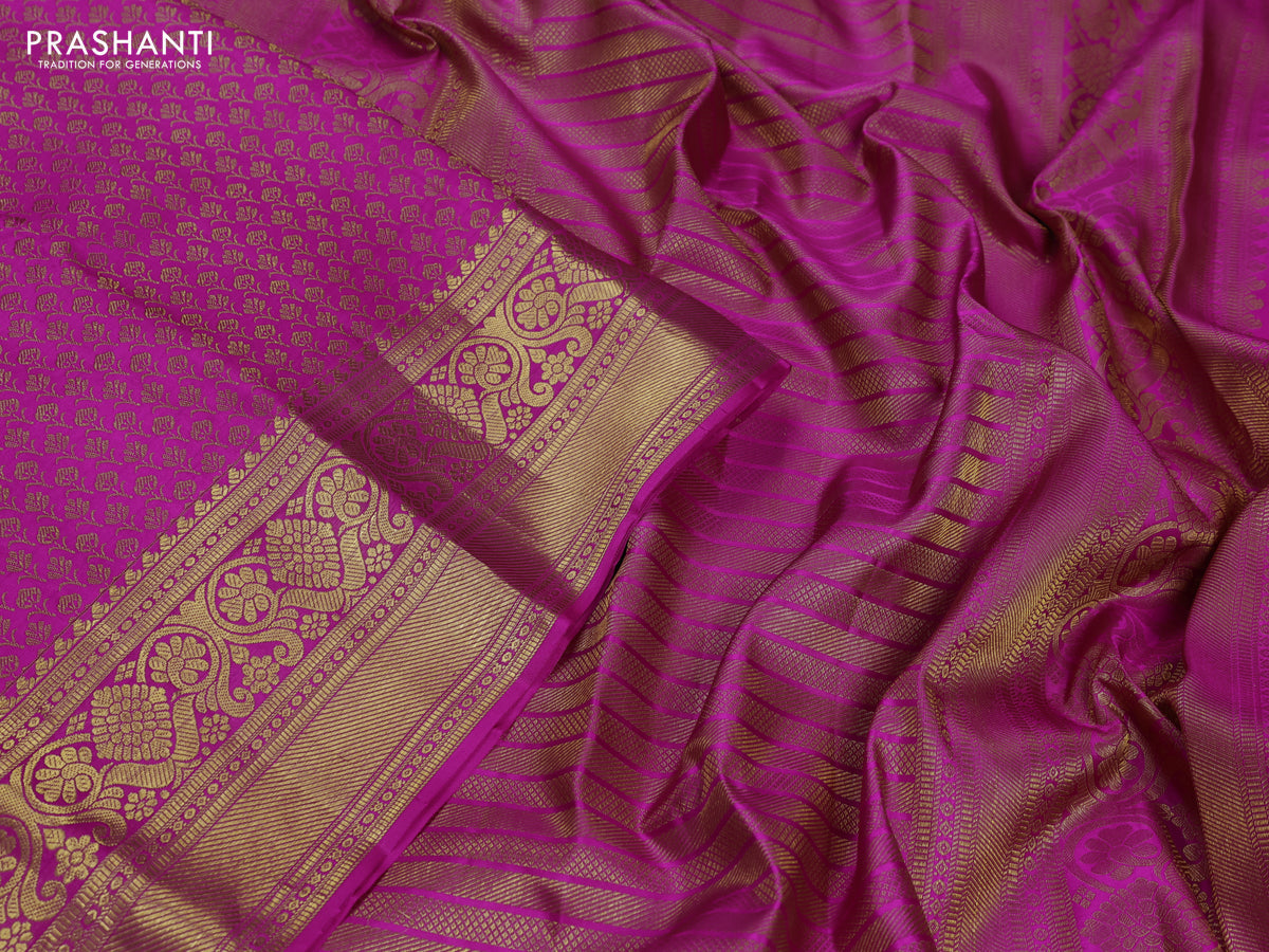 Pure kanchipuram silk saree magenta pink with allover zari woven brocade weaves and zari woven border