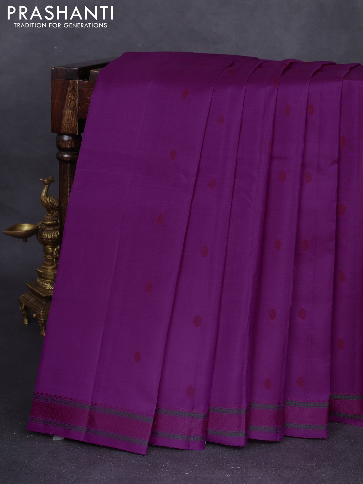 Pure kanchipuram silk saree magenta pink with woven buttas and thread woven border