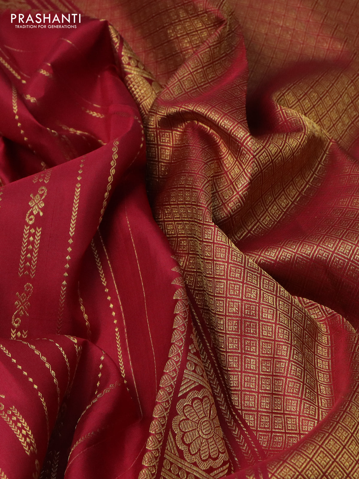 Pure kanchipuram silk saree maroon with allover zari weaves and zari woven border