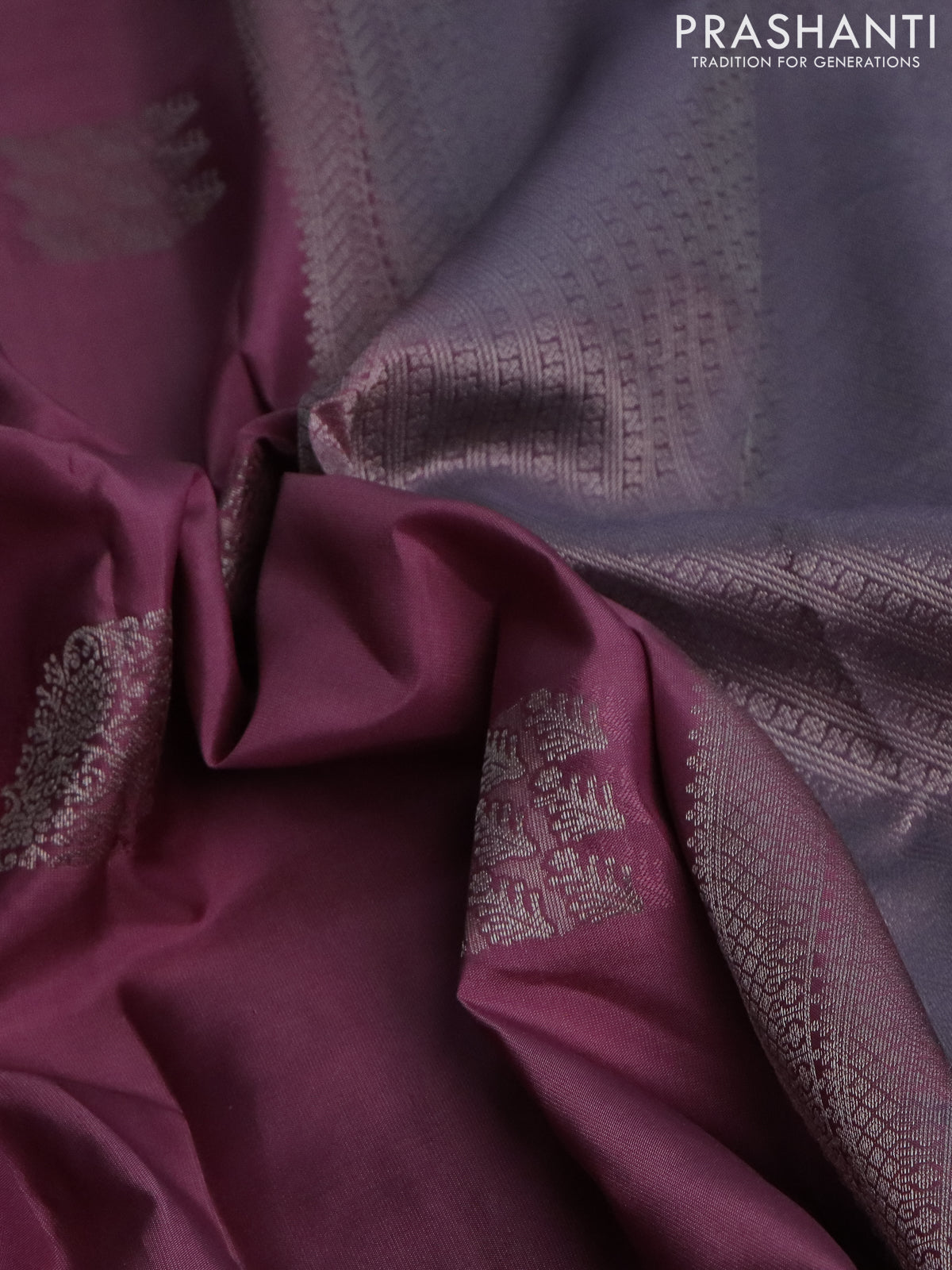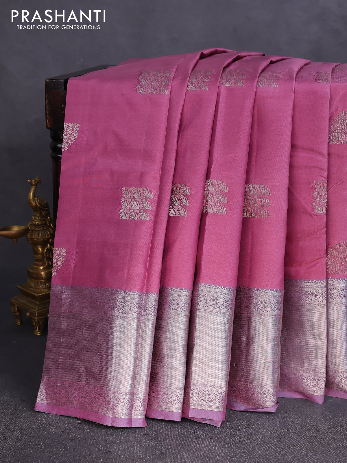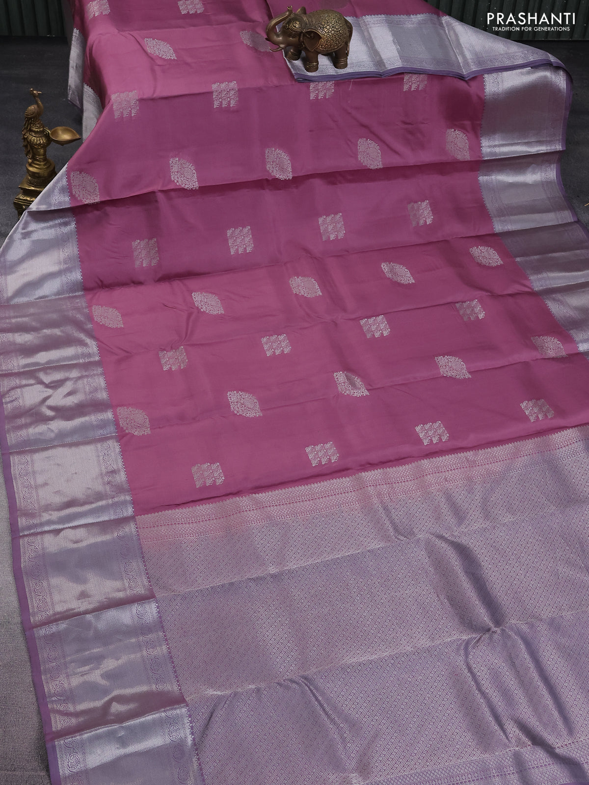 Pure kanchipuram silk saree mauve pink and pastel purple with self emboss & silver zari woven buttas and long silver zari woven border
