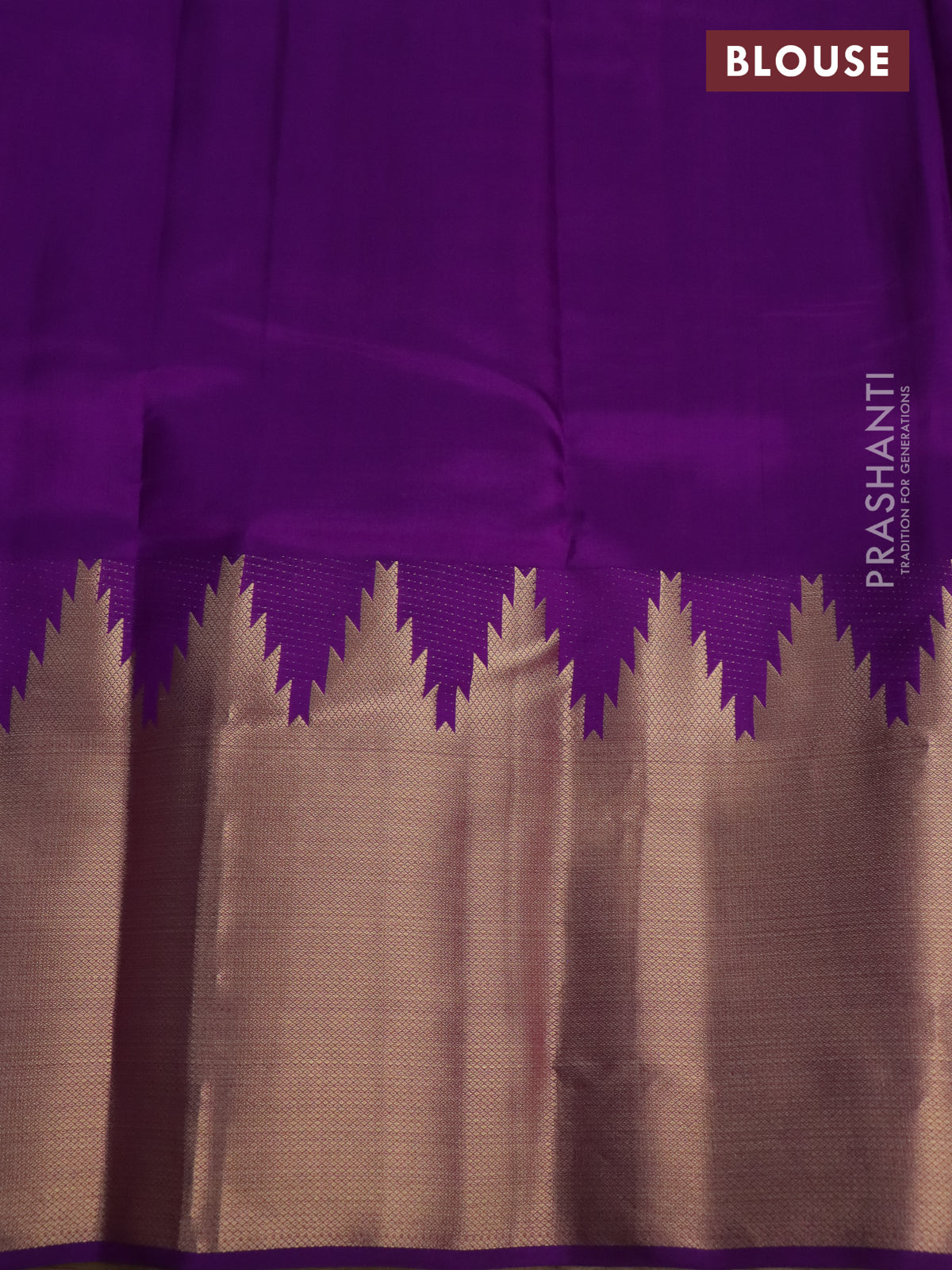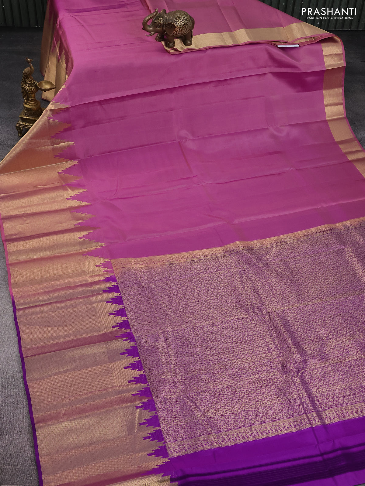 Pure kanchipuram silk saree mauve pink and violet with plain body and long temple design zari woven border