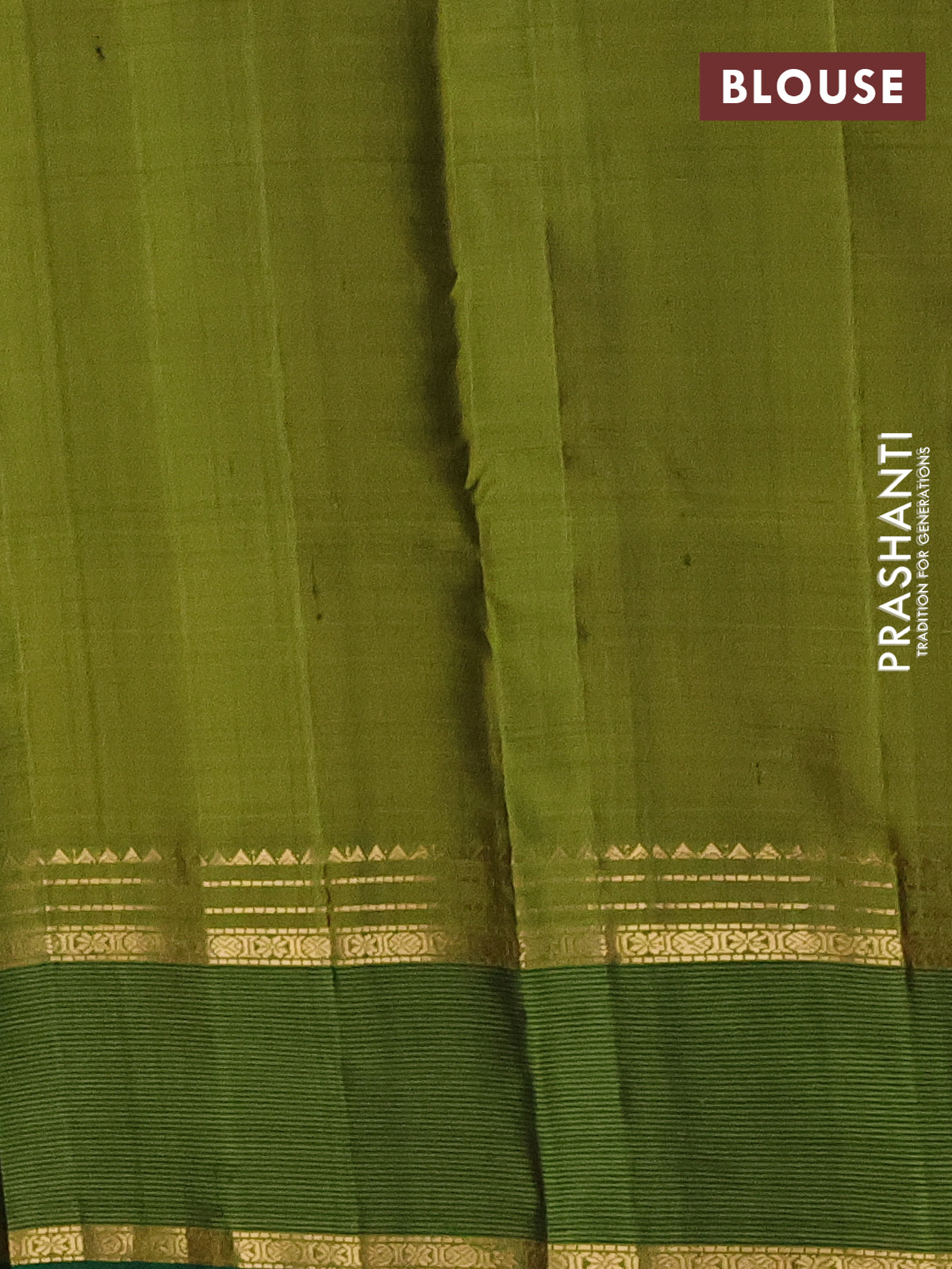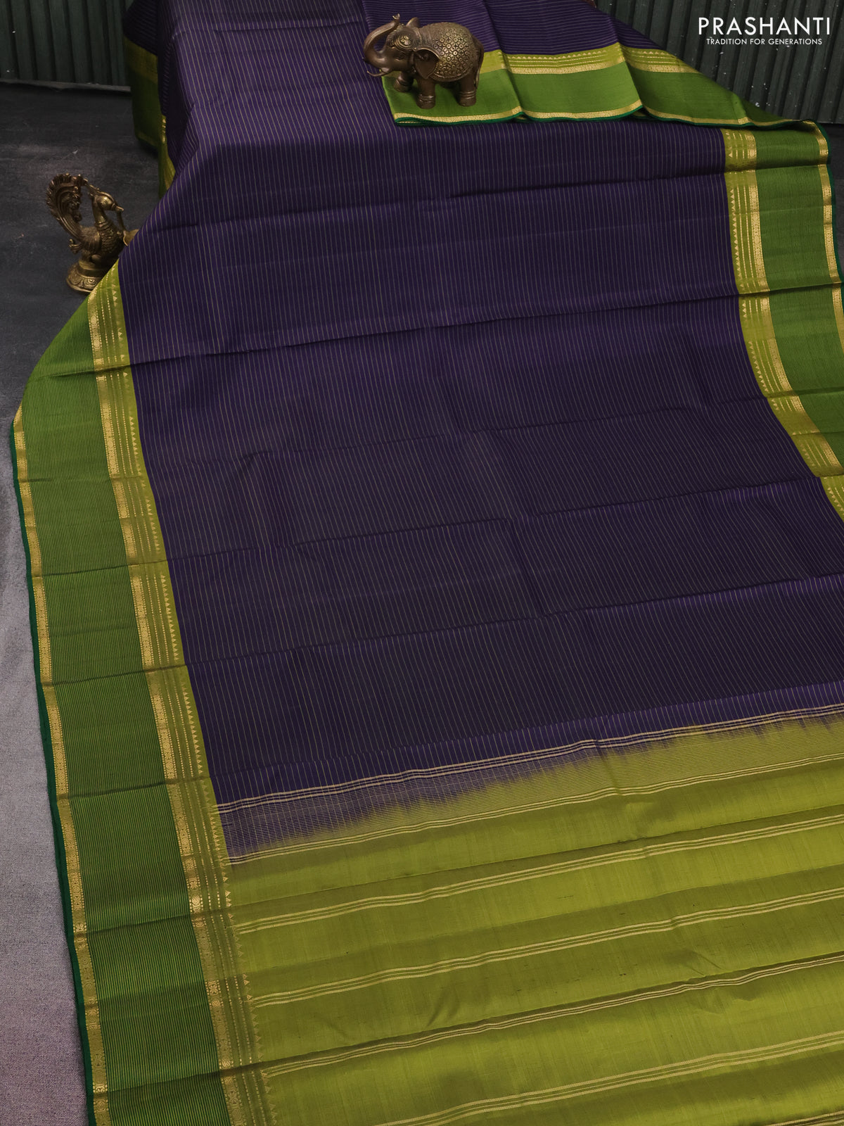 Pure kanchipuram silk saree navy blue and green with stripes pattern and rettapet zari woven border