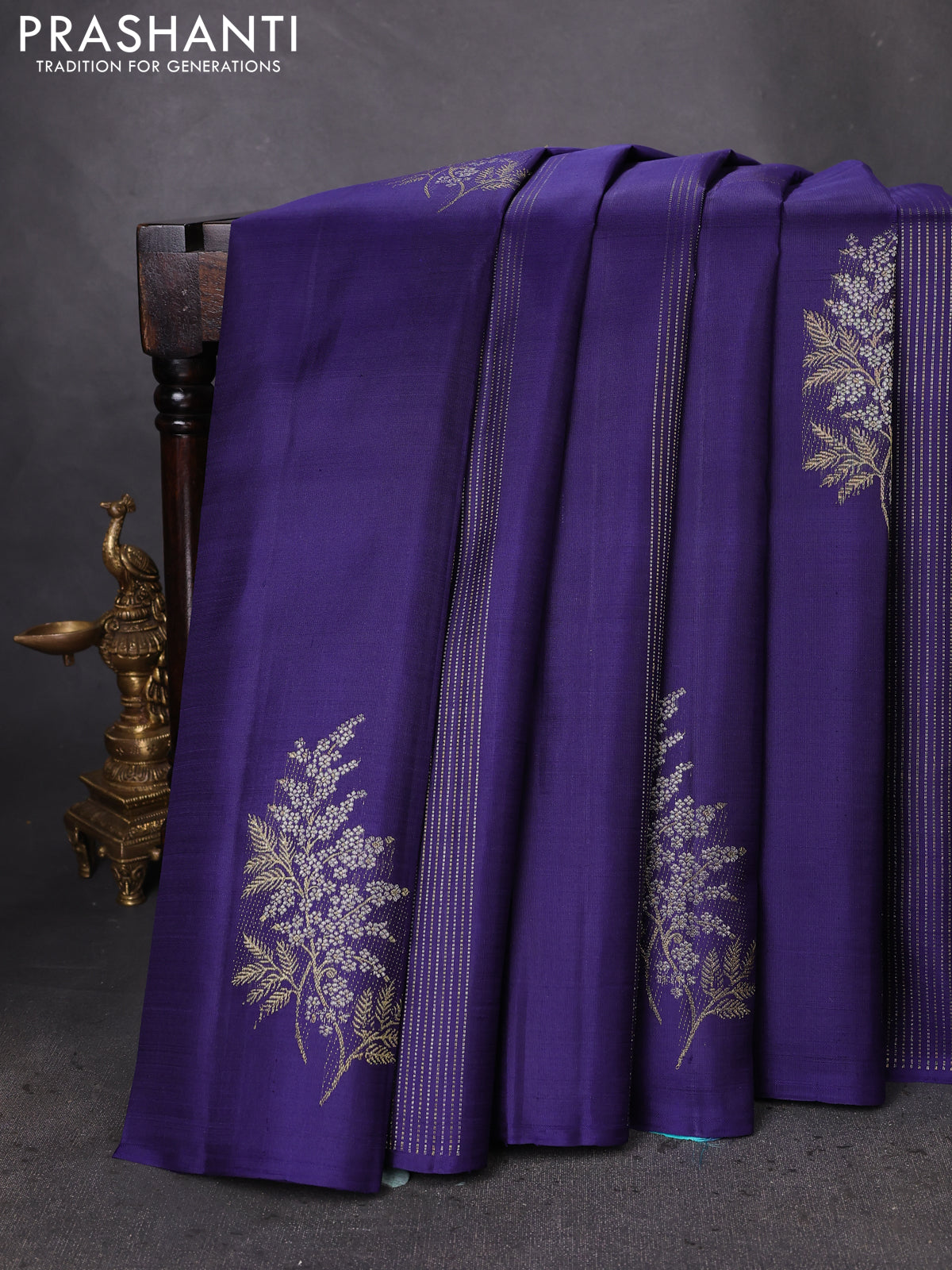 Pure kanchipuram silk saree navy blue and teal blue with allover silver & gold zari weaves in borderless style