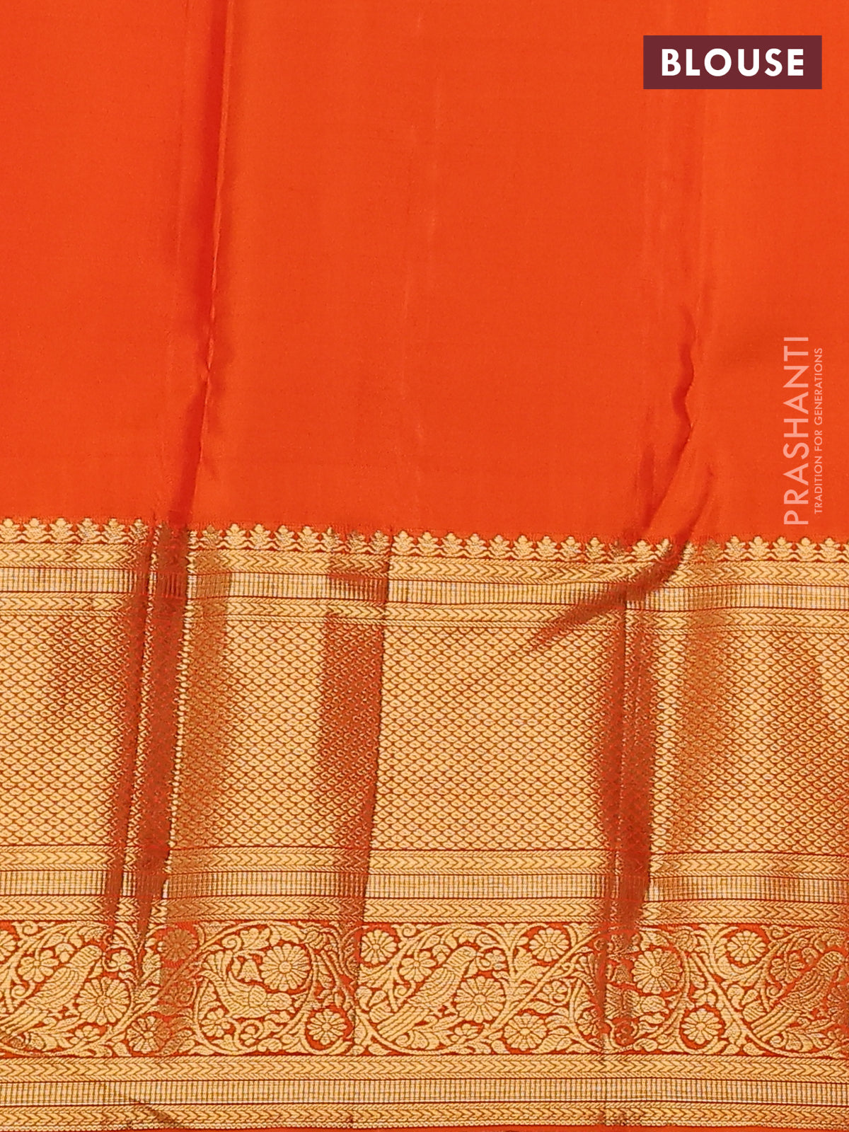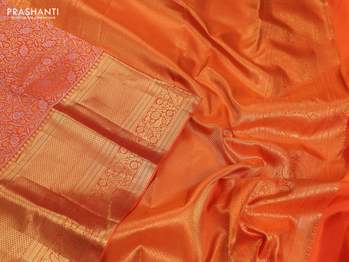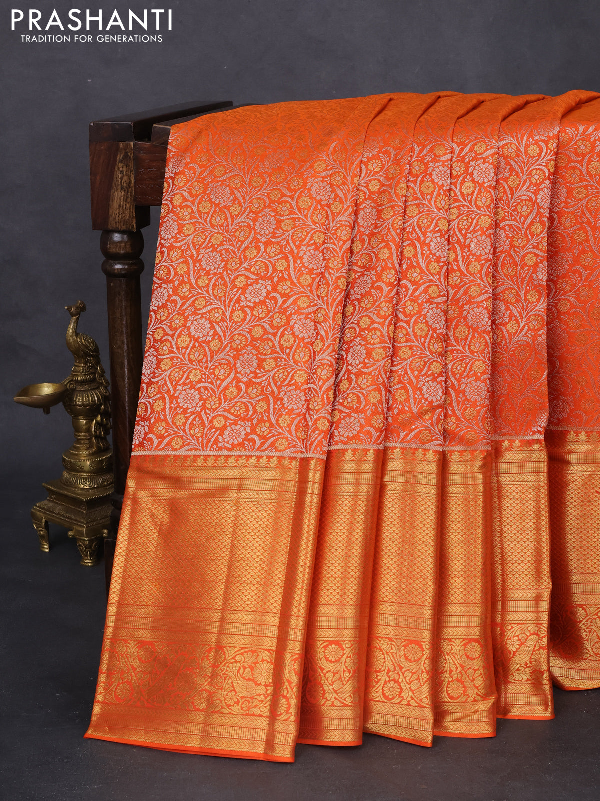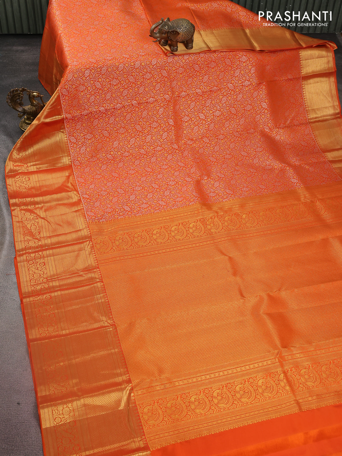 Pure kanchipuram silk saree orange with allover zari woven brocade weaves and long zari woven border