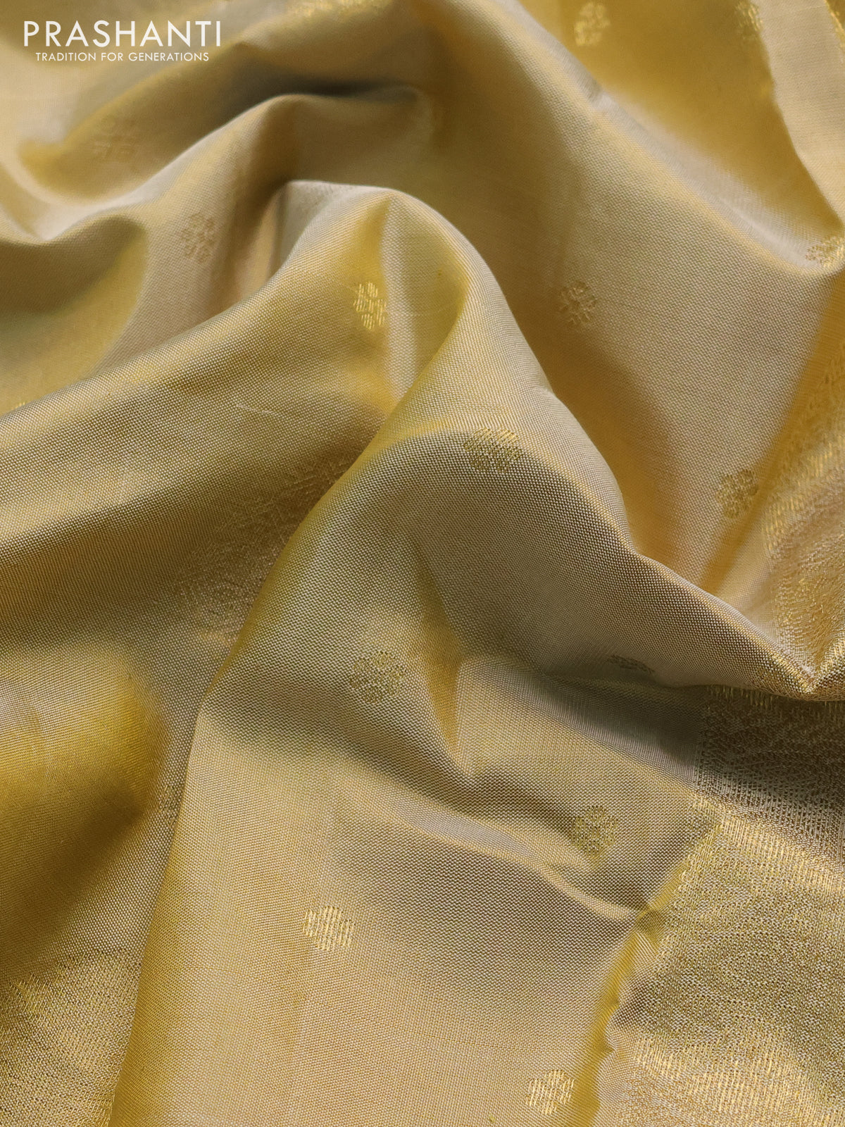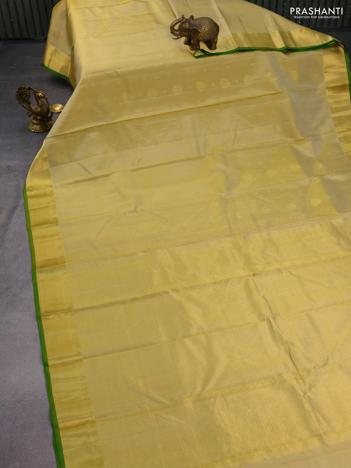 Pure kanchipuram silk saree pale yellow and green with zari woven buttas and zari woven border