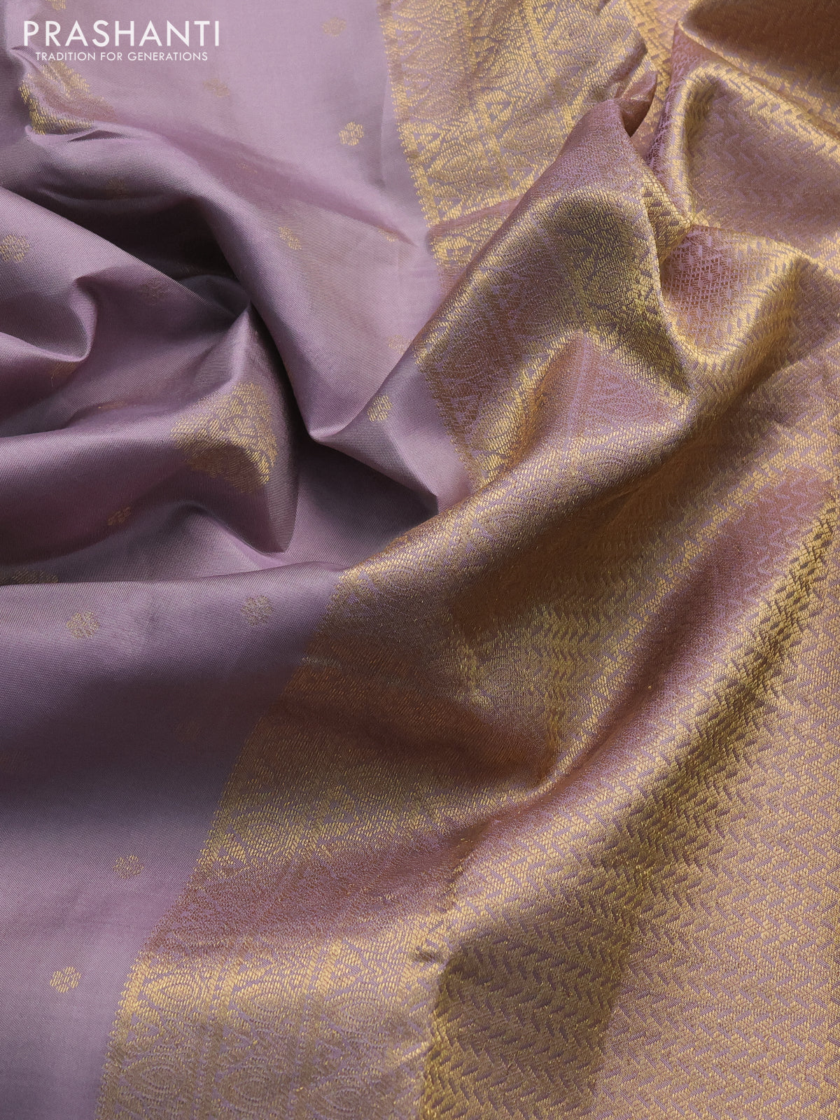 Pure kanchipuram silk saree pastel grey and green with zari woven buttas and zari woven border