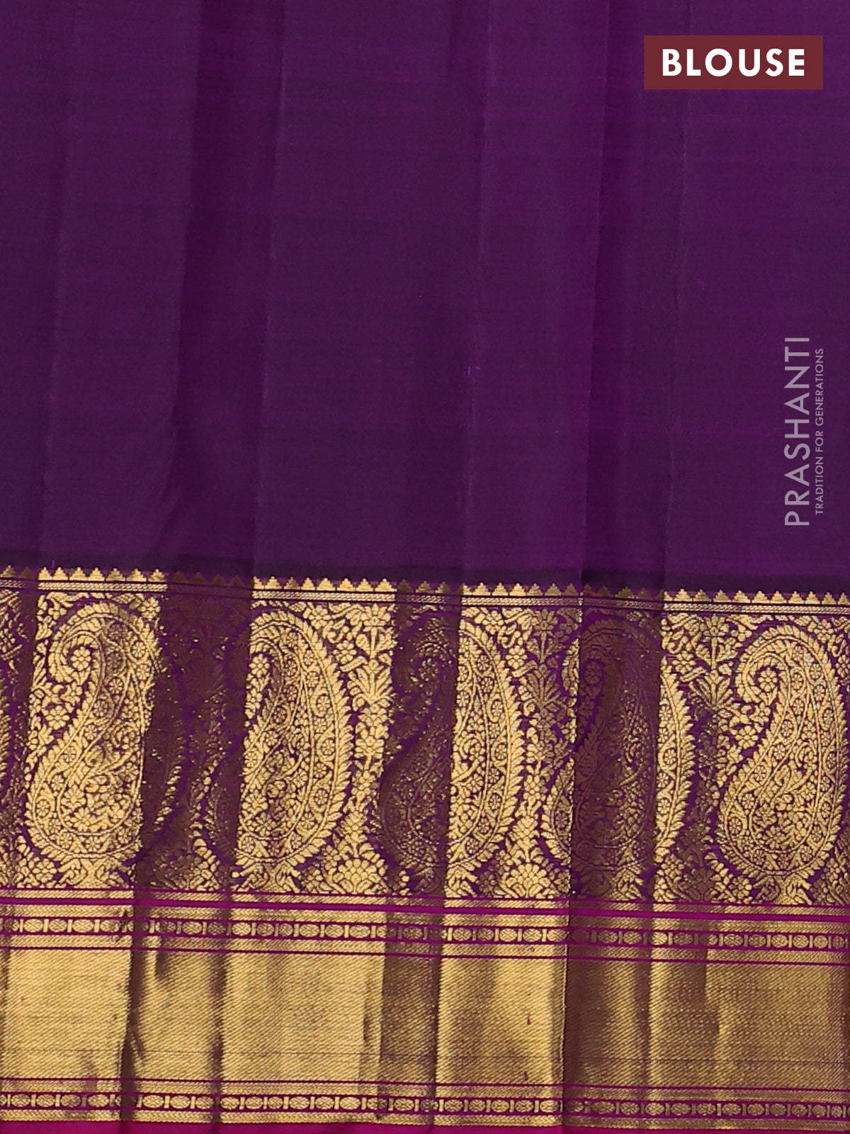 Pure kanchipuram silk saree pastel grey and purple with allover self emboss & zari buttas and long paisley zari woven korvai border