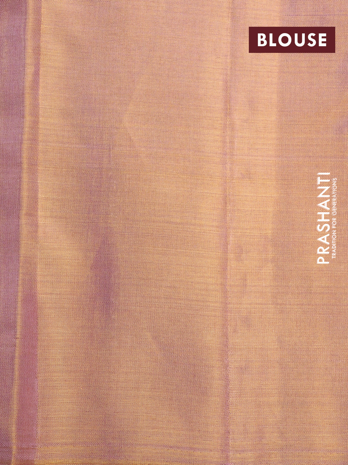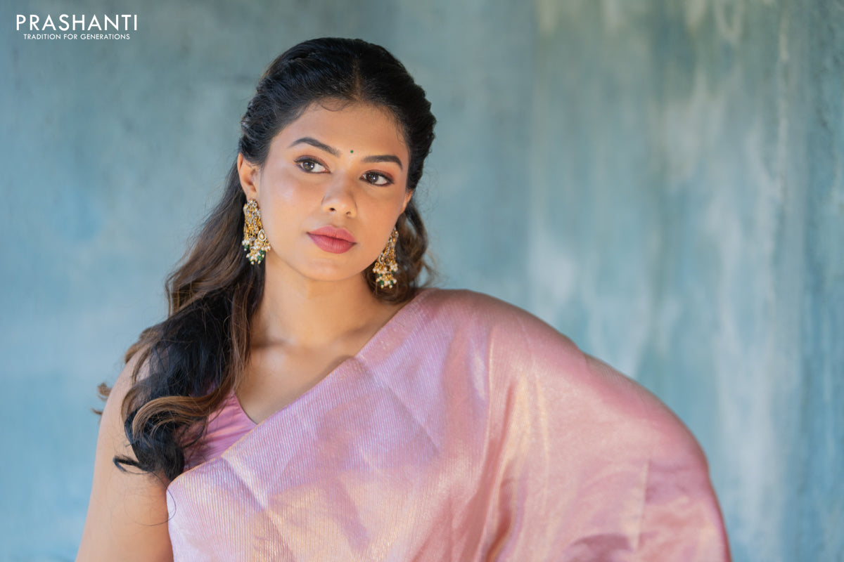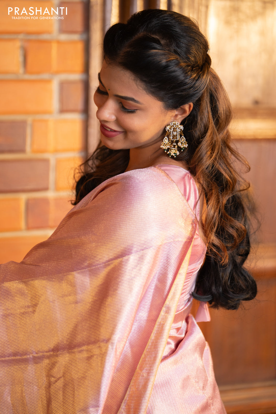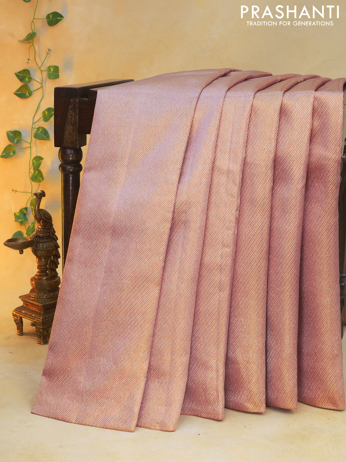 Pure kanchipuram silk saree pastel pink with allover silver zari woven brocade weaves in borderless style