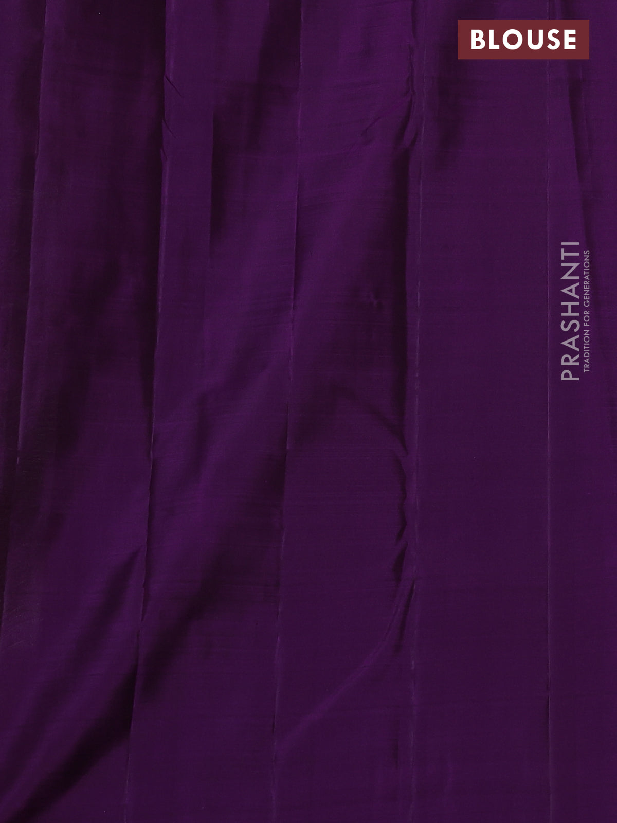 Pure kanchipuram silk saree pastel shade and purple with allover silver zari zig zag weaves in borderless style