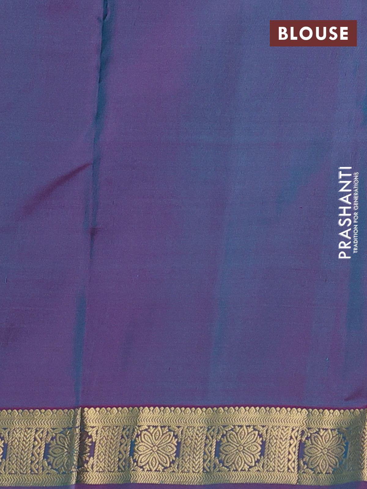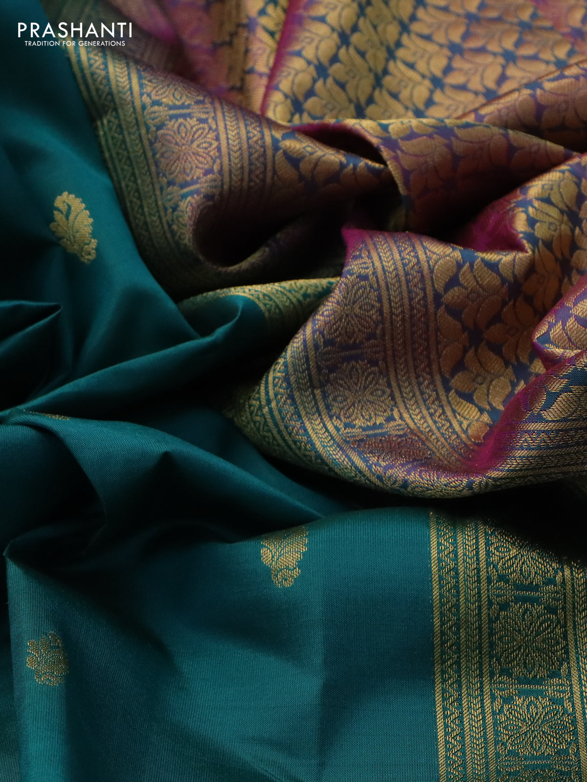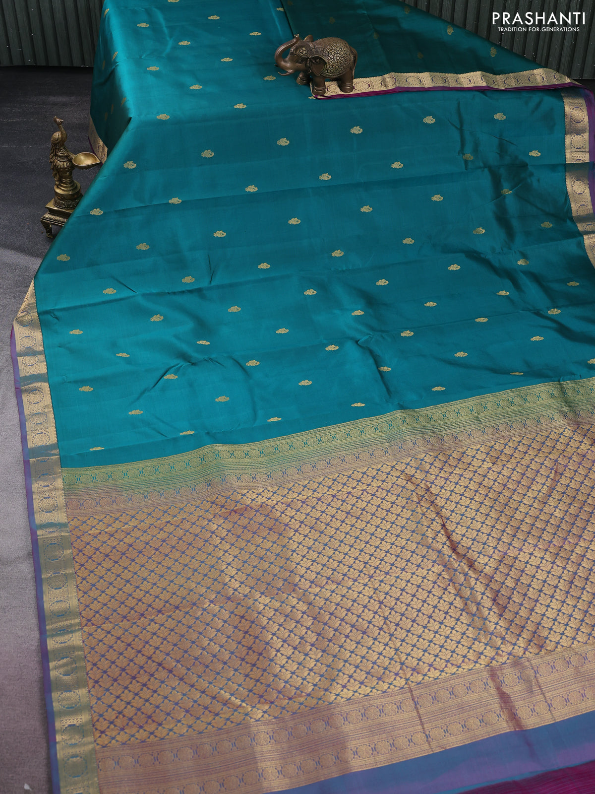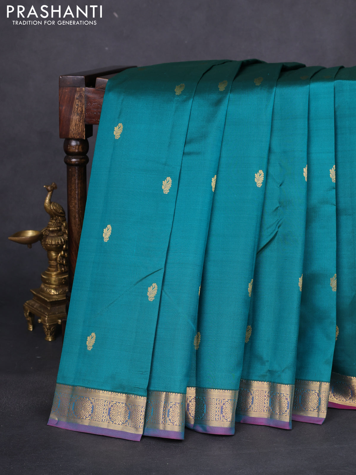 Pure kanchipuram silk saree peacock green and purple with zari woven buttas and zari woven border