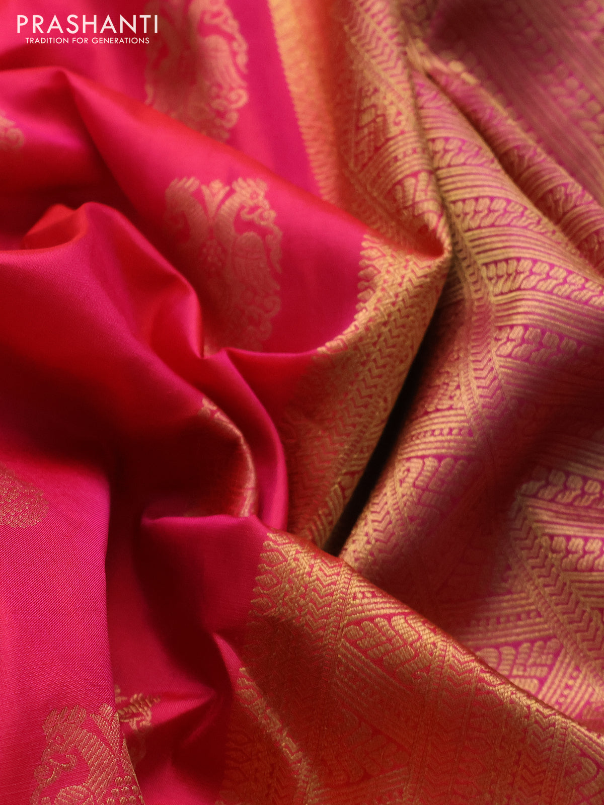 Pure kanchipuram silk saree pink and magenta pink with annam zari woven buttas and zari woven border