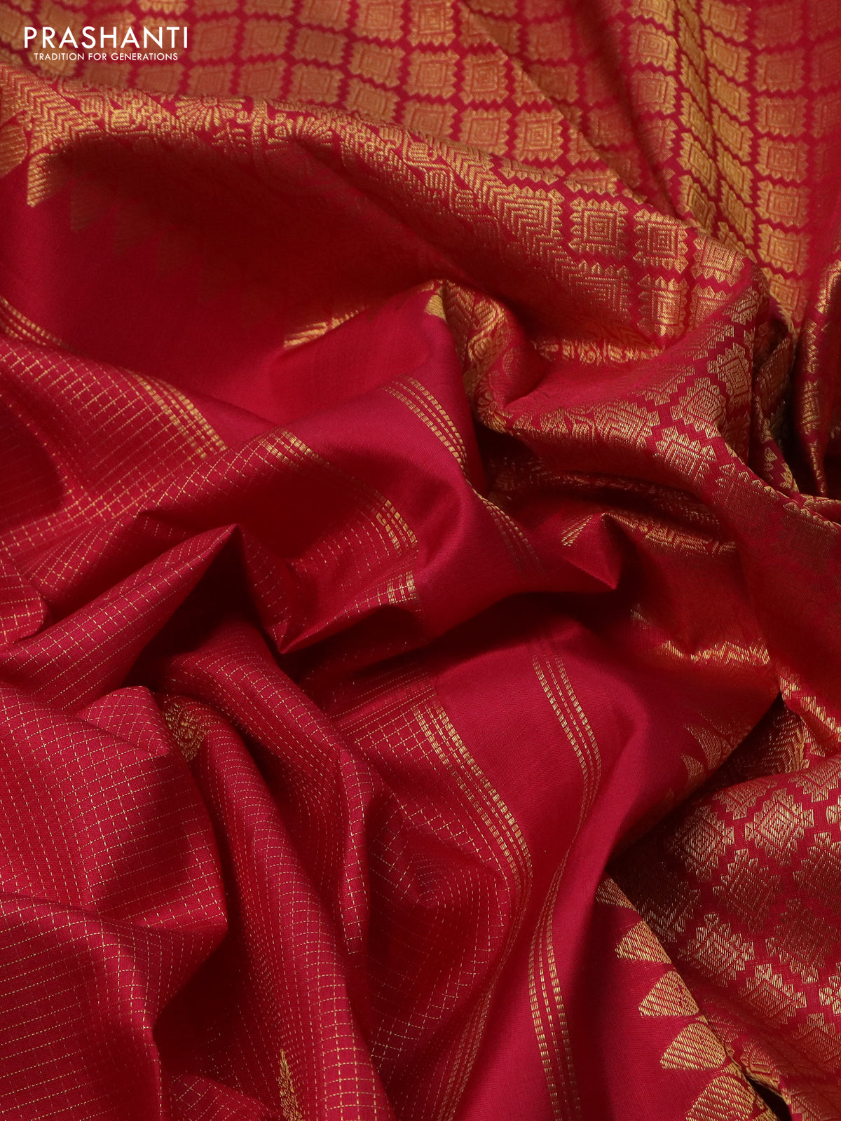 Pure kanchipuram silk saree pink with allover small zari checks & buttas and annam zari woven border