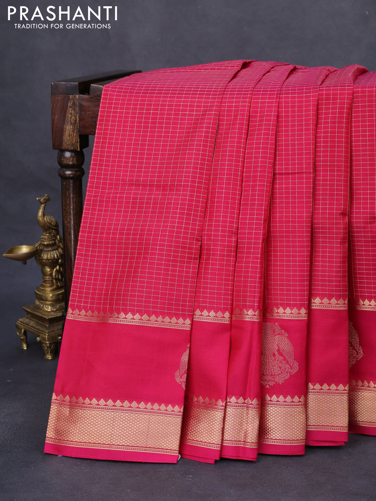 Pure kanchipuram silk saree pink with allover zari woven checked pattern and rettapet zari woven butta border