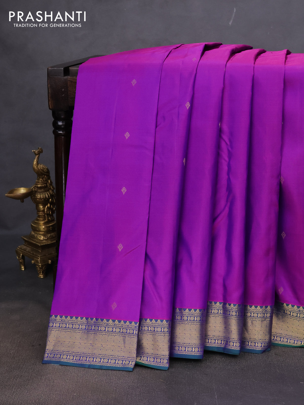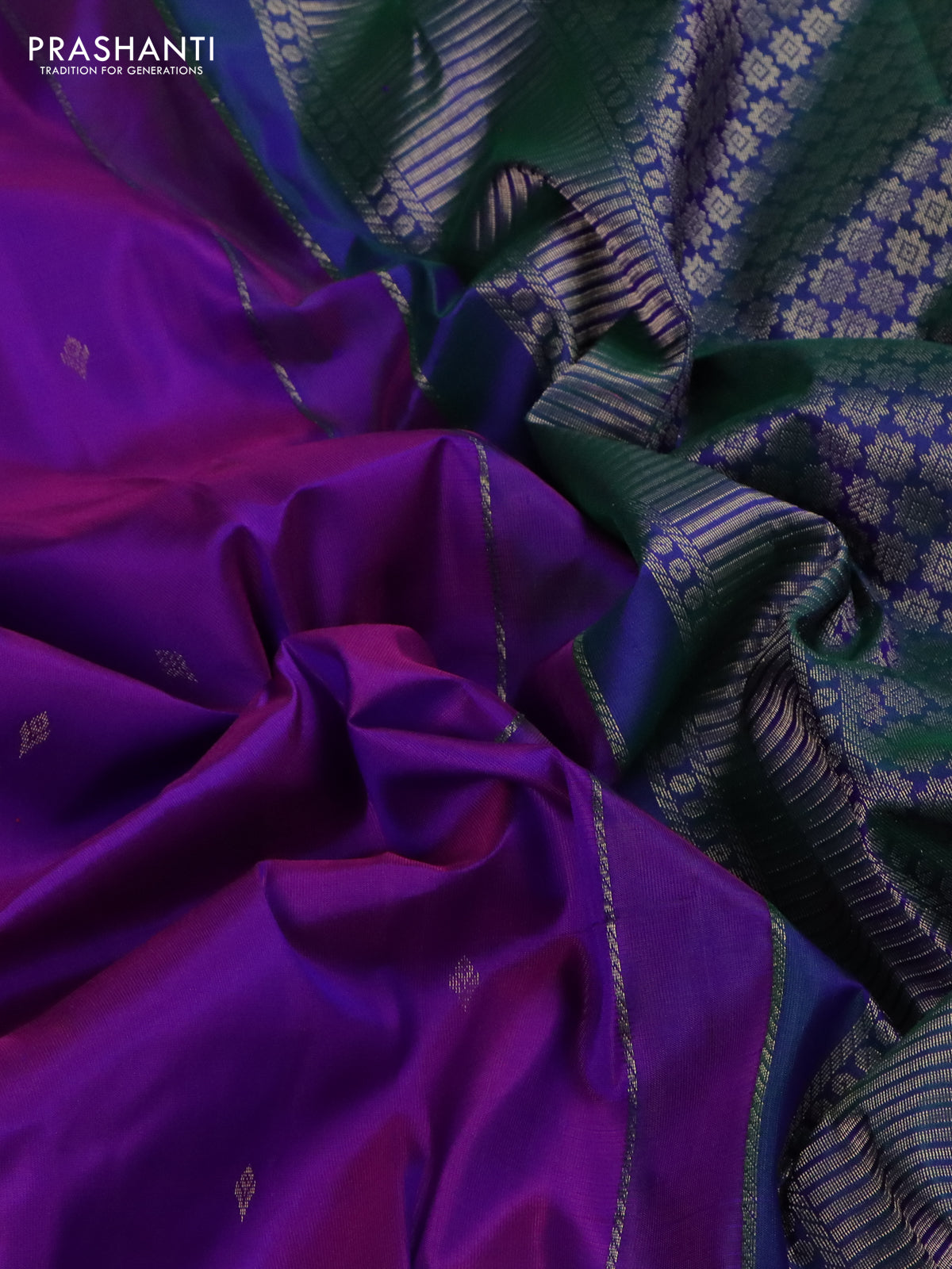 Pure kanchipuram silk saree purple and dual shade of green with zari woven buttas and zari woven border
